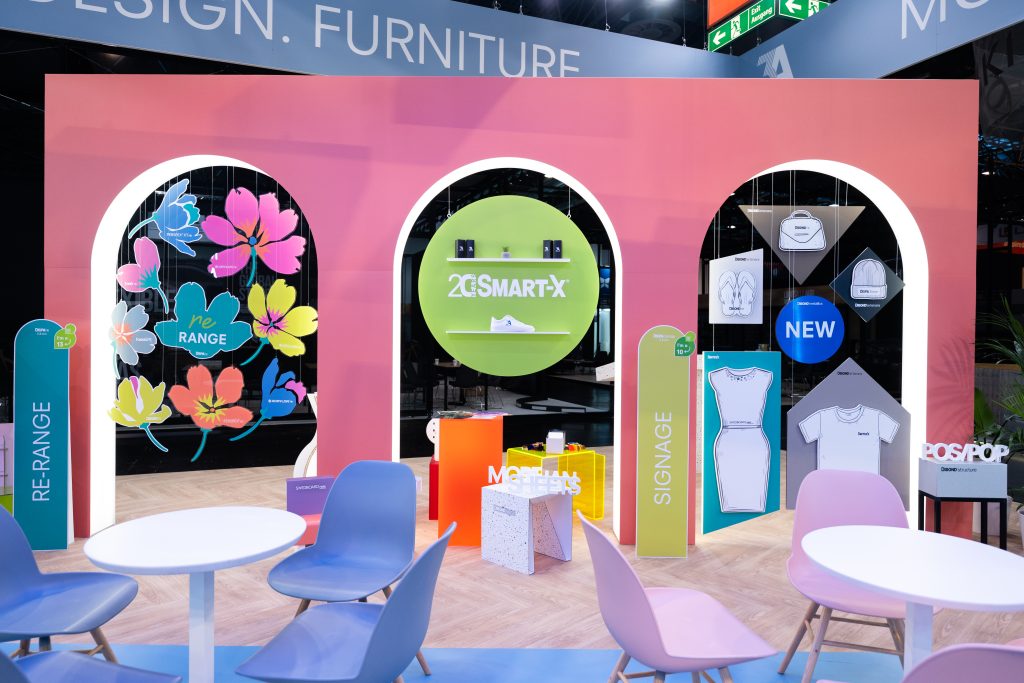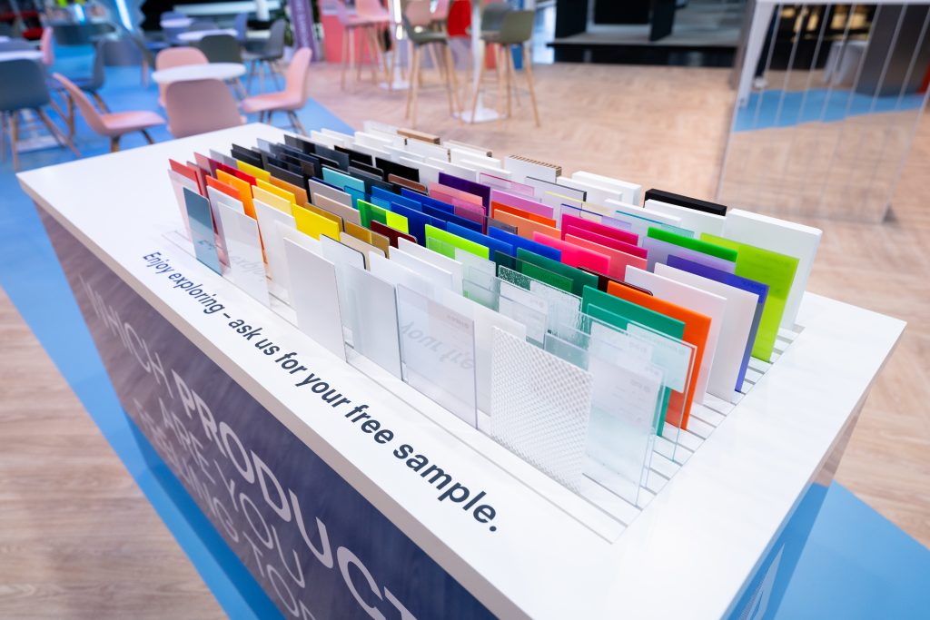 At its stand, the company showed different uses of its materials within retail environments, including applications related to illumination, shop design, and structural elements. Lighting concepts such as illuminated arches, ceiling luminaires, and signage were displayed to demonstrate how materials can be used to shape spatial atmosphere and guide customer movement.