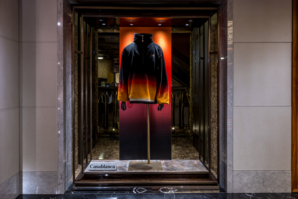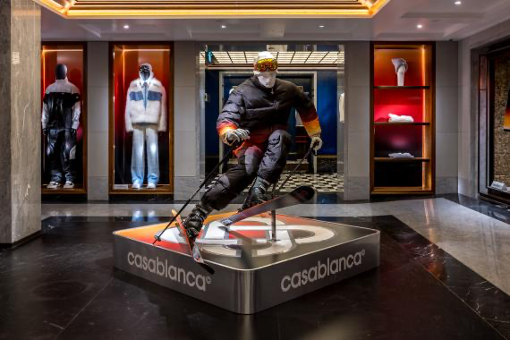 The pop-up highlights Casablanca’s longstanding spirit of escapism and refined luxury, presenting ski apparel and equipment that balance innovation with elegance. Technical development, in-house production, and installation were expertly executed by the B_RD team, ensuring the concept’s seamless translation from vision to reality.