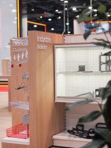 The exhibition stand was organized into four thematic areas highlighting different parts of Geck’s portfolio: