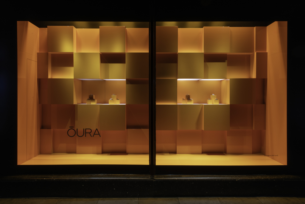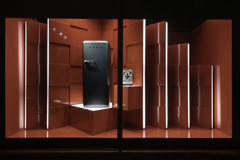 Above, Harrods’ historic architecture frames the contemporary installations with ornate ironwork and soft exterior lighting, creating a dynamic contrast between tradition and modernity. By blending futuristic product storytelling with elegant design discipline, Harroquin Design turns the windows into a cinematic journey through the world of luxury technology. It’s not just a display—it’s an experience, capturing how tech has become a lifestyle, a status symbol, and a design object in its own right.