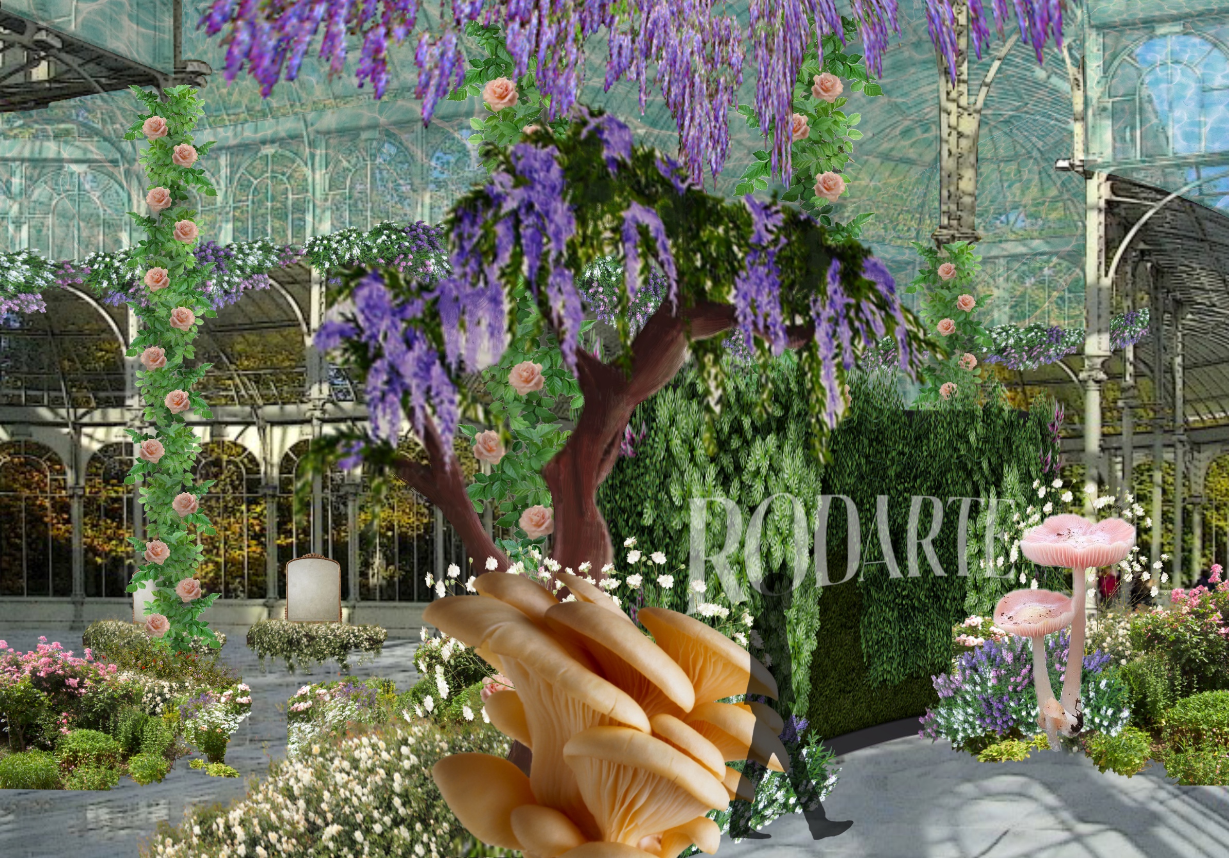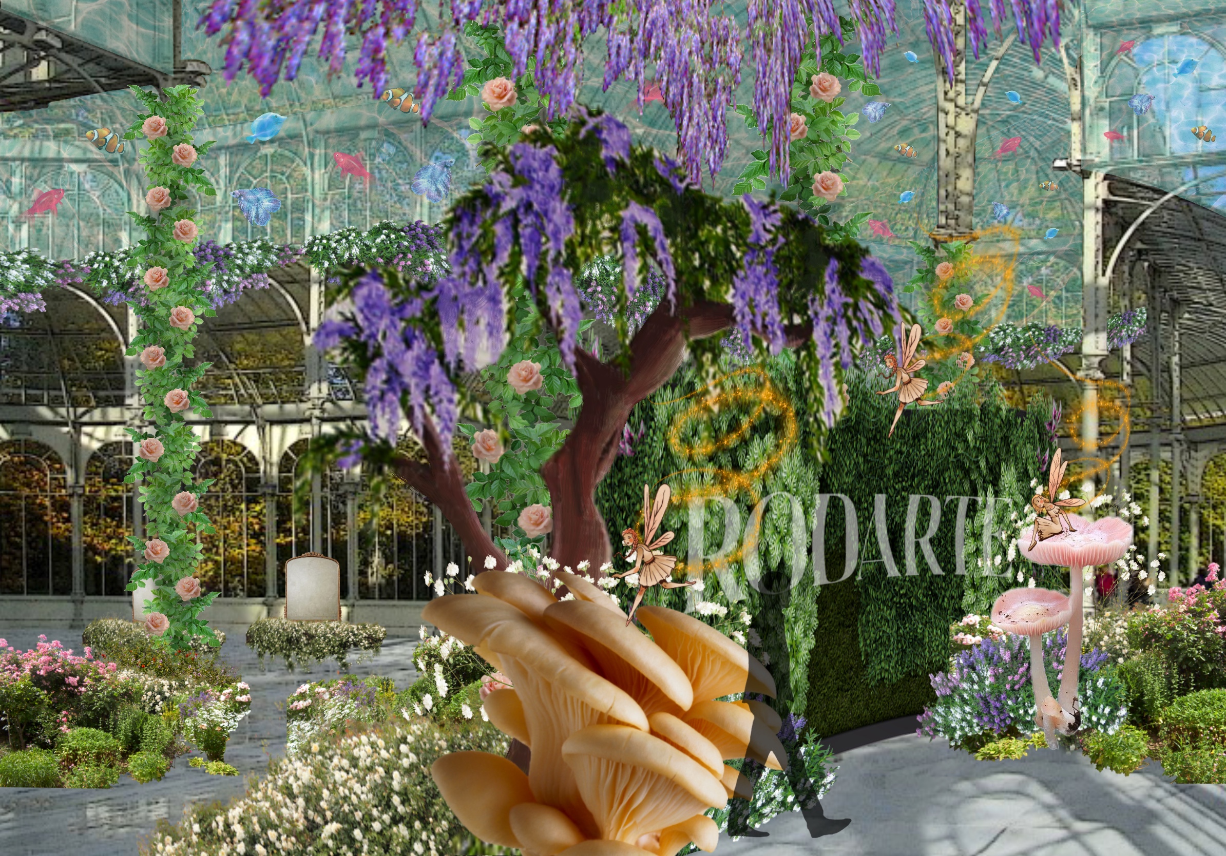 This project presents the Rodarte Forest in a whimsical fashion, with the addition of AR technology where you can use your phone to discover fish in the sky of water using video mapping, fairies, and giant mushrooms.