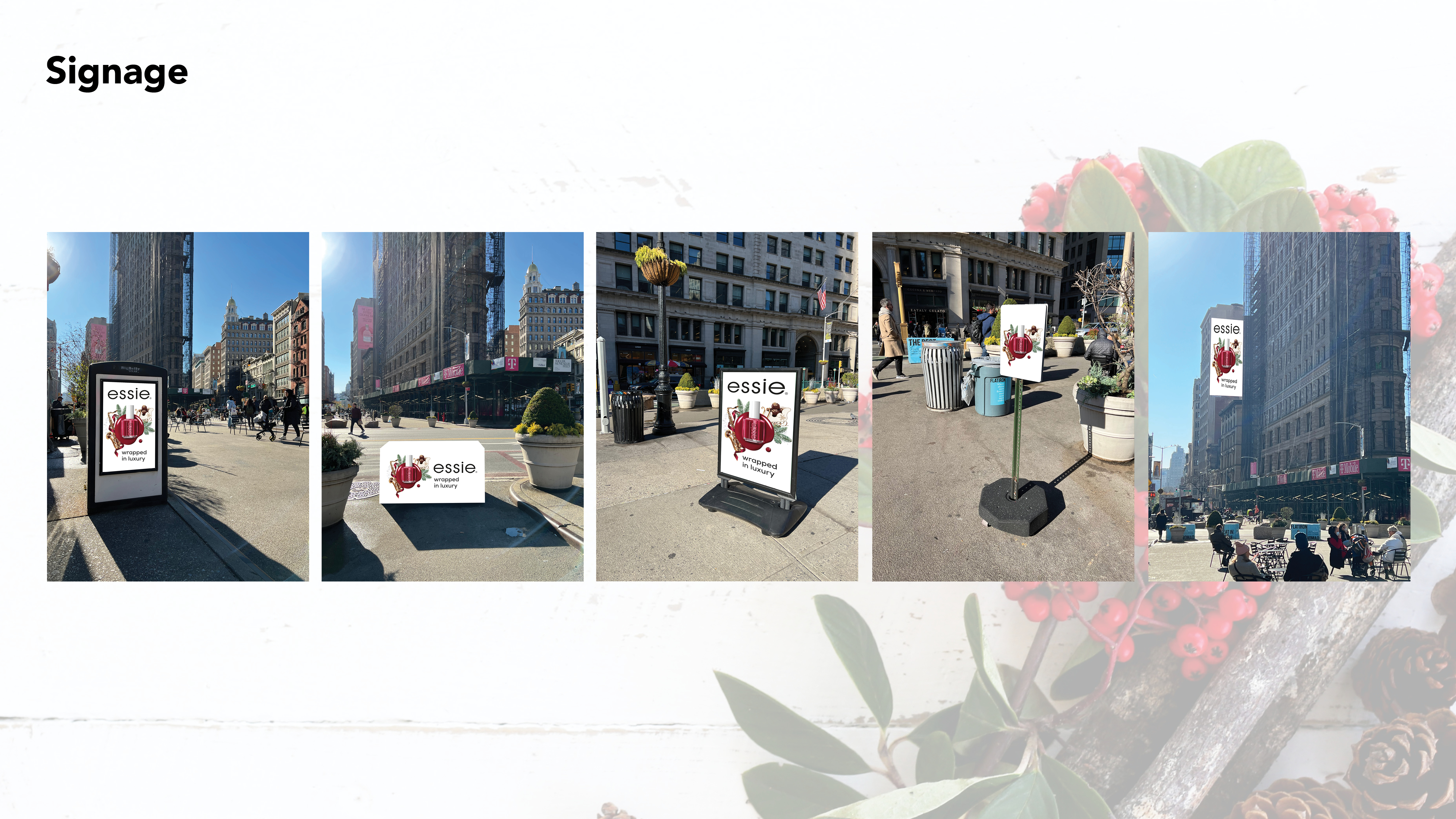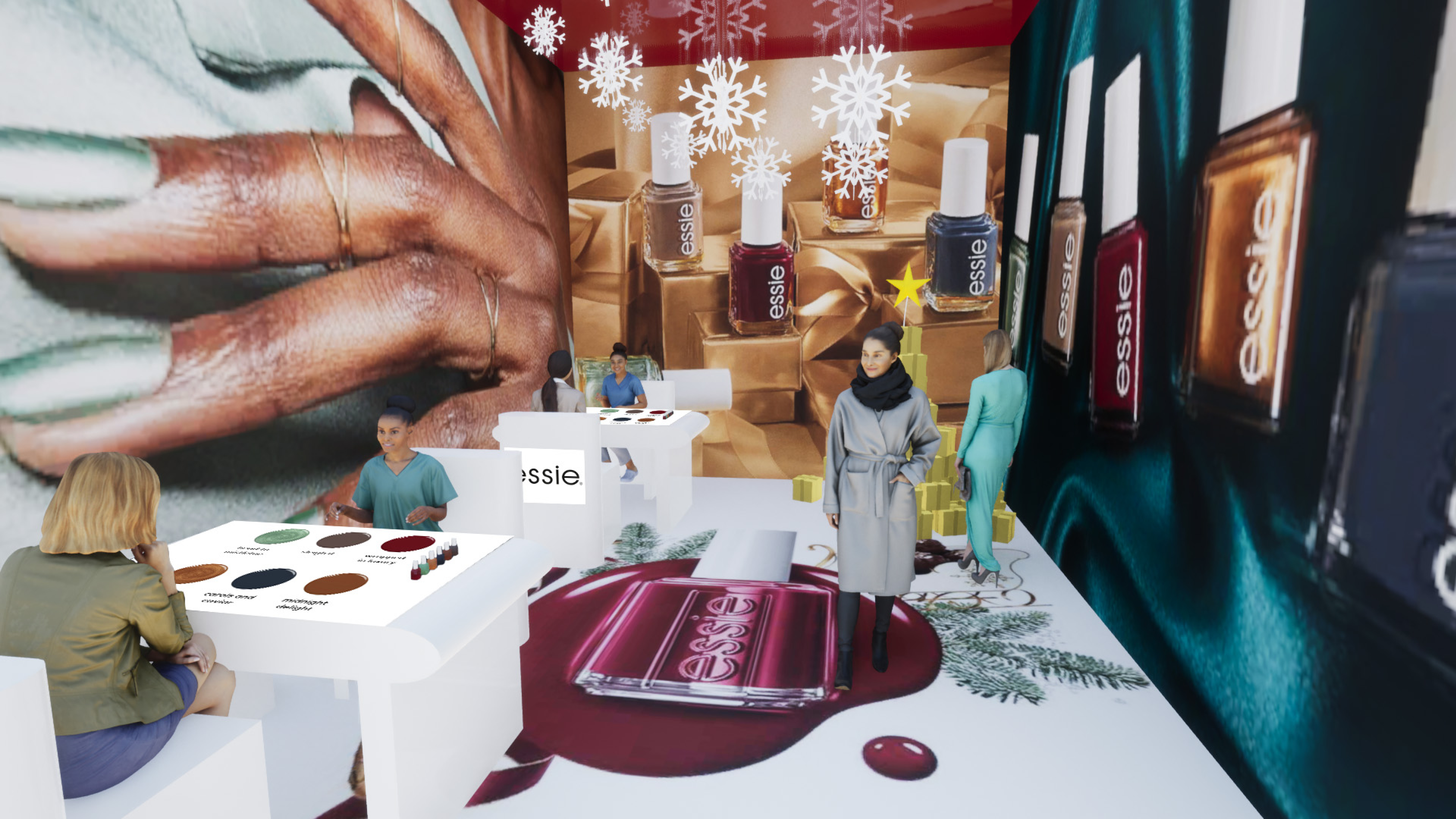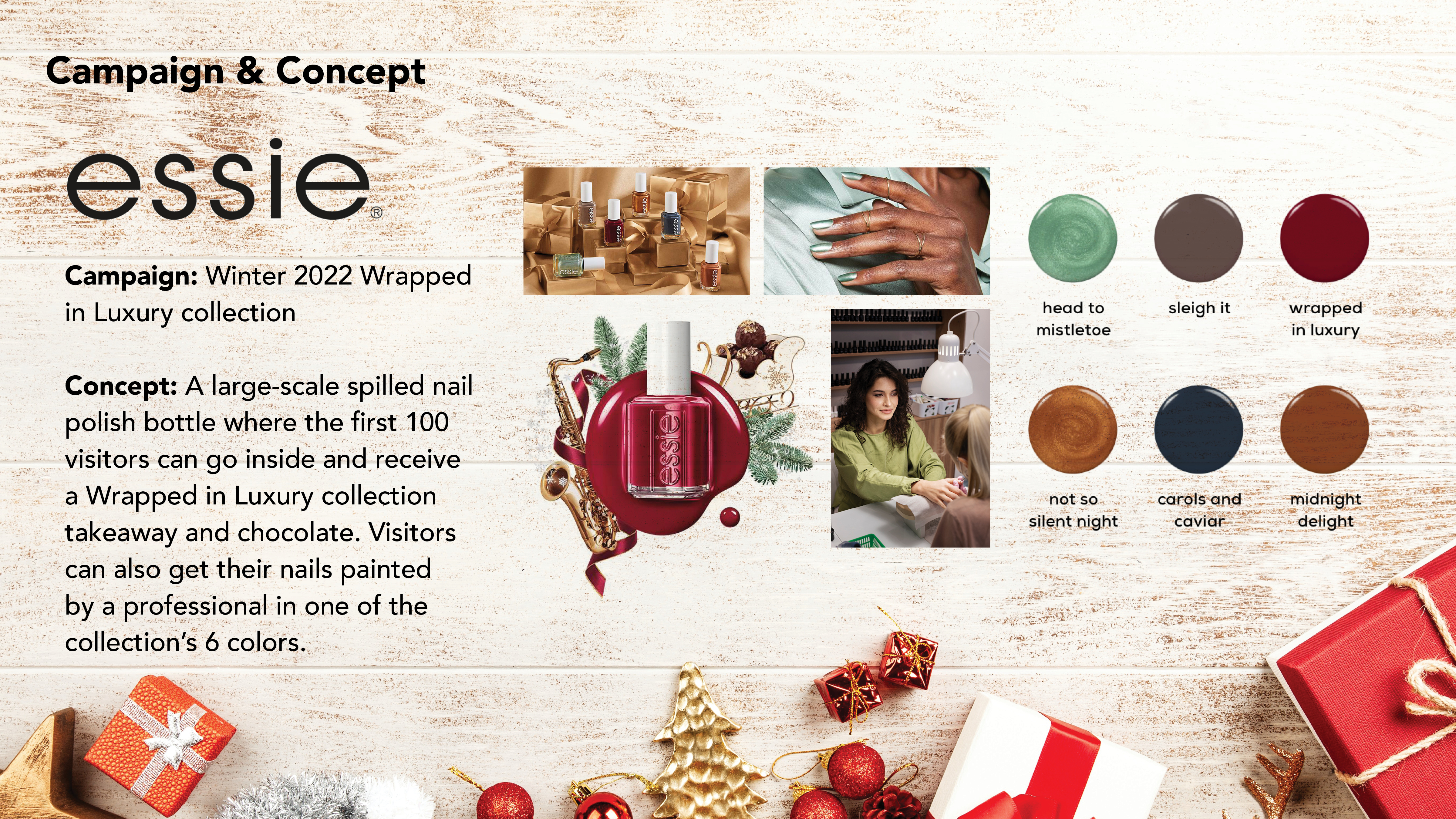 An outdoor consumer-facing brand activation for Essie's winter Wrapped in Luxury 2022 nail polish collection.