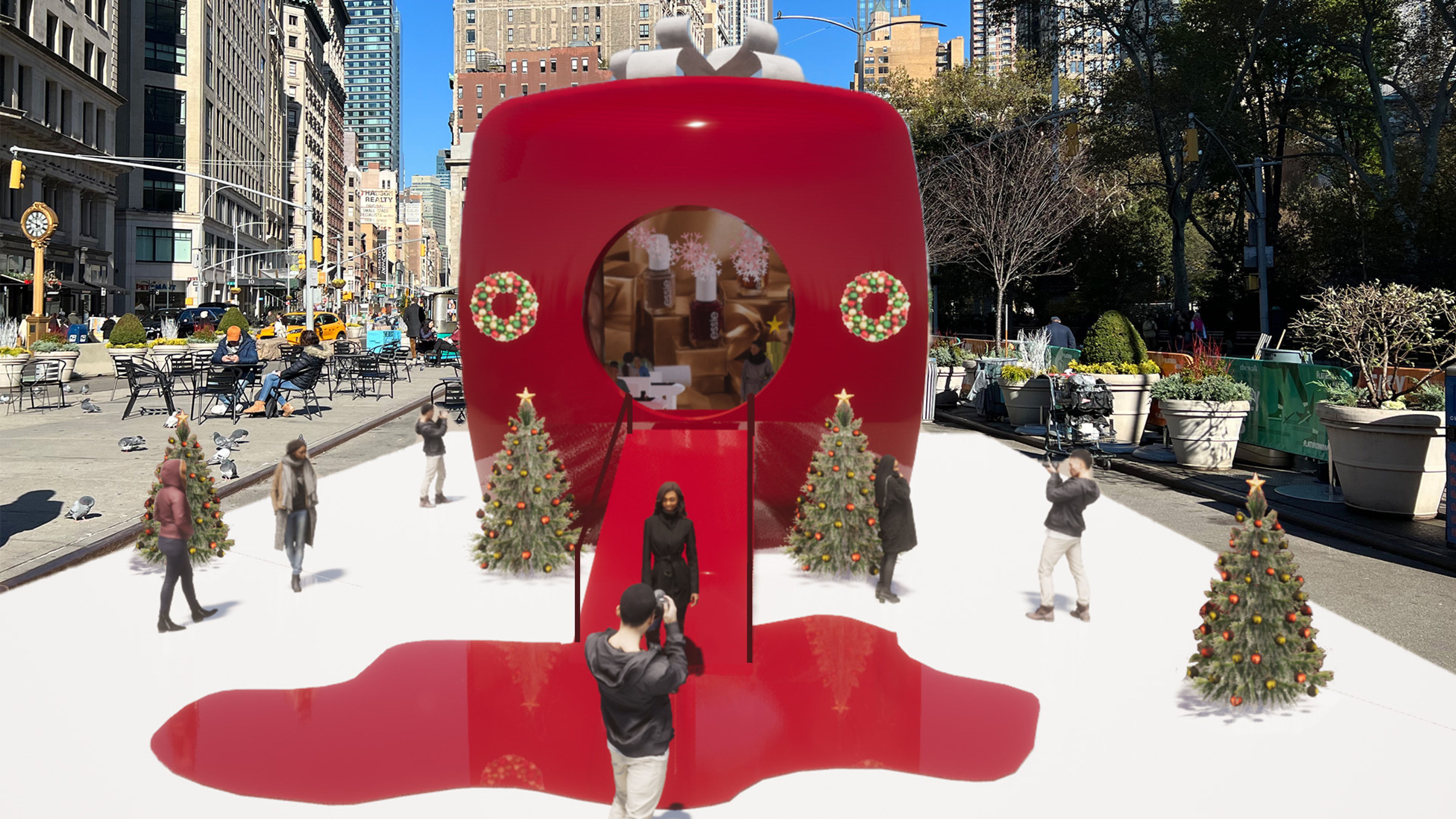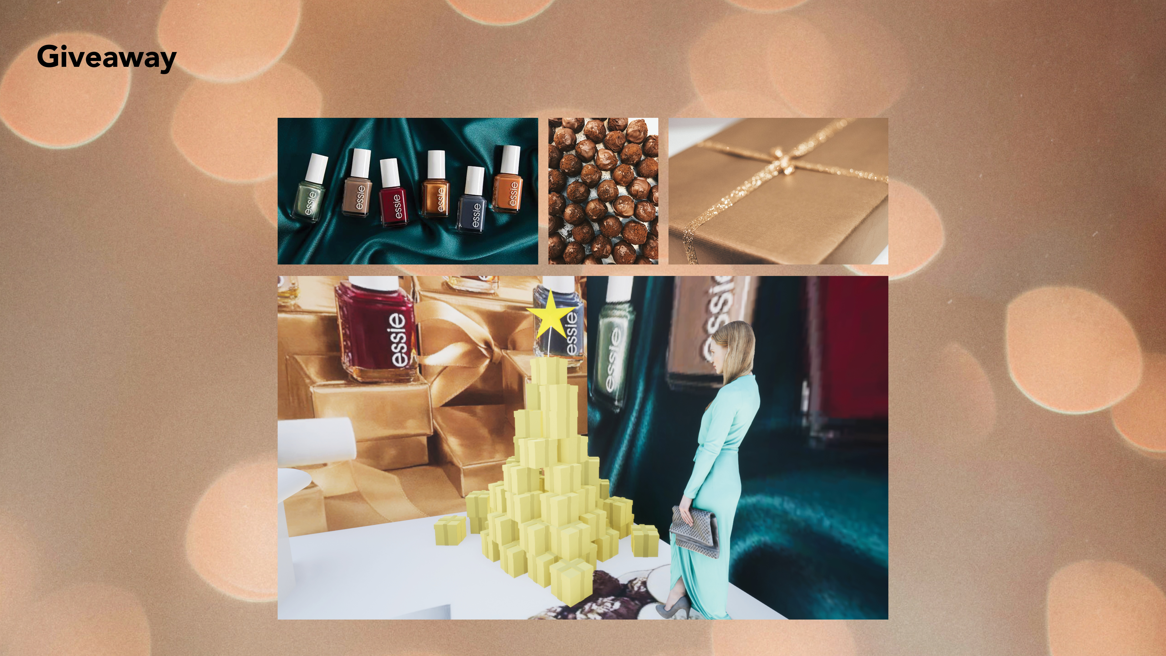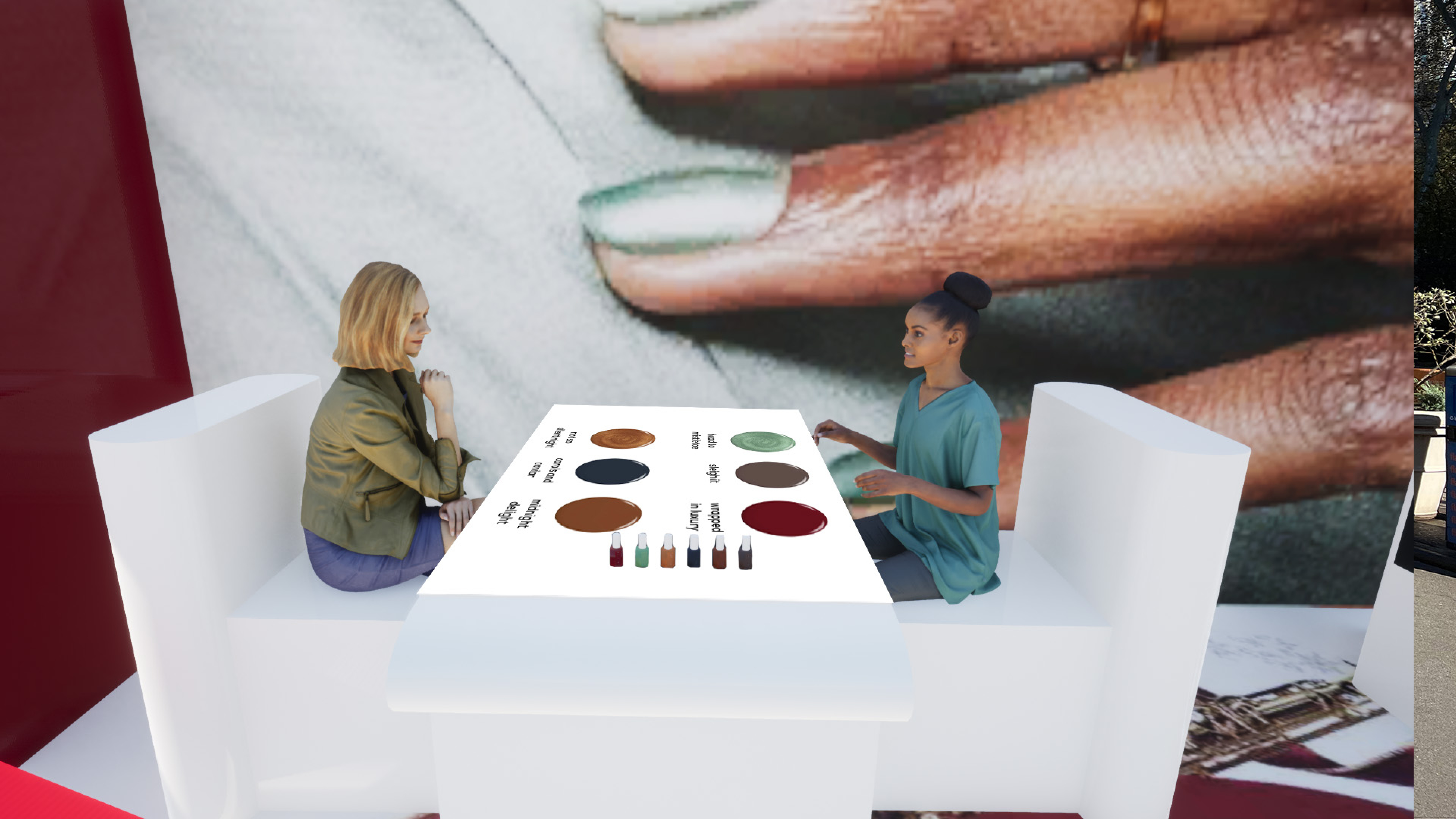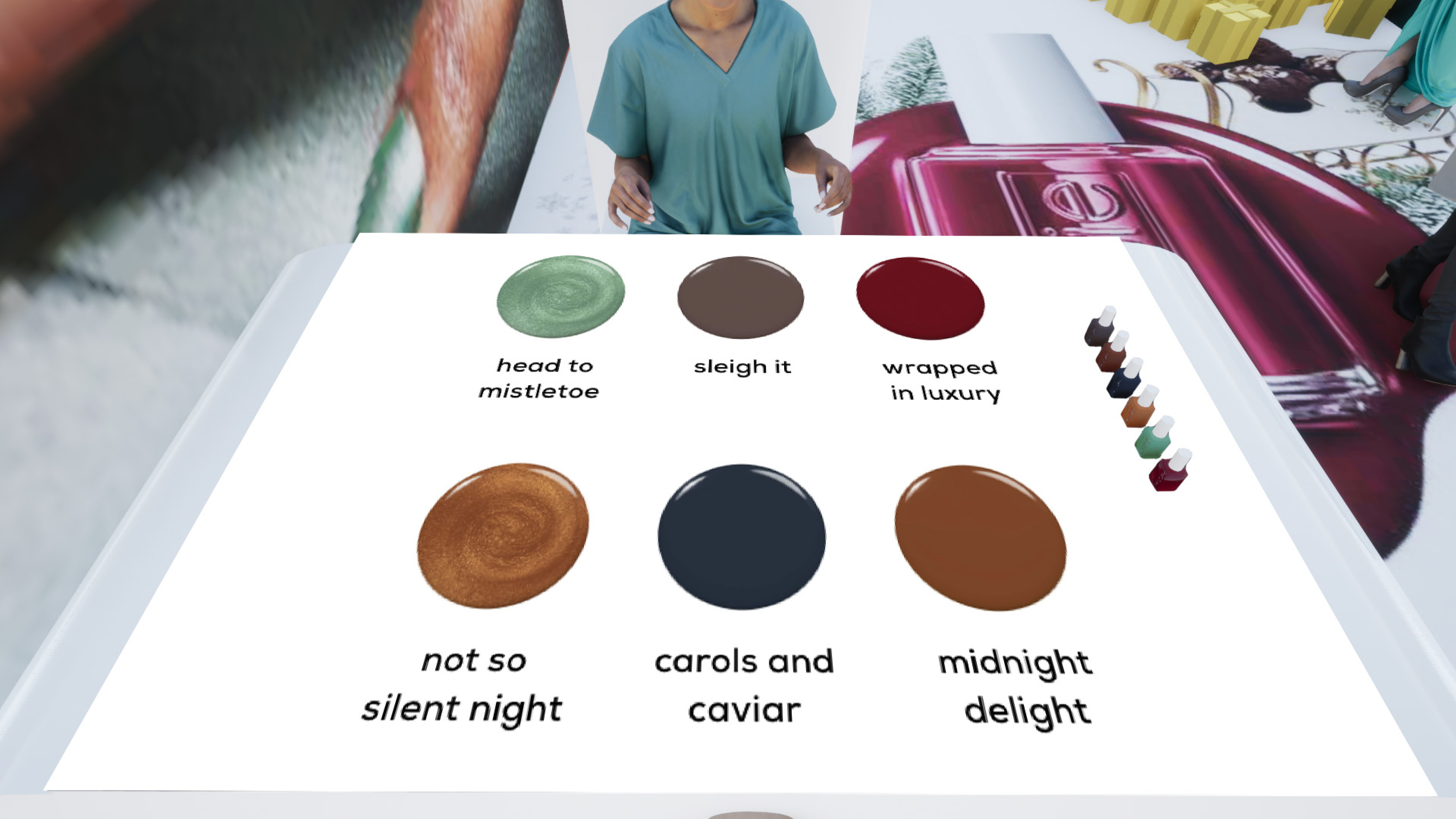 An outdoor consumer-facing brand activation for Essie's winter Wrapped in Luxury 2022 nail polish collection.