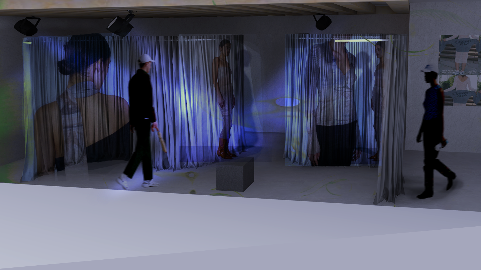 A multifunctional retail, gallery, & community space for the Spanish fashion brand Paloma Wool. The space represents the brand's commitments to sustainability, art, and community. The store features gallery-style clothing displays, a projection display room, and a space providing creative resources to those who visit.