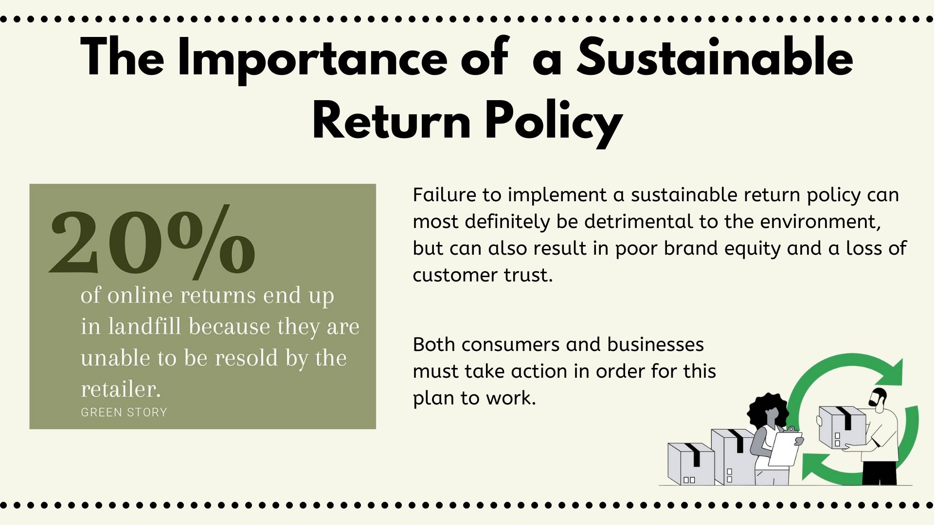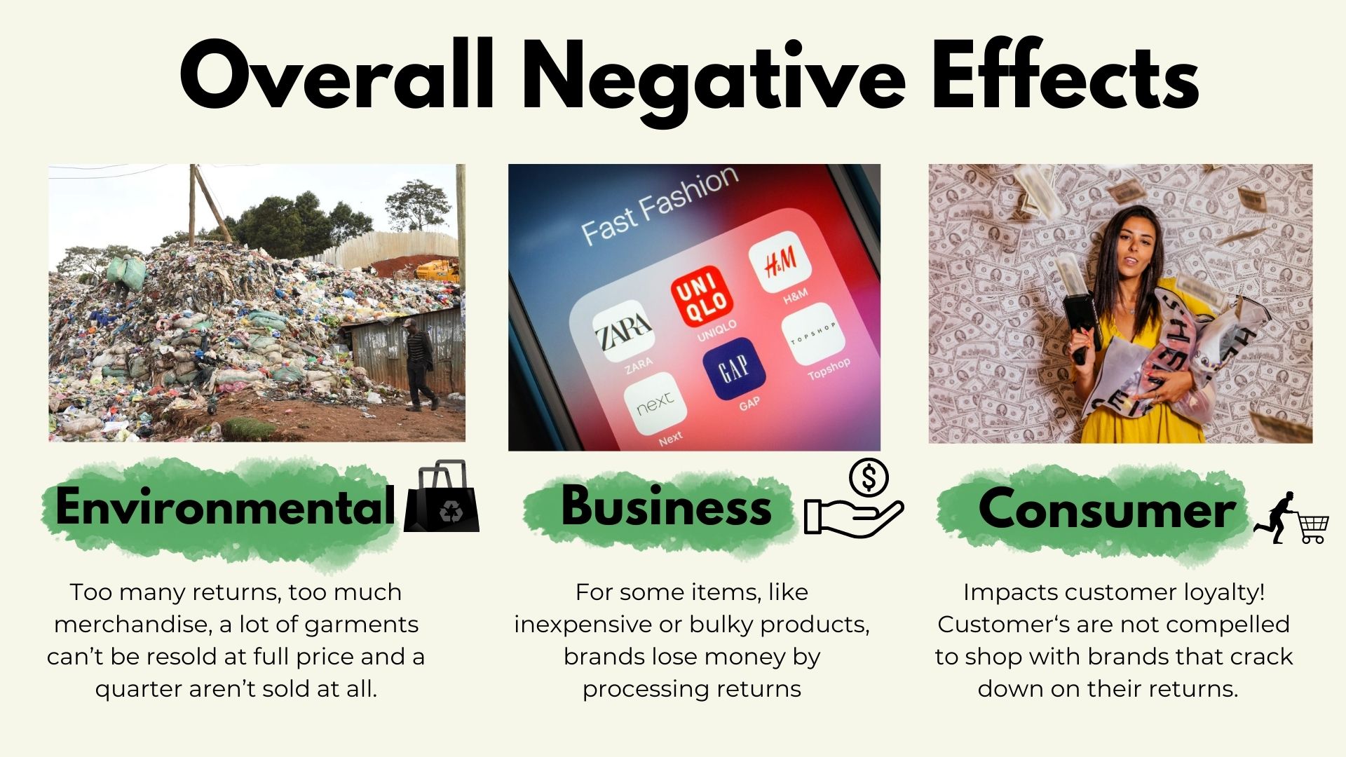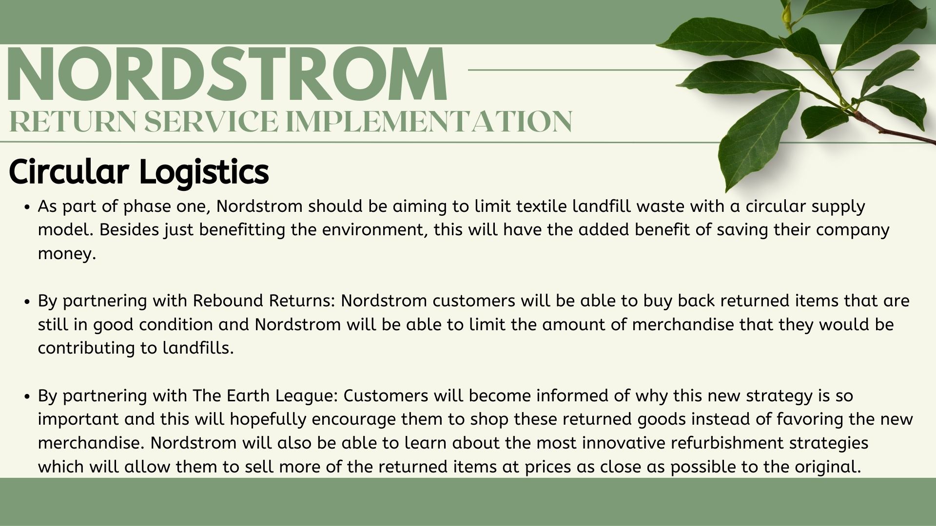 Our project pitches the implementation of an eco-friendly return system that brands can partner with to cut down on CO2e. The returns system accounts for a large amount of waste and pollution. We found that corporations will not rework their current return systems to be more sustainable unless they see financial gain. Our project looks at the reverse supply chain system holistically to find solutions for environmental and economic losses. We outline the stages of our eco-friendly approach, partnerships that align with our mission, and give implementation strategy examples of potential clients. With Chloe Barker, Sadira Hayes, Lauren Peruta, Jocelyn Harrison, Elisabeth Bracco.