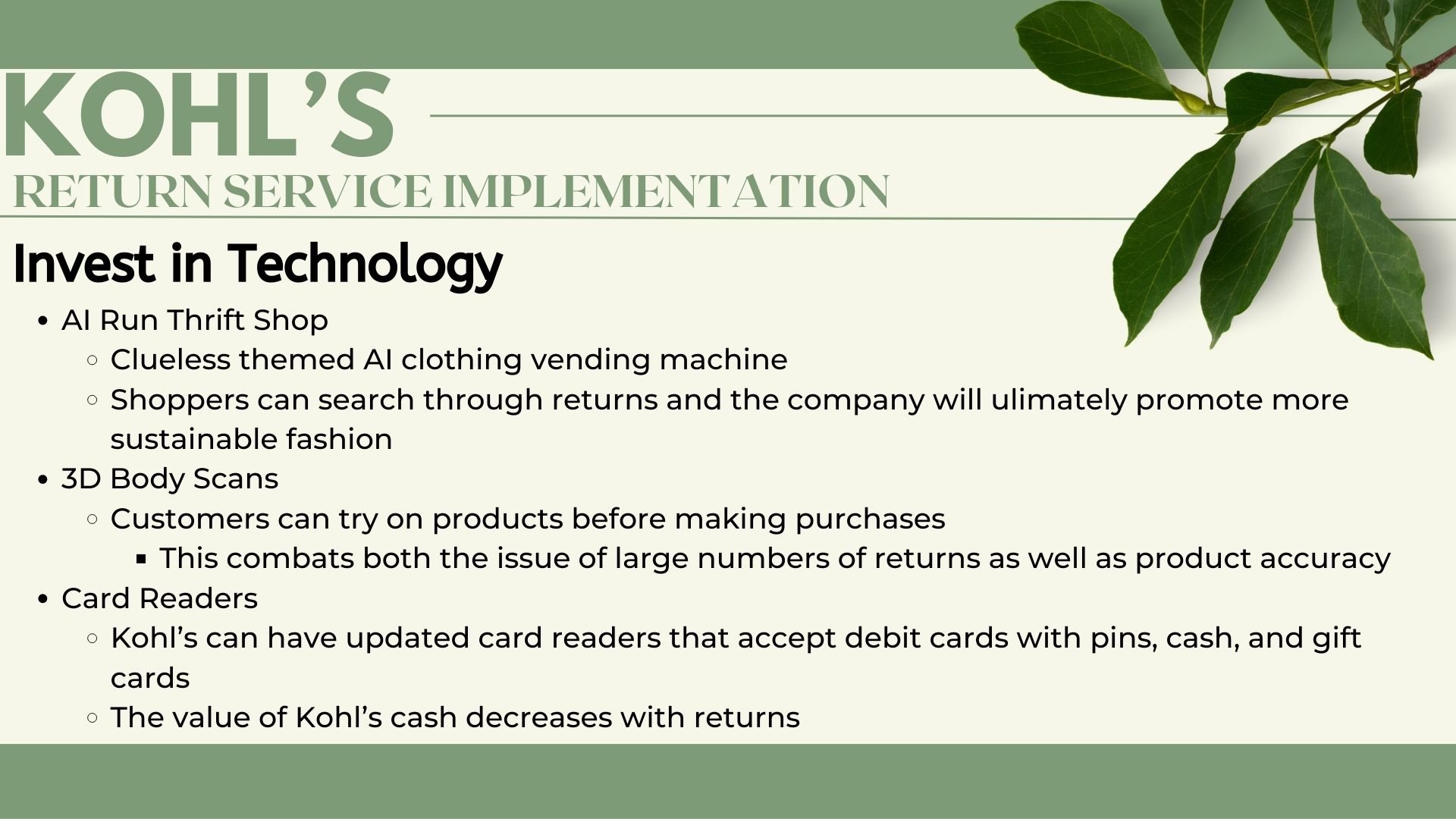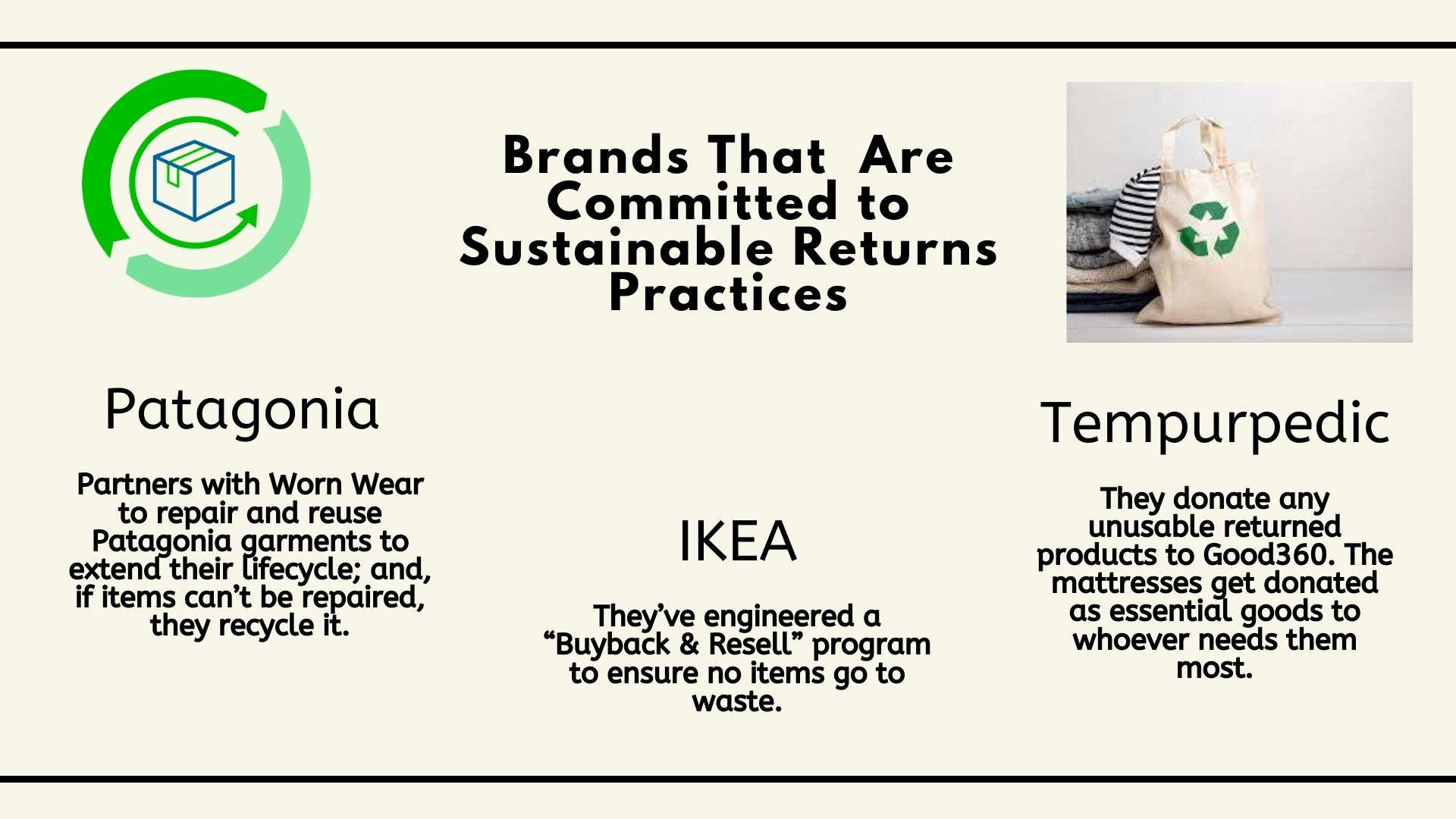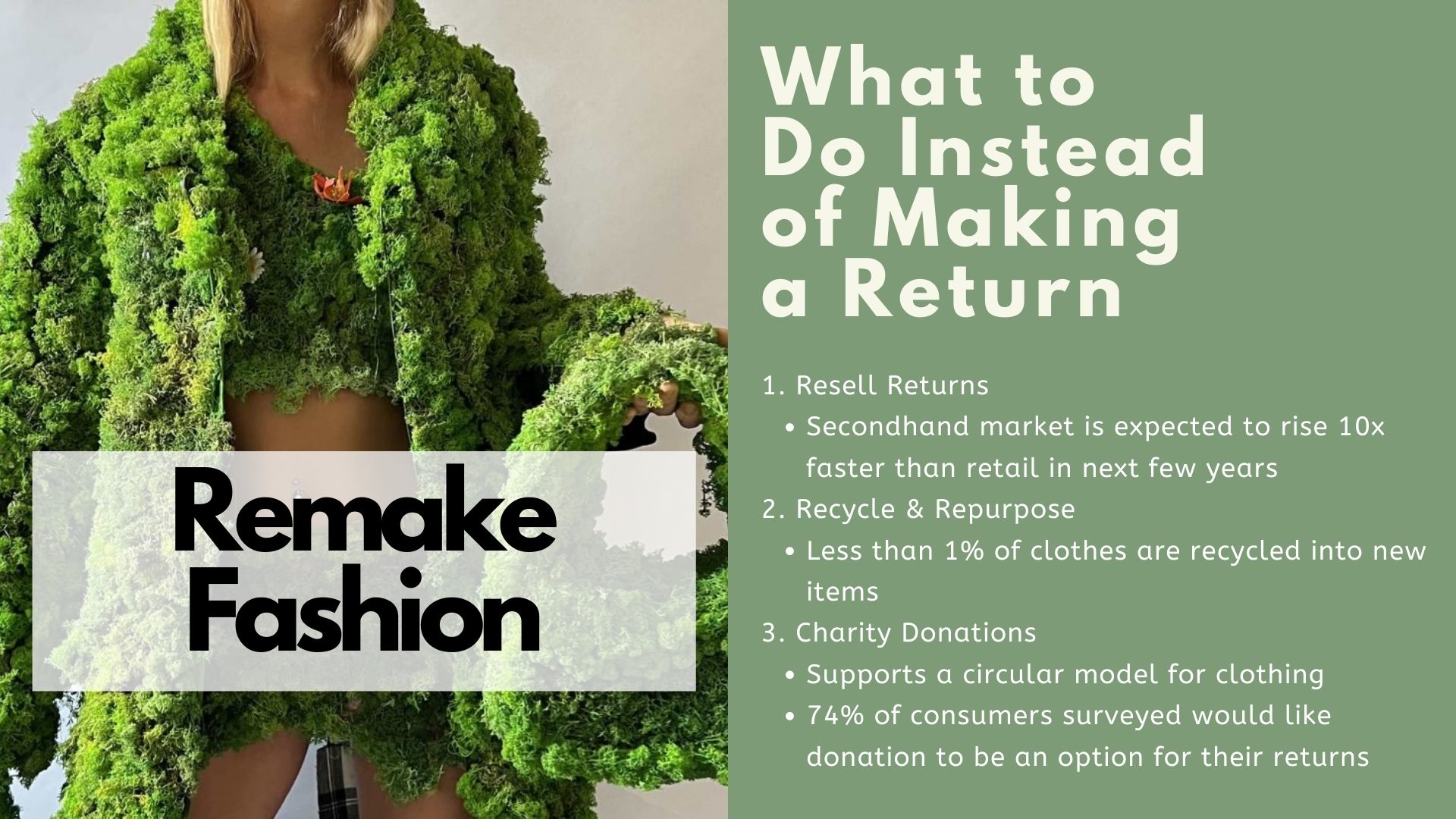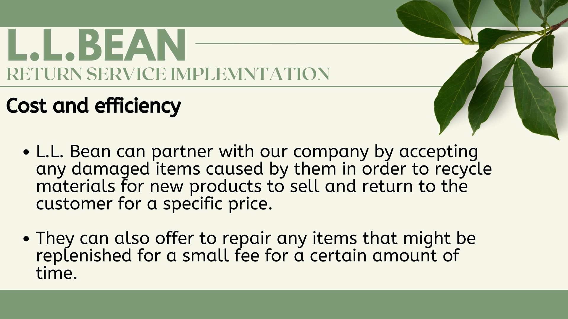 Our project pitches the implementation of an eco-friendly return system that brands can partner with to cut down on CO2e. The returns system accounts for a large amount of waste and pollution. We found that corporations will not rework their current return systems to be more sustainable unless they see financial gain. Our project looks at the reverse supply chain system holistically to find solutions for environmental and economic losses. We outline the stages of our eco-friendly approach, partnerships that align with our mission, and give implementation strategy examples of potential clients. With Chloe Barker, Sadira Hayes, Lauren Peruta, Jocelyn Harrison, Elisabeth Bracco.