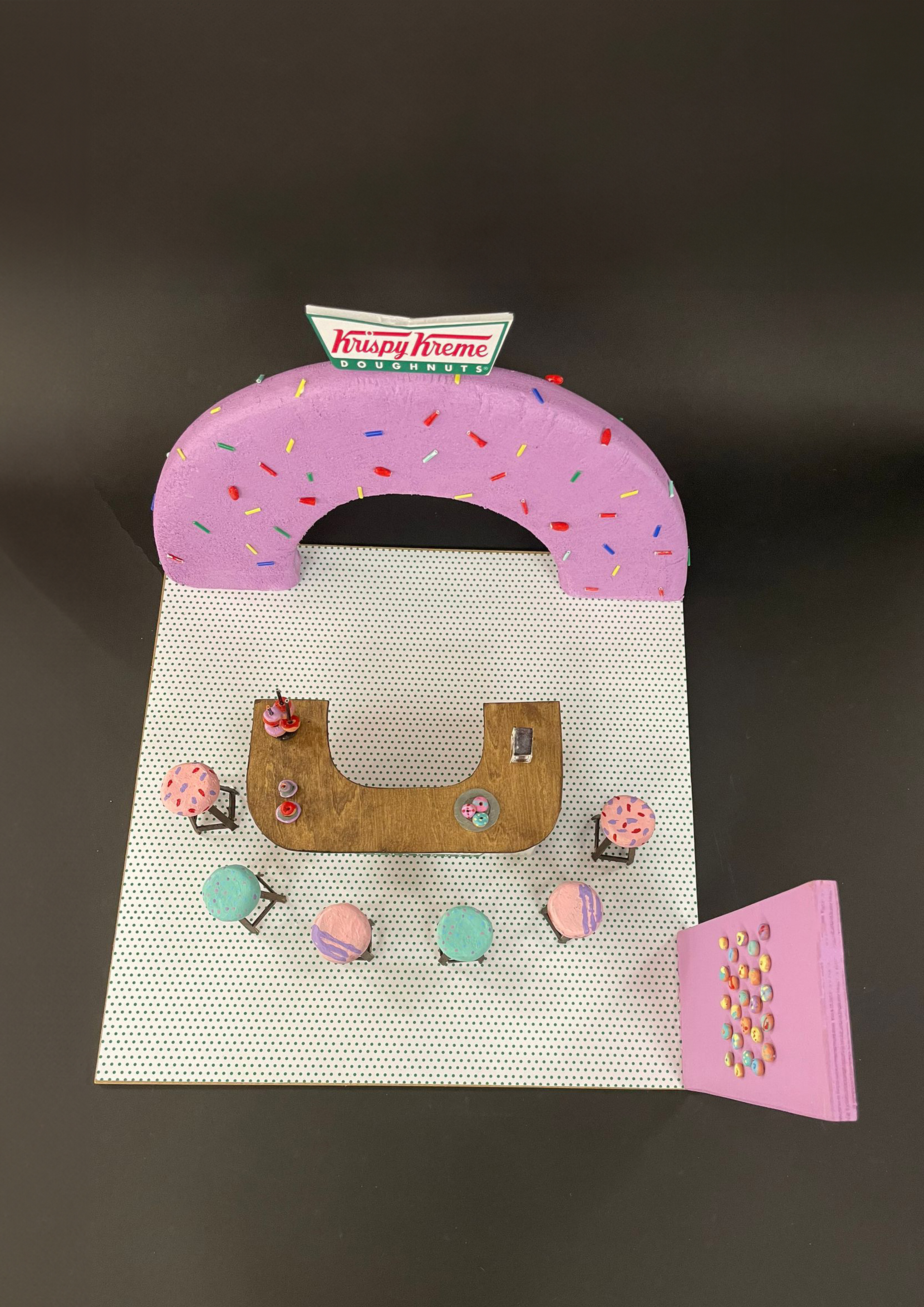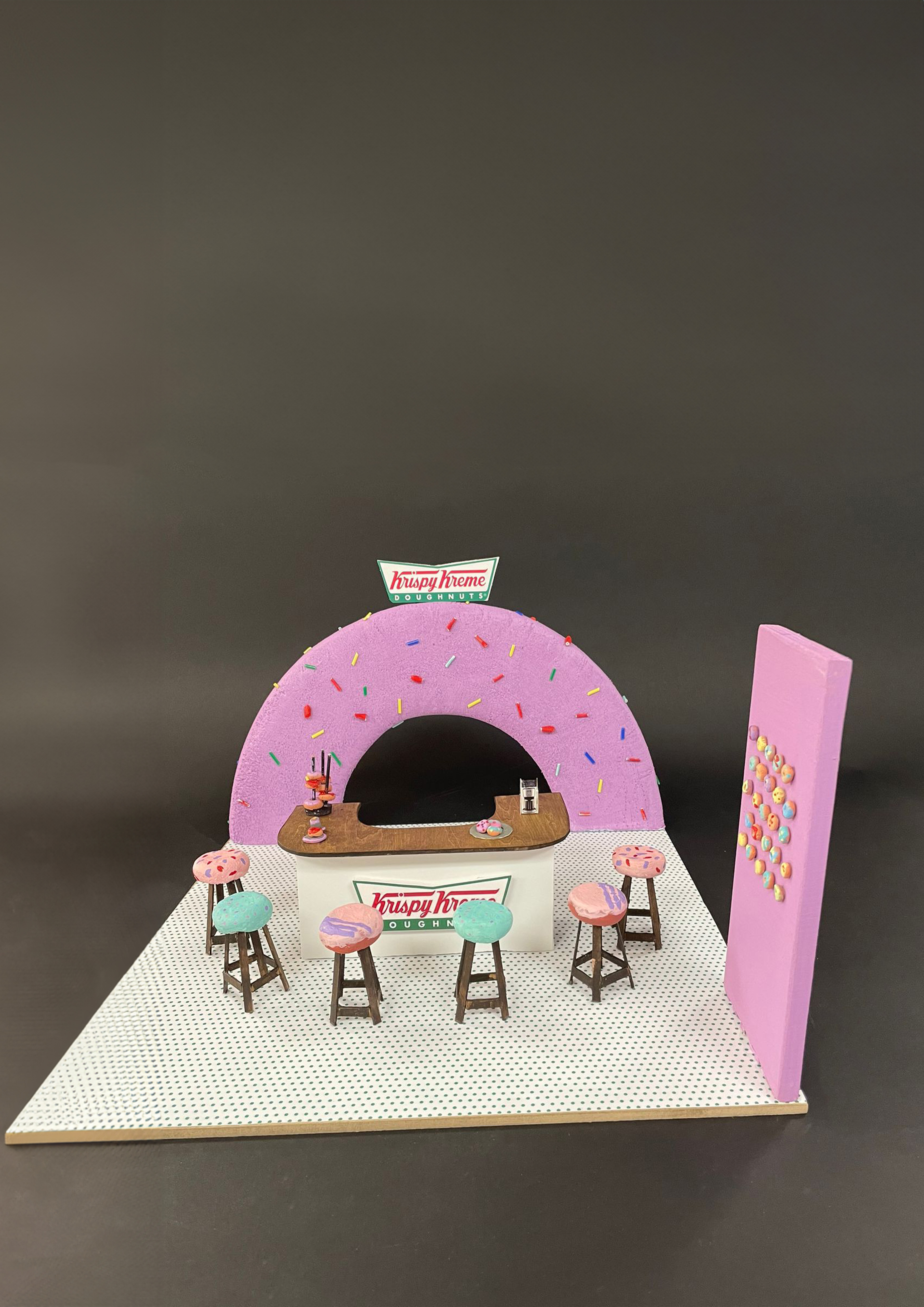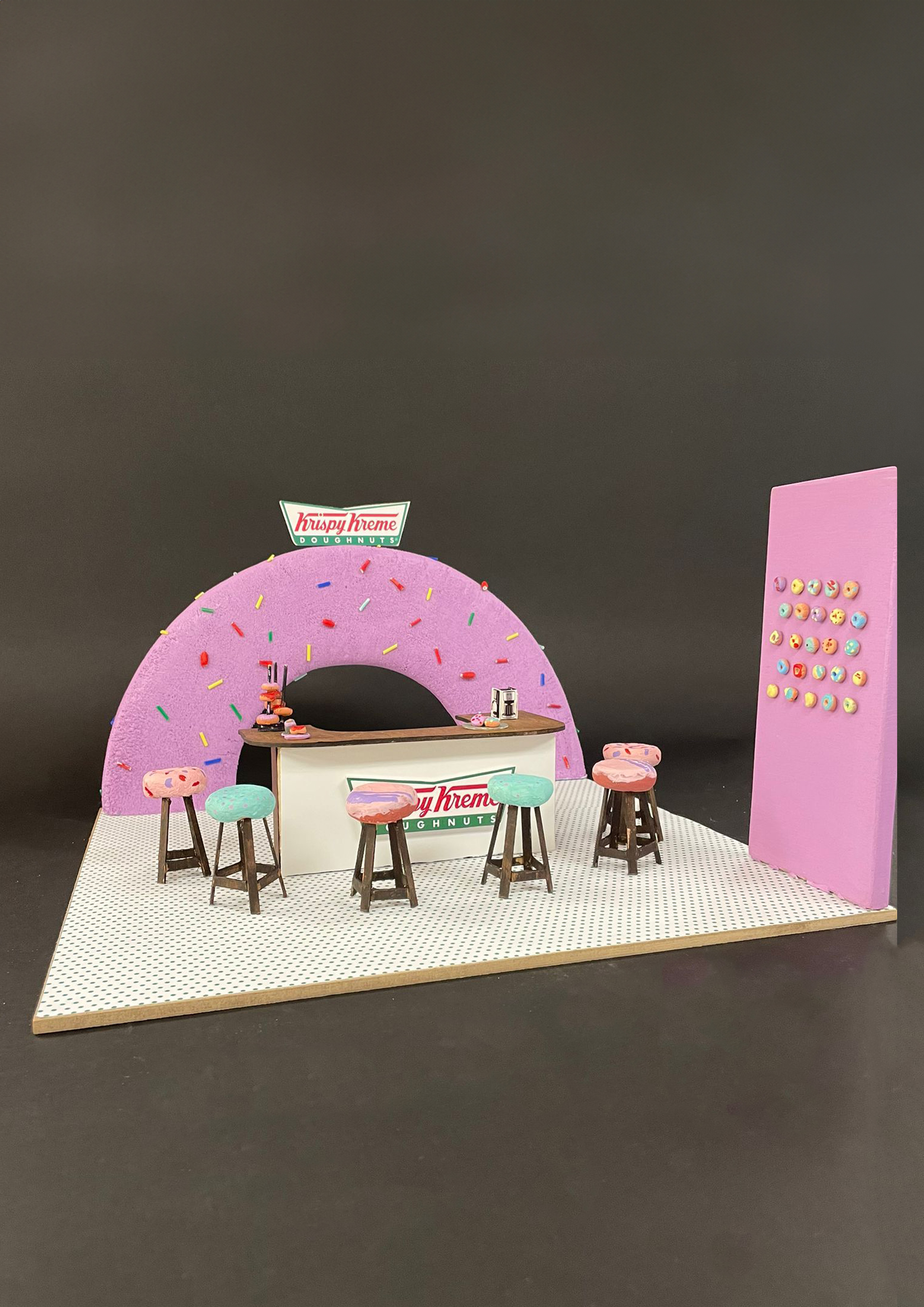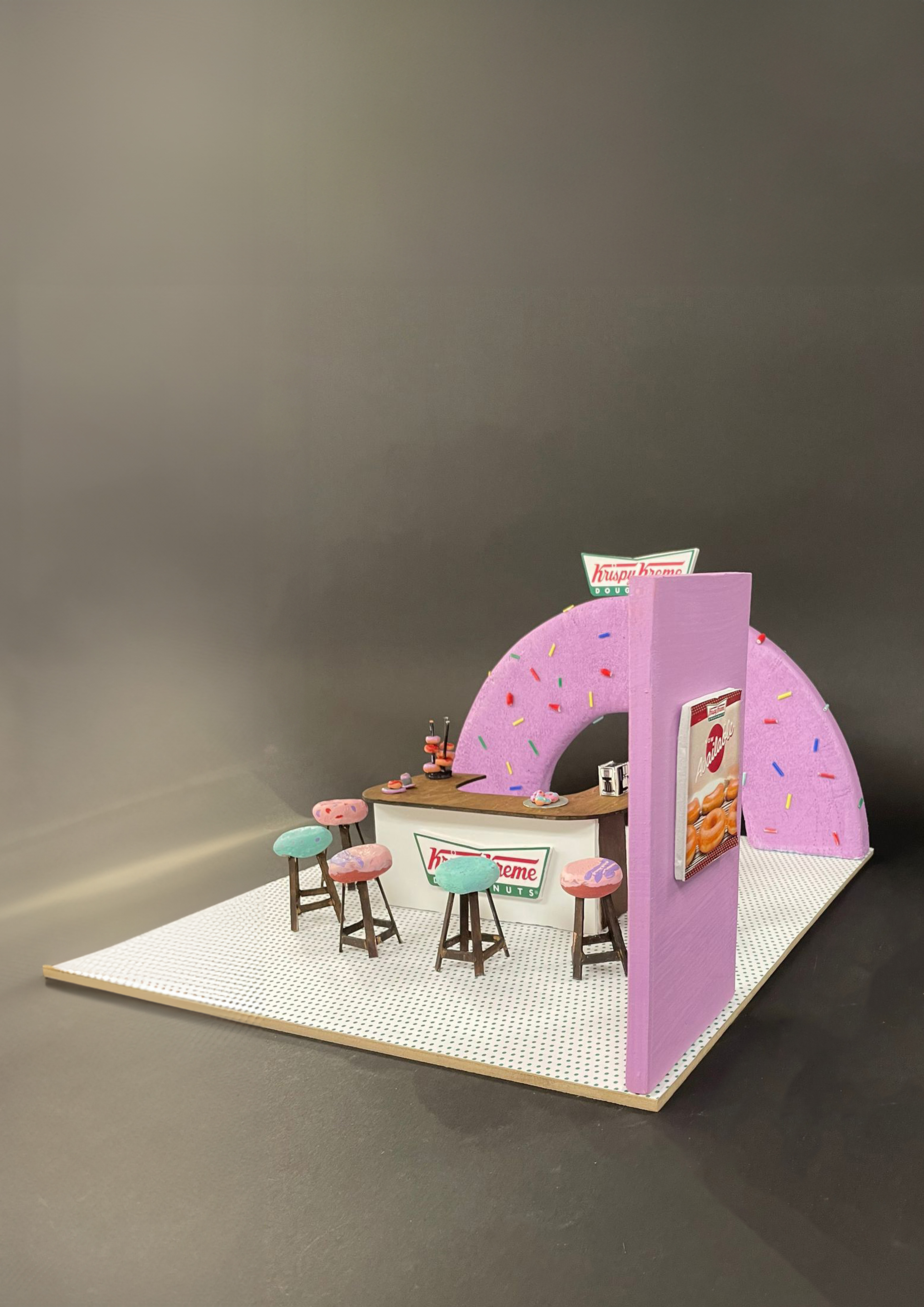 Step into a miniature wonderland of Krispy Kreme! Crafted with care using locally sourced materials like wood, clay, and foam core, this pint-sized exhibit bursts with color and whimsy. Indulge your senses in the delightful world of Krispy Kreme, whe...Step into a miniature wonderland of Krispy Kreme! Crafted with care using locally sourced materials like wood, clay, and foam core, this pint-sized exhibit bursts with color and whimsy. Indulge your senses in the delightful world of Krispy Kreme, where every detail invites you to savor the sweetness of our beloved treats on a smaller scale.See More