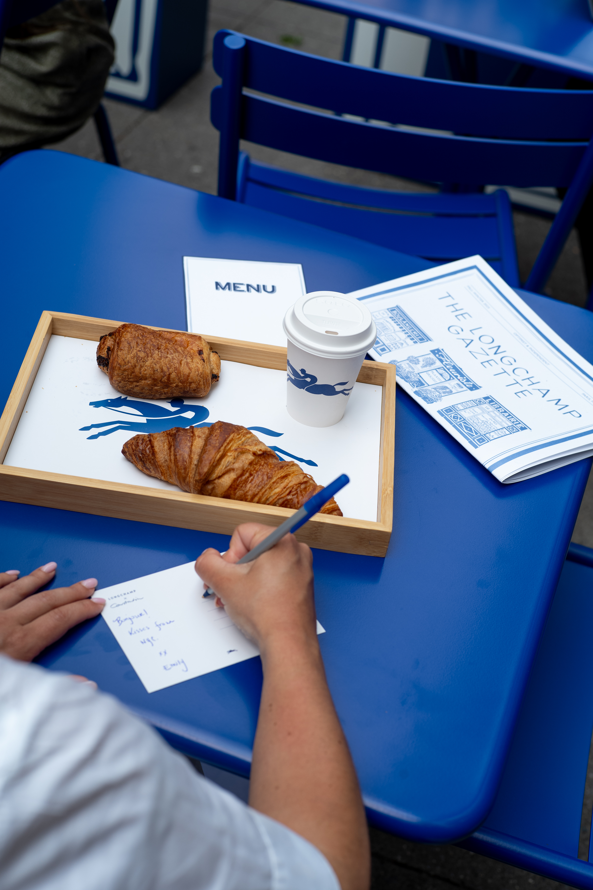 This elevated offering is inspired by artisans of all kinds, including ceramicist Constantin Riant, whose creative vision merges modern expression with the dynamic, graphic spirit of Longchamp. Longchamp and Constantin Riant recently collaborated on a capsule collection, featuring blue and white designs across new handbags, accessories, and ready-to-wear pieces for the Fall/Winter 2025 collection. Riant also created a new emblem seen in the collection, a tribute to the heritage of Longchamp. This collaboration is celebrated through both the café and store design with color schemes and themes that mirror the collection. His work is a nod to bold individuality and contemporary artistry, echoing the Maison’s core values of authenticity and vibrant energy.