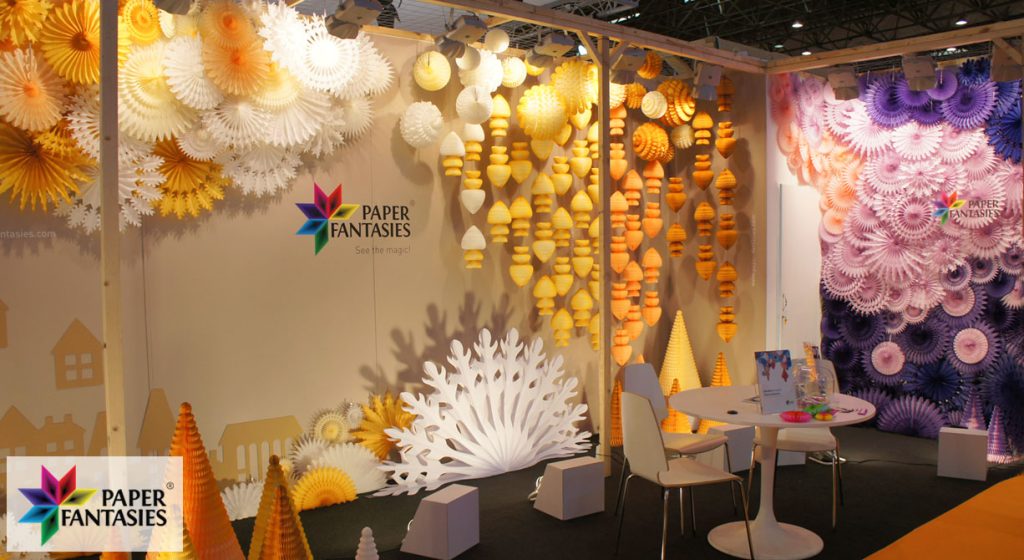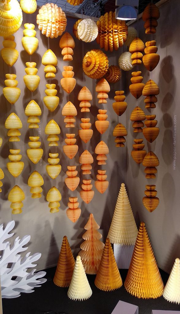 Window and in-store paper decorations were presented by Paper Fantasies, a company focused on honeycomb paper structures used in retail displays and visual merchandising.