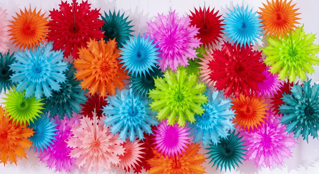 The collection includes three-dimensional honeycomb paper decorations and promotional display elements designed for window displays, store environments, and seasonal installations.
