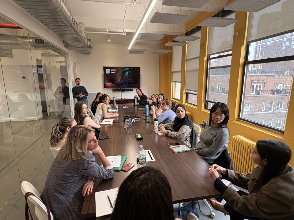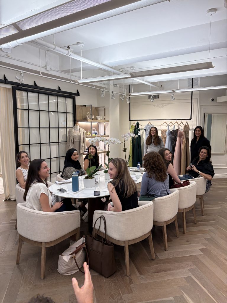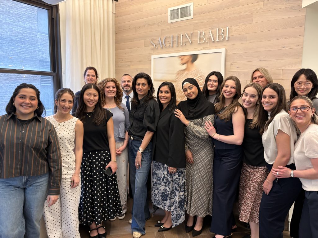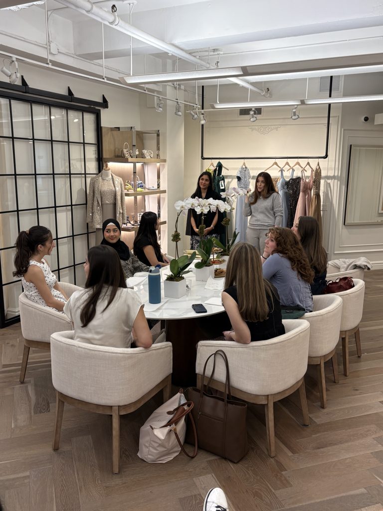 At Sachin & Babi, the students had the unique opportunity to meet with Babi Ahluwalia (Creative Director & Co-Founder), Amy Riordan (CEO), and Fedra Najera (E-Commerce & Marketing Manager) in their private New York City showroom. They gained firsthand insight into how a global luxury fashion brand operates across creative, business, and digital functions. The conversation provided a behind-the-scenes look at a collection’s process, from concept to sharing it with the world, while also exploring how the brand positions itself in the market, manages growth, and connects with customers through e-commerce and marketing. Students were able to ask questions directly to leadership, making it a highly engaging and real-world learning experience that bridged both creative vision and business strategy.