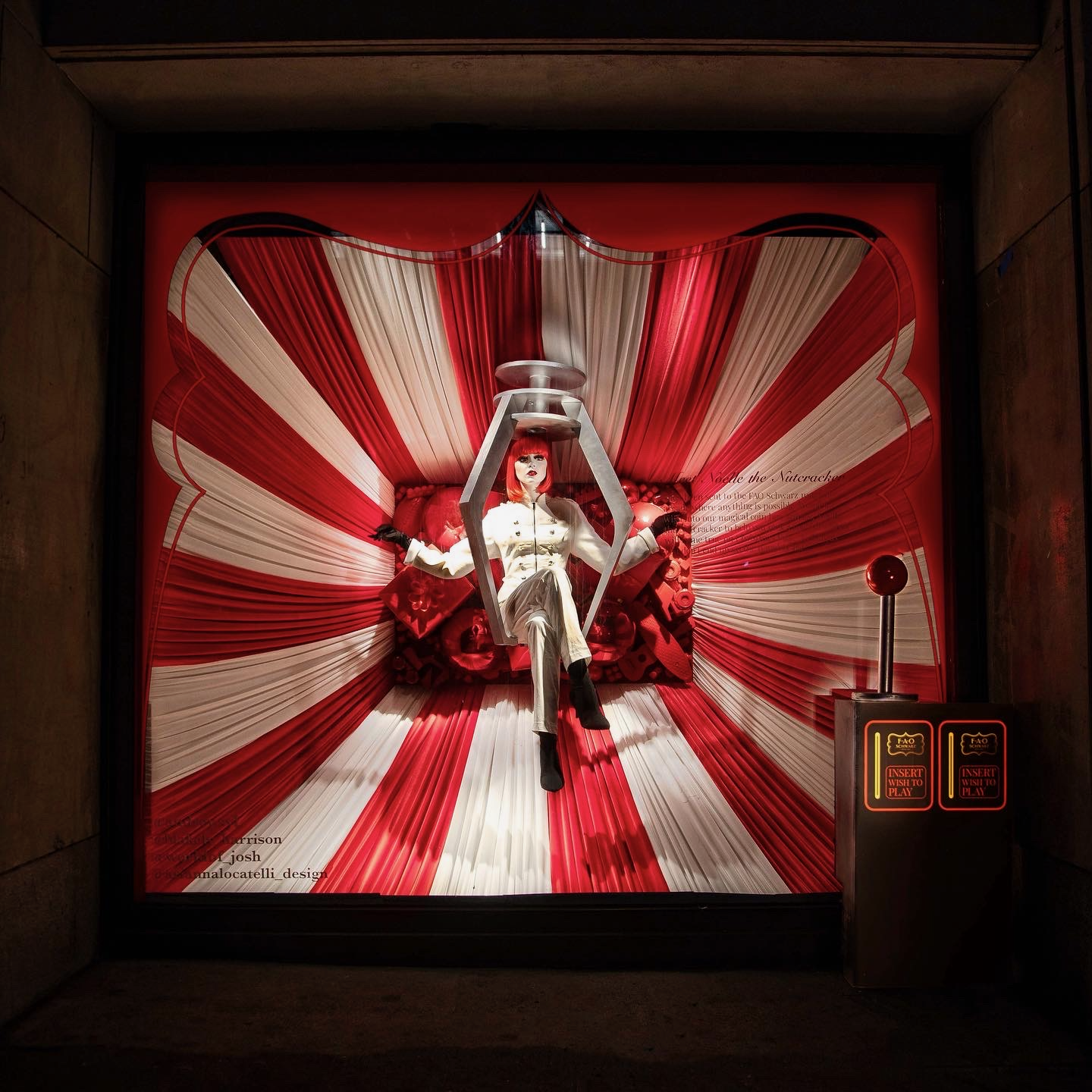 "Noelle" is a student designed holiday window displayed at the Fashion Institute of Technology. Assigned for Advanced Window Design class, students Audrey Sylvyana, Arianna Locatelli, Joshua Rivera, and Blakely Harrison designed a magical crane machine for FAO Schwarz that would grant a child any toy they wish for with the help of Noelle the Nutcracker. All a child has to do is insert a wish into the magical coin box and Noelle will help them pick out a toy of their wish!