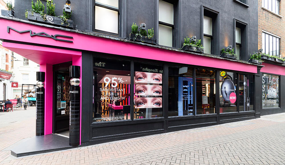 MAC Window Display and Props for the launch of the MACStack Mascara in their Carnaby Street Store Vinyl, CNC, Acrylic, Paint Spraying