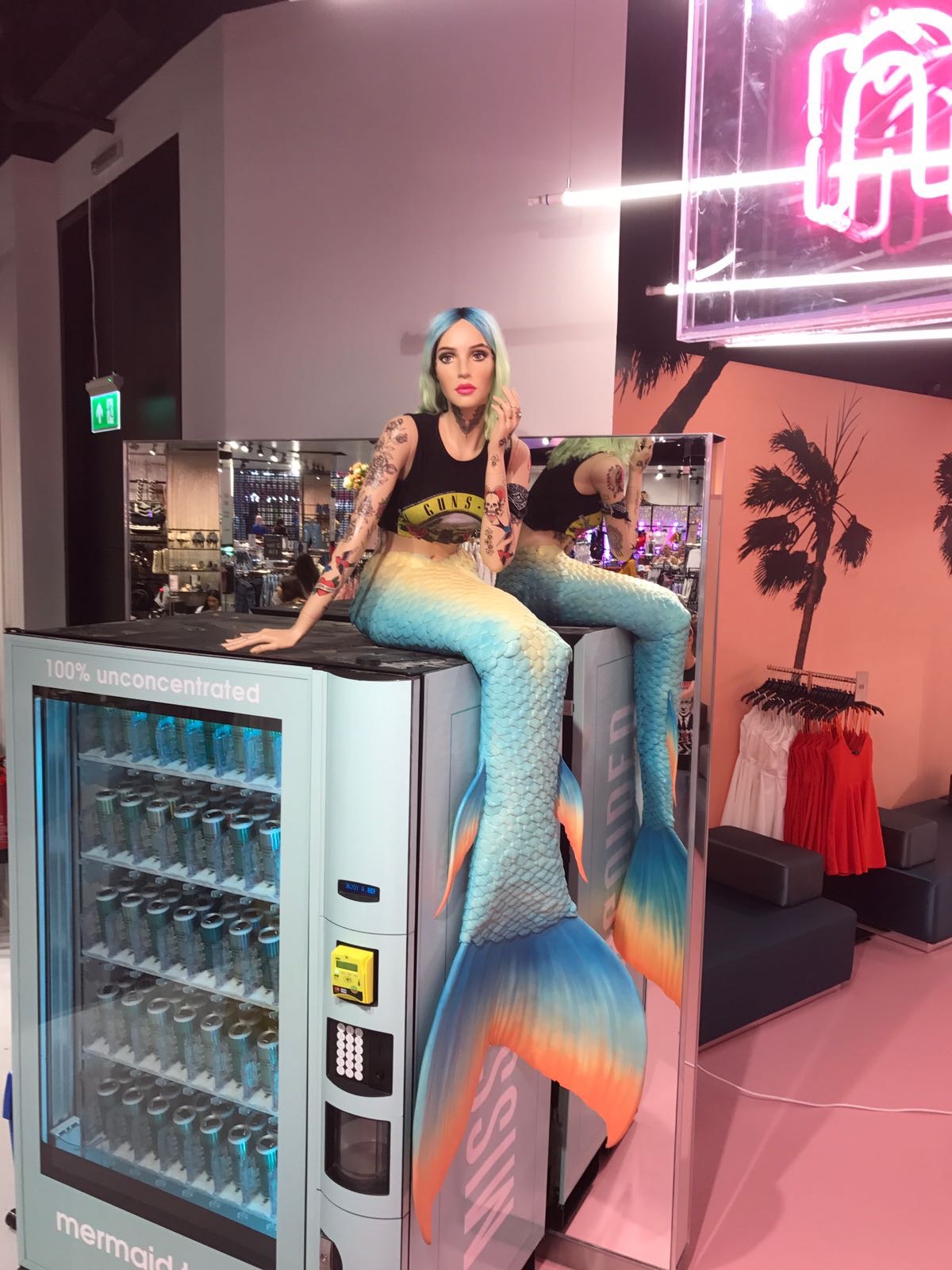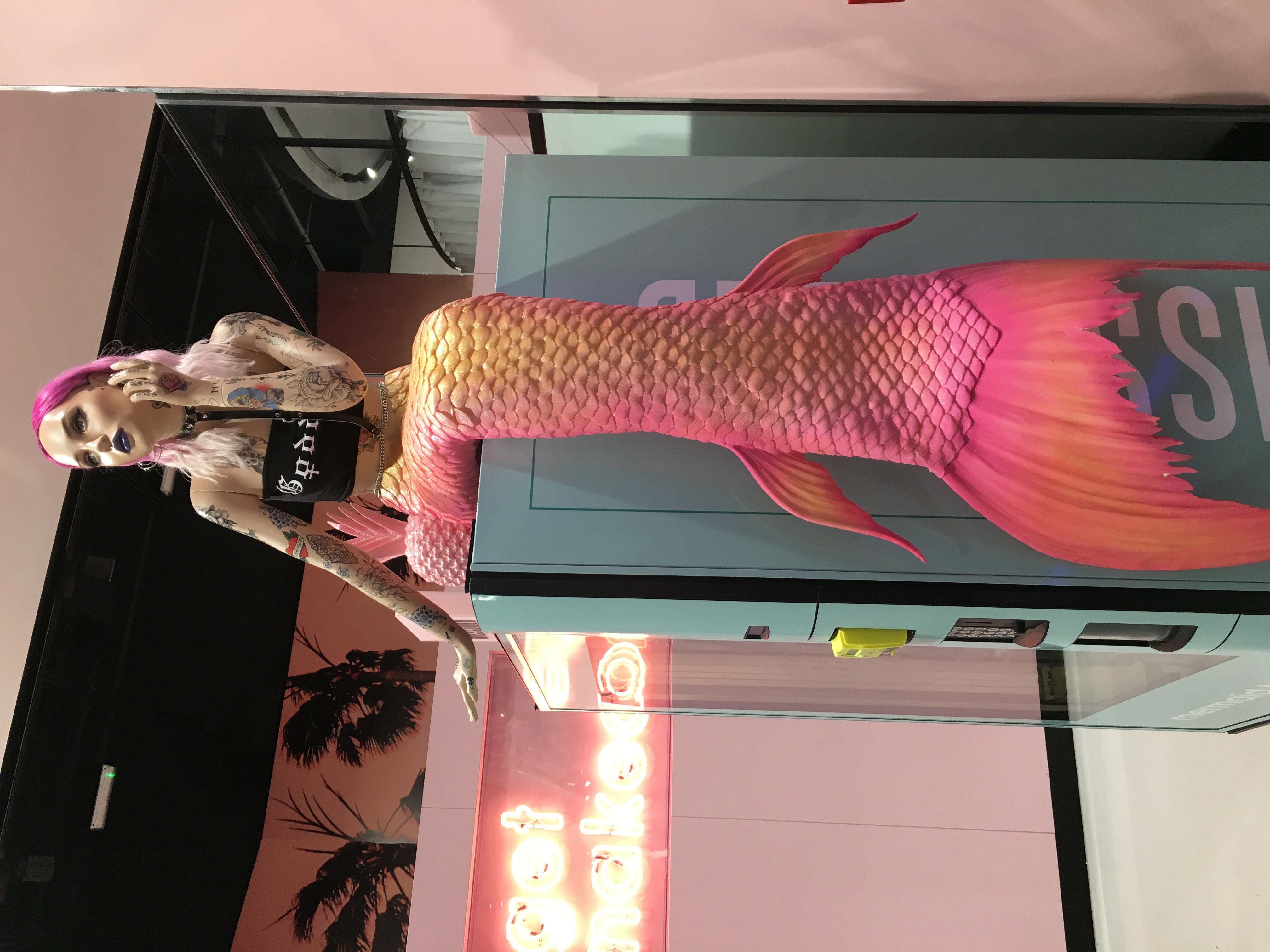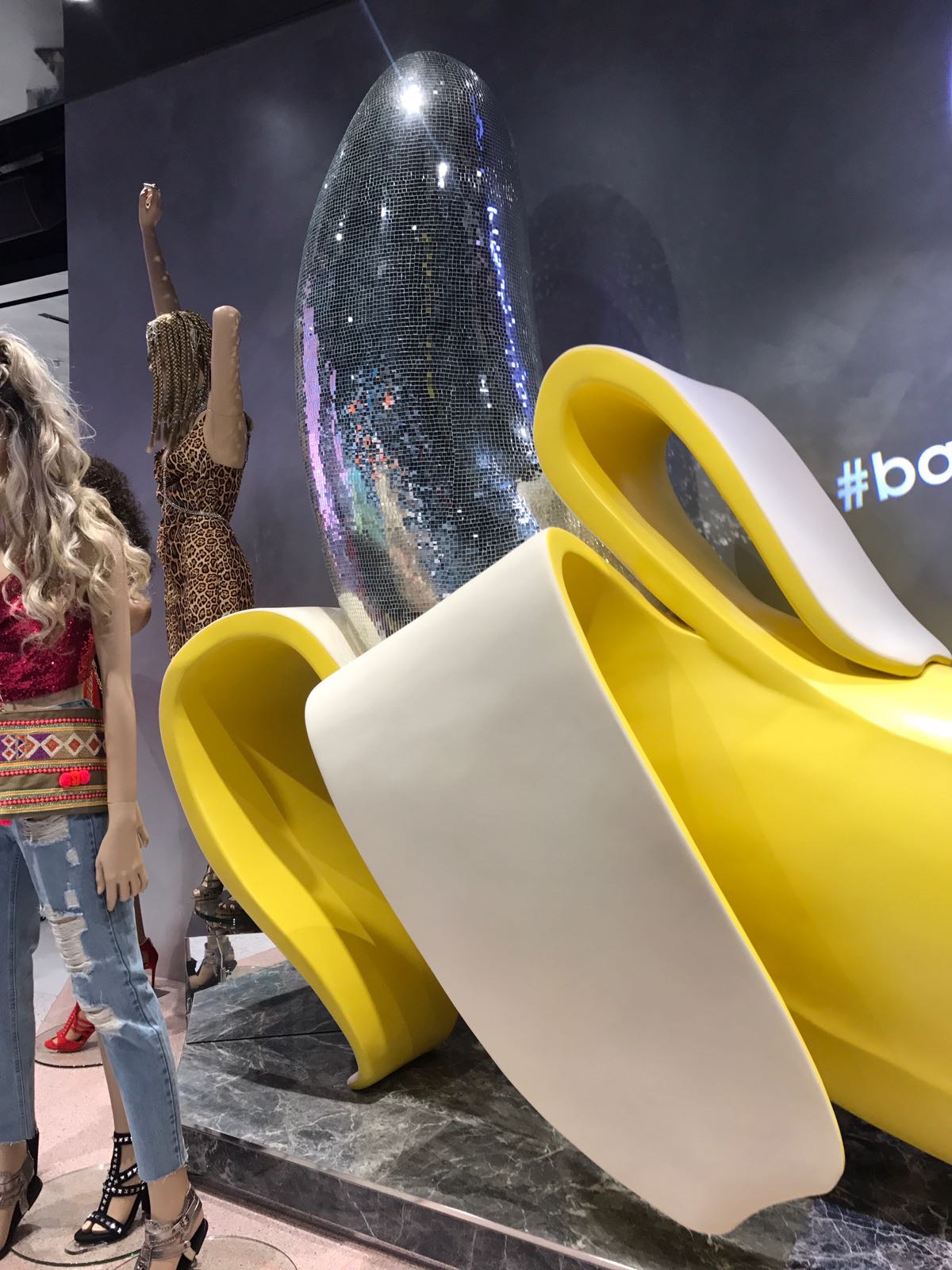 The props were a giant disco ball banana and mermaid’s tails fitted to mannequins.