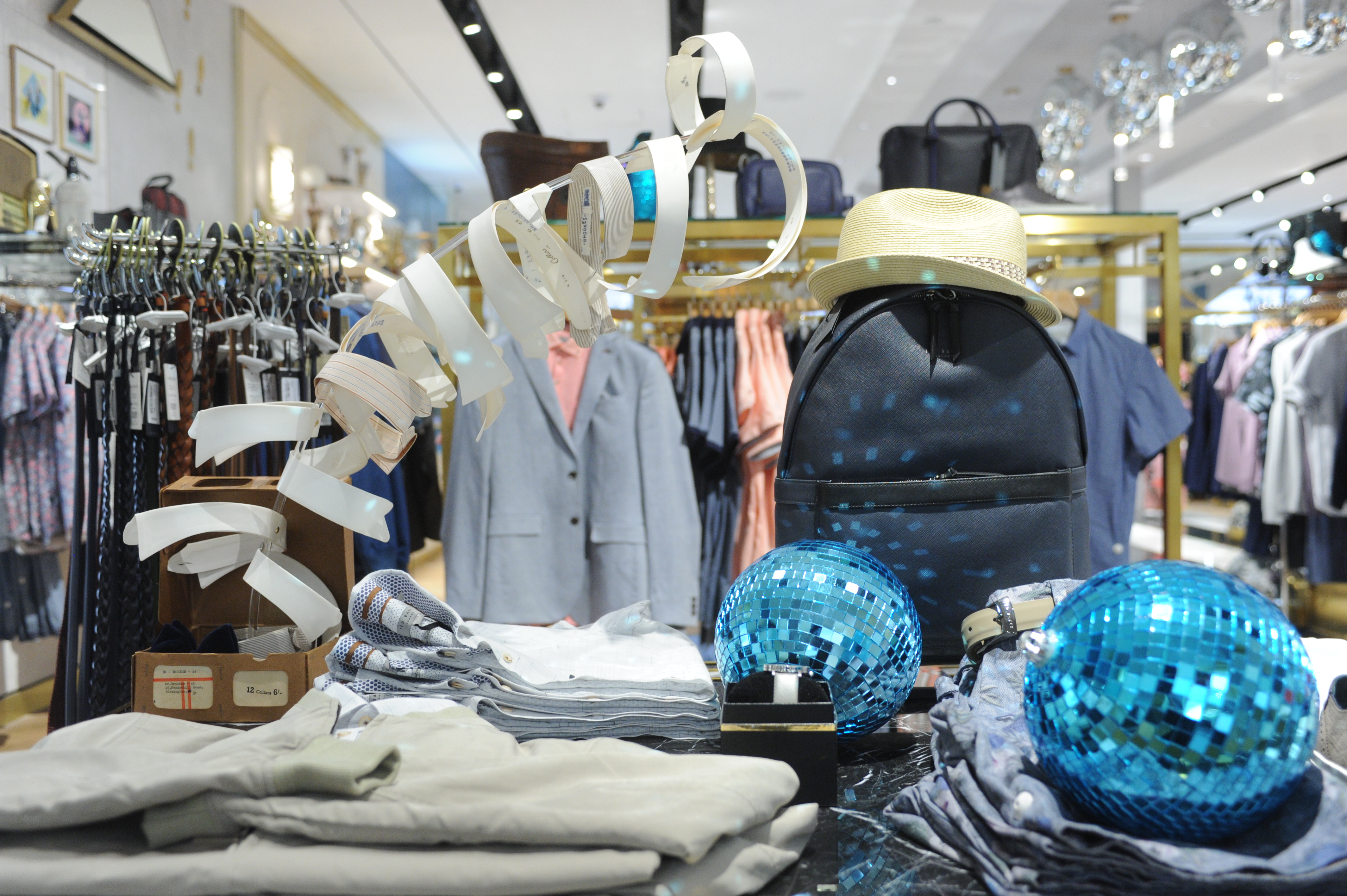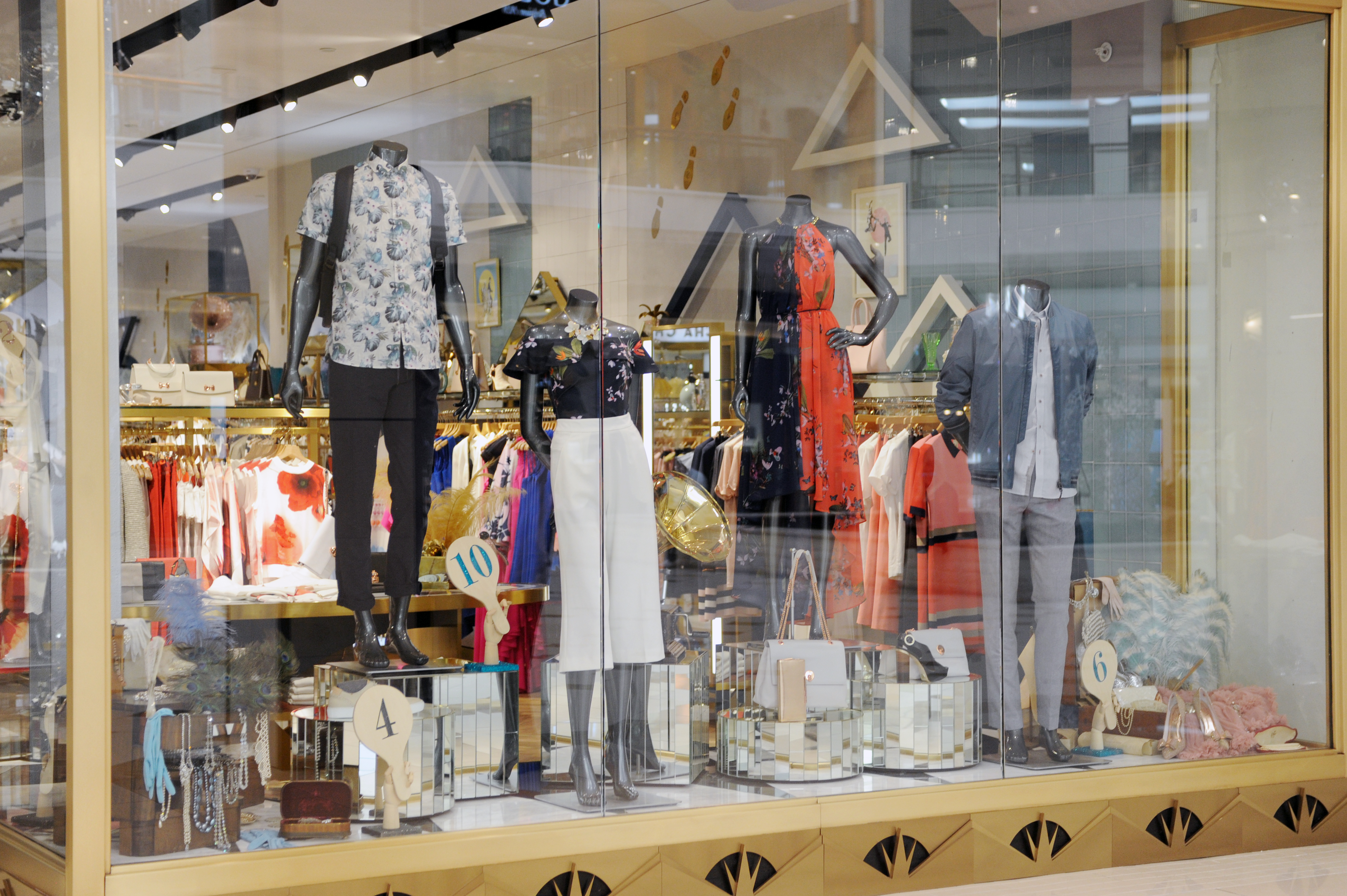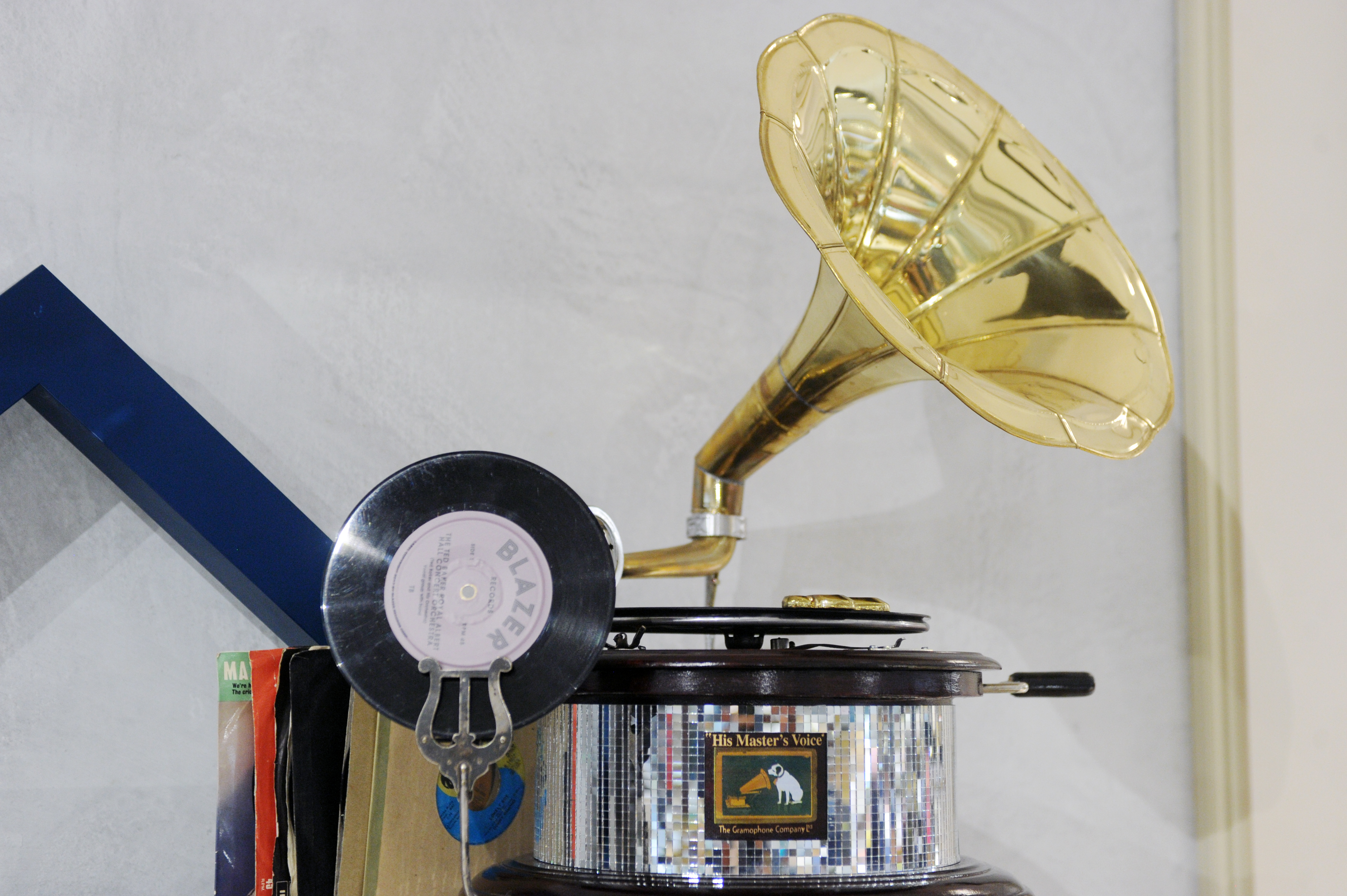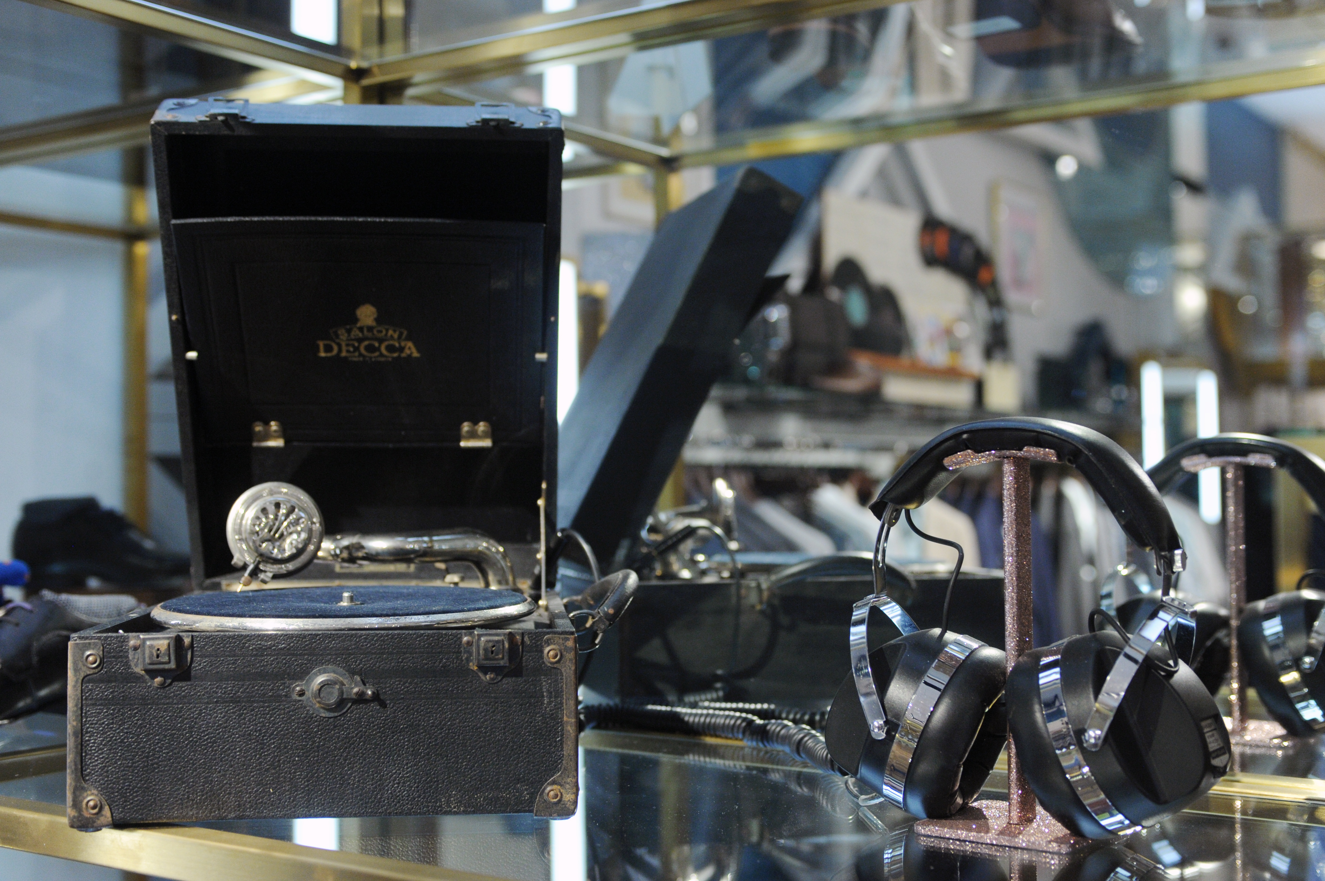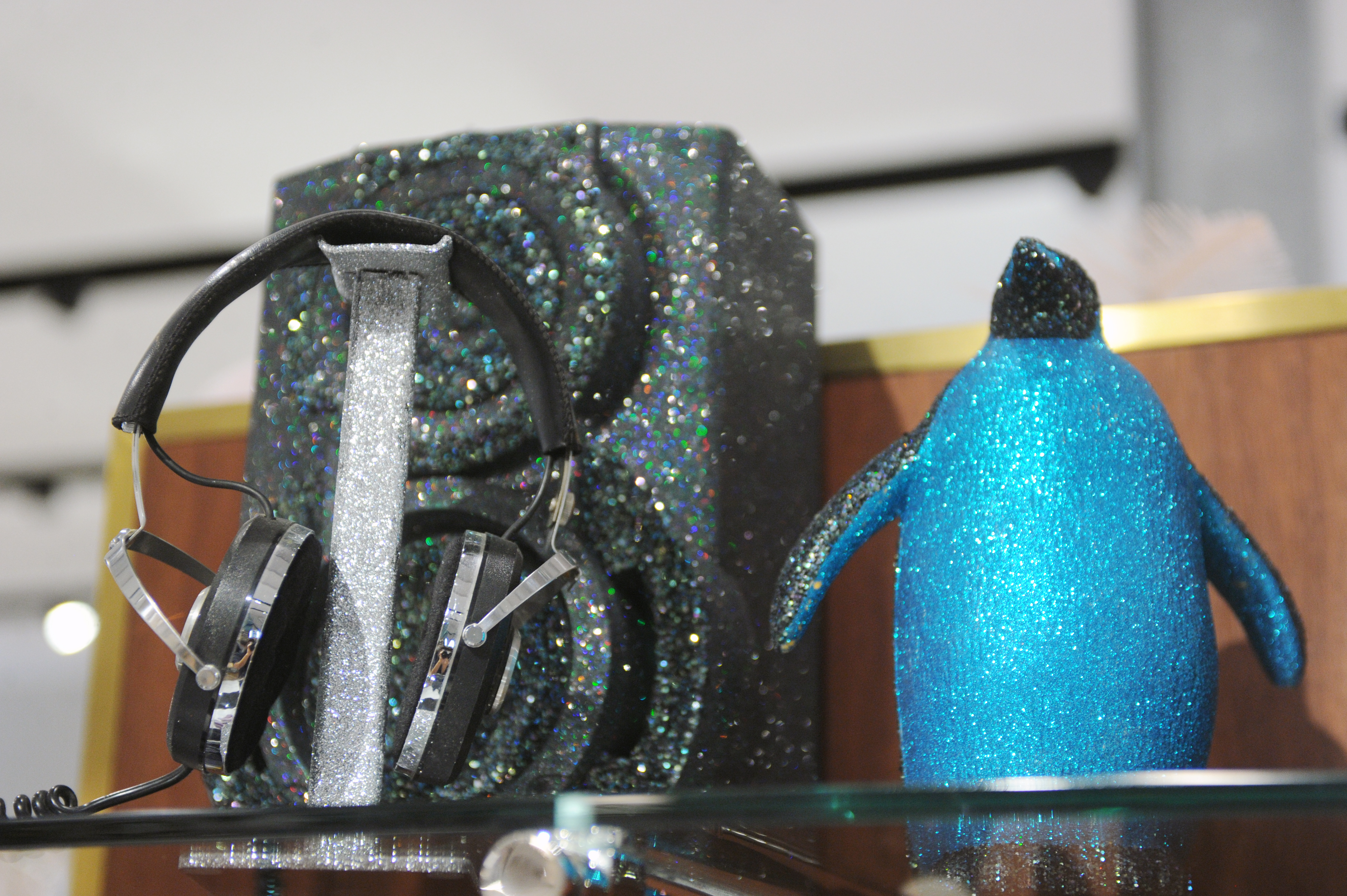 From old dancing trophies to ghetto blasters, ballroom dancing shoes to retro trainers. Some of the items had special treatments – ghetto blasters were glittered, gramophones were covered in mirror tiles, adding the glitz to the era and a fun twist on the items which were displayed through the store and the windows.