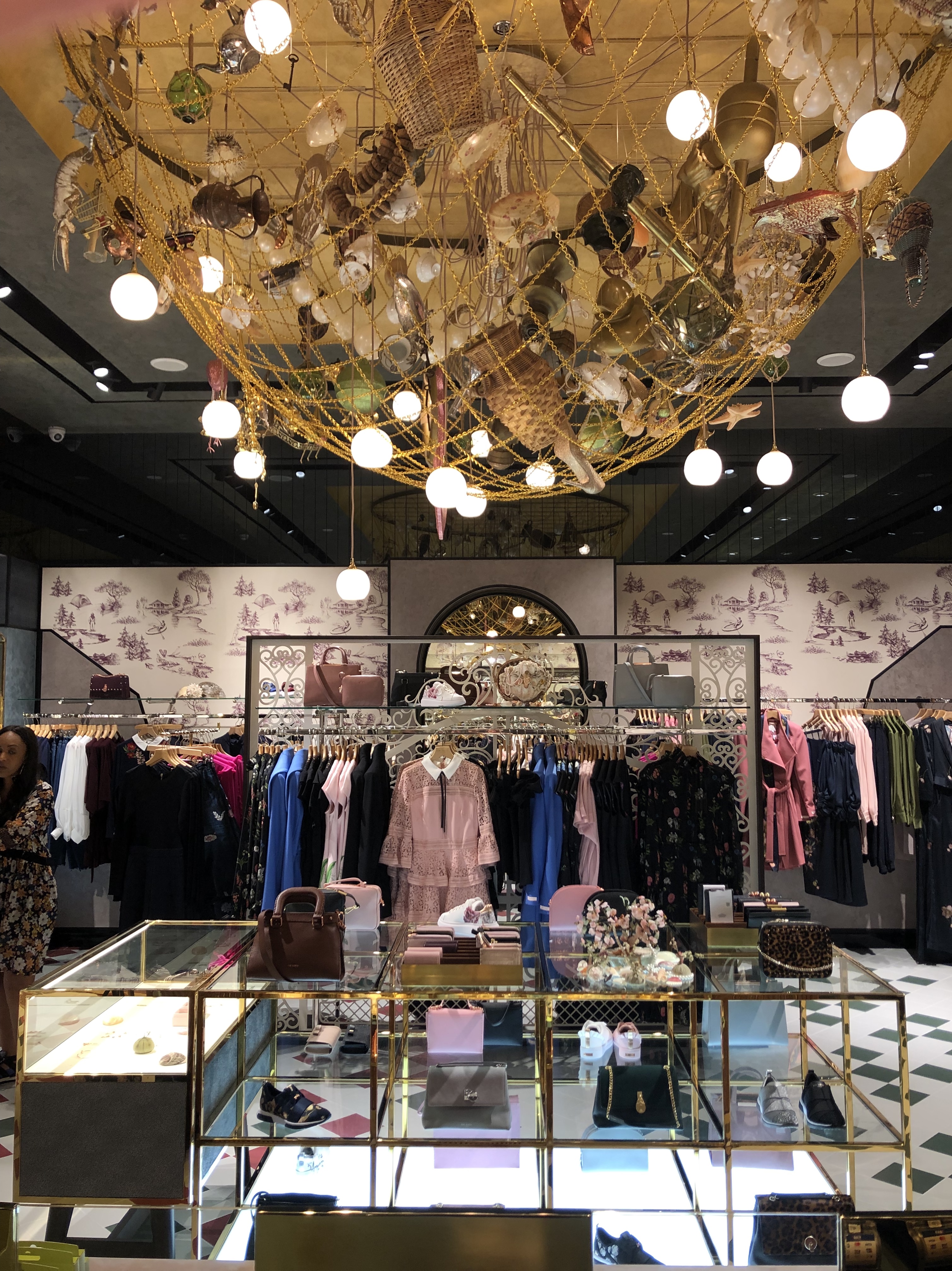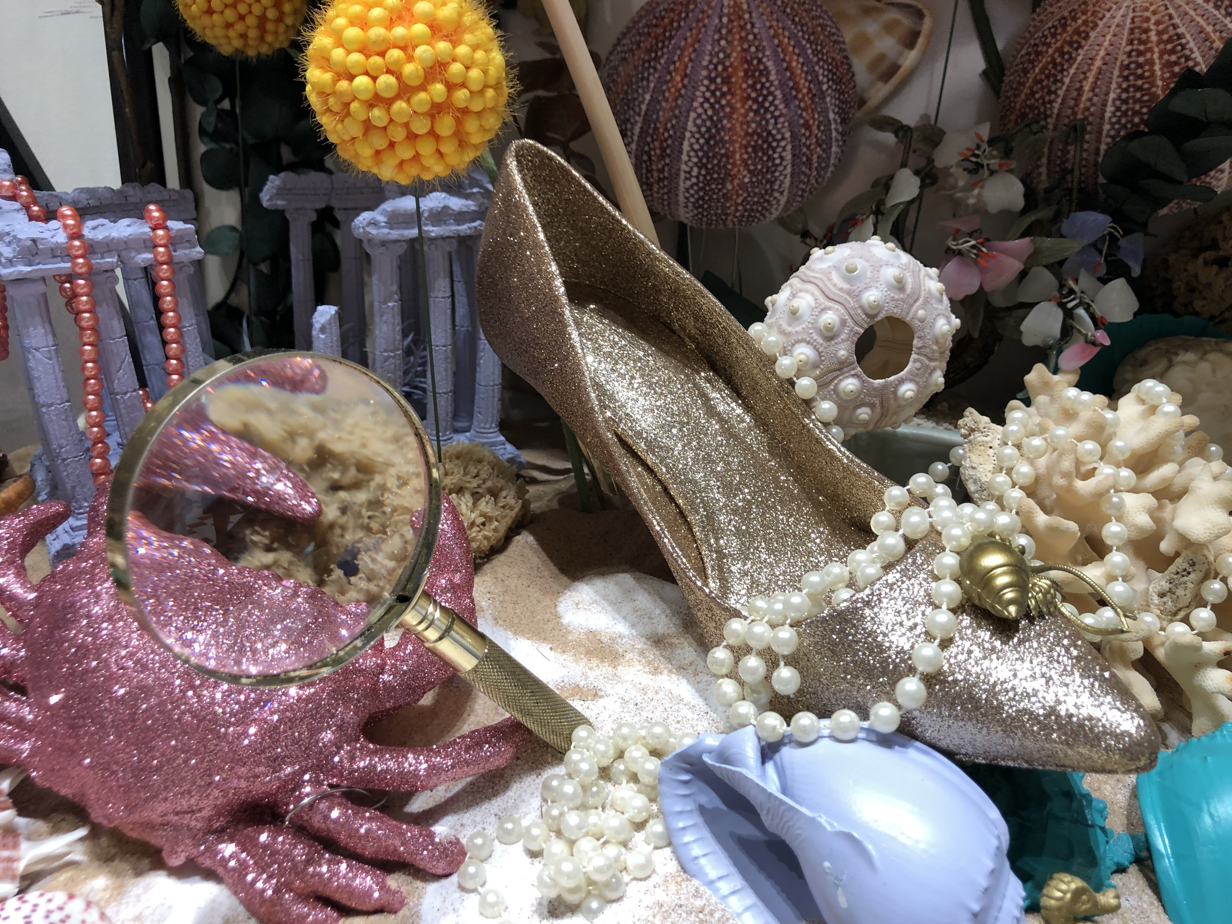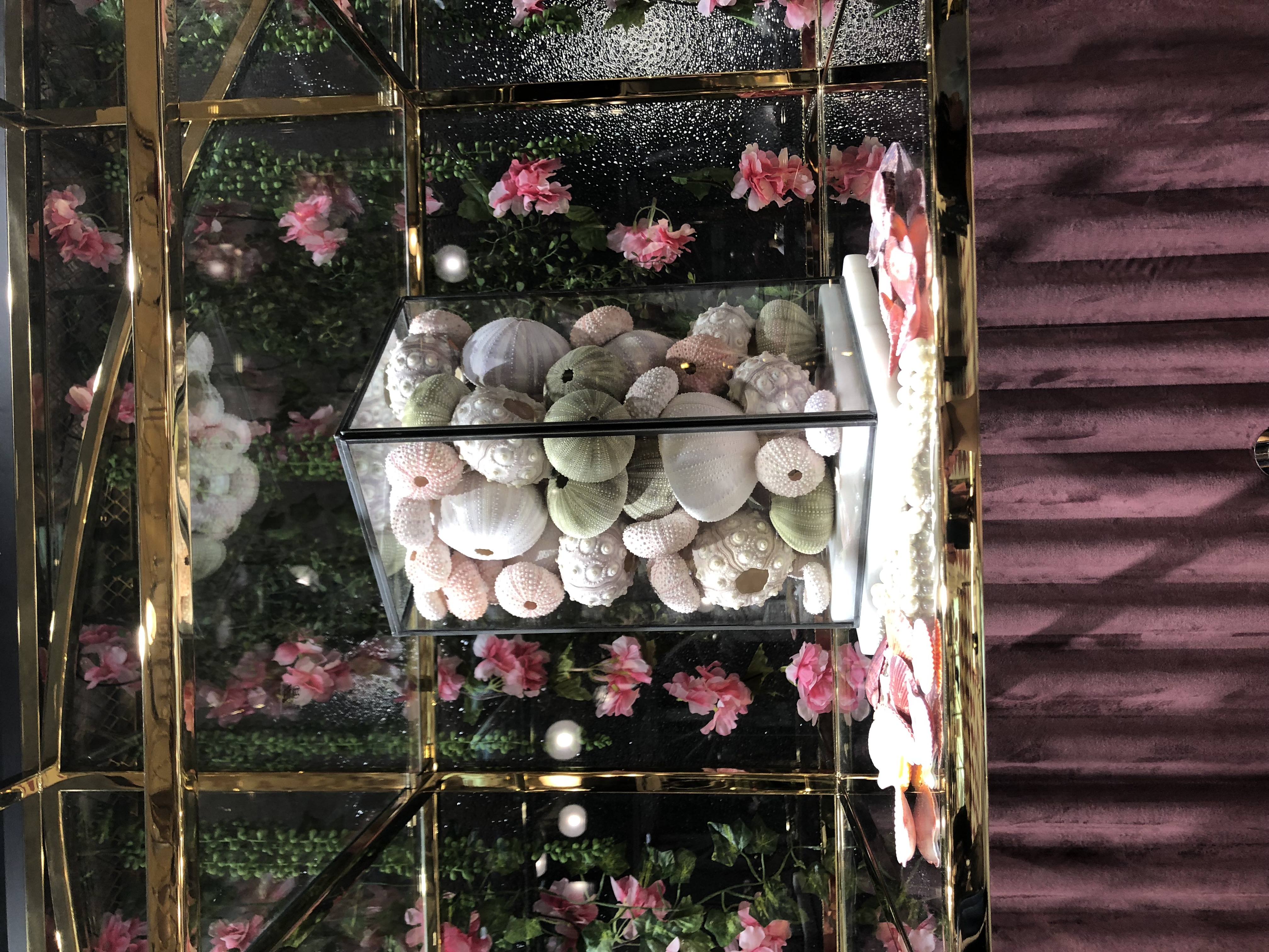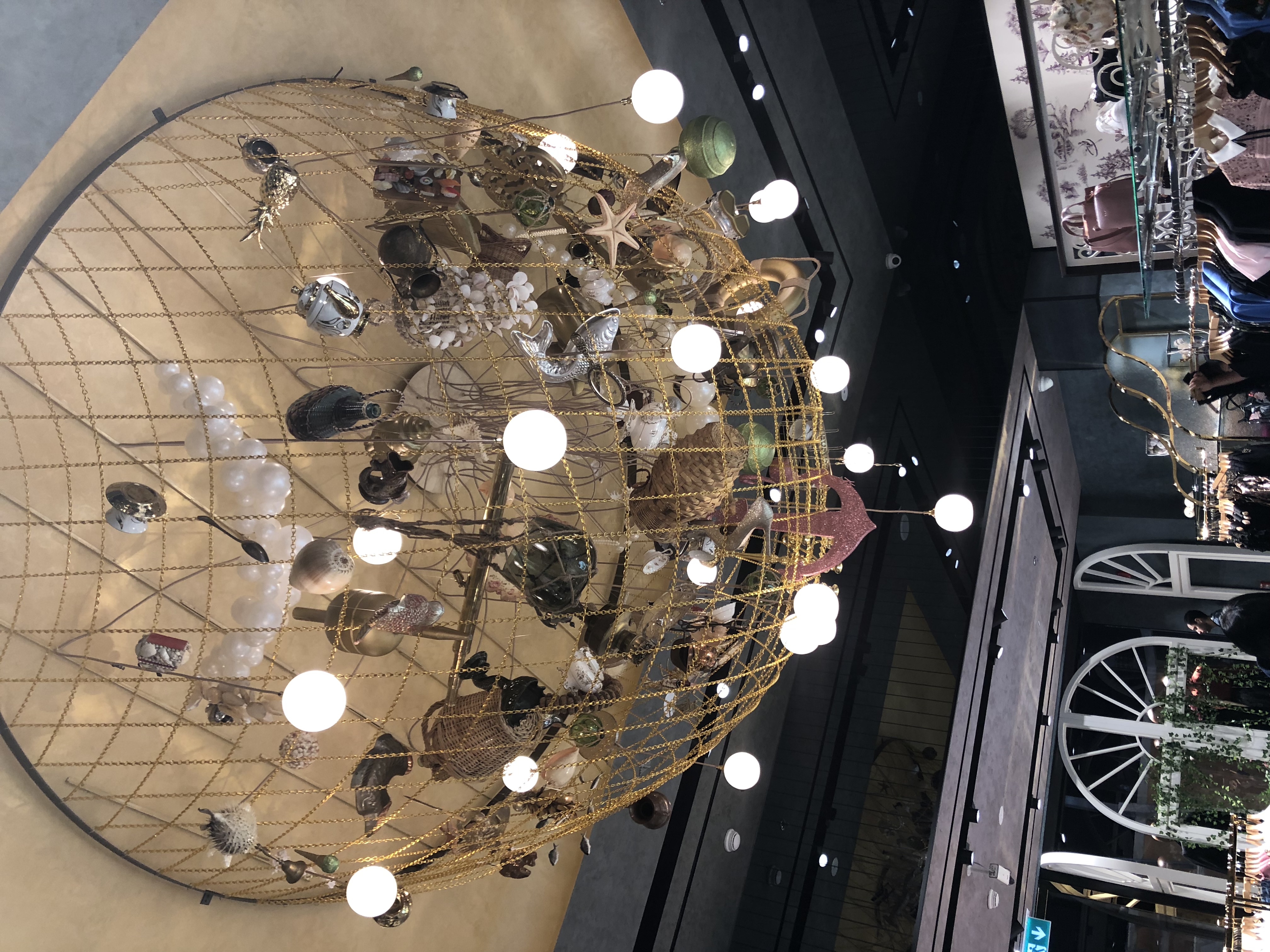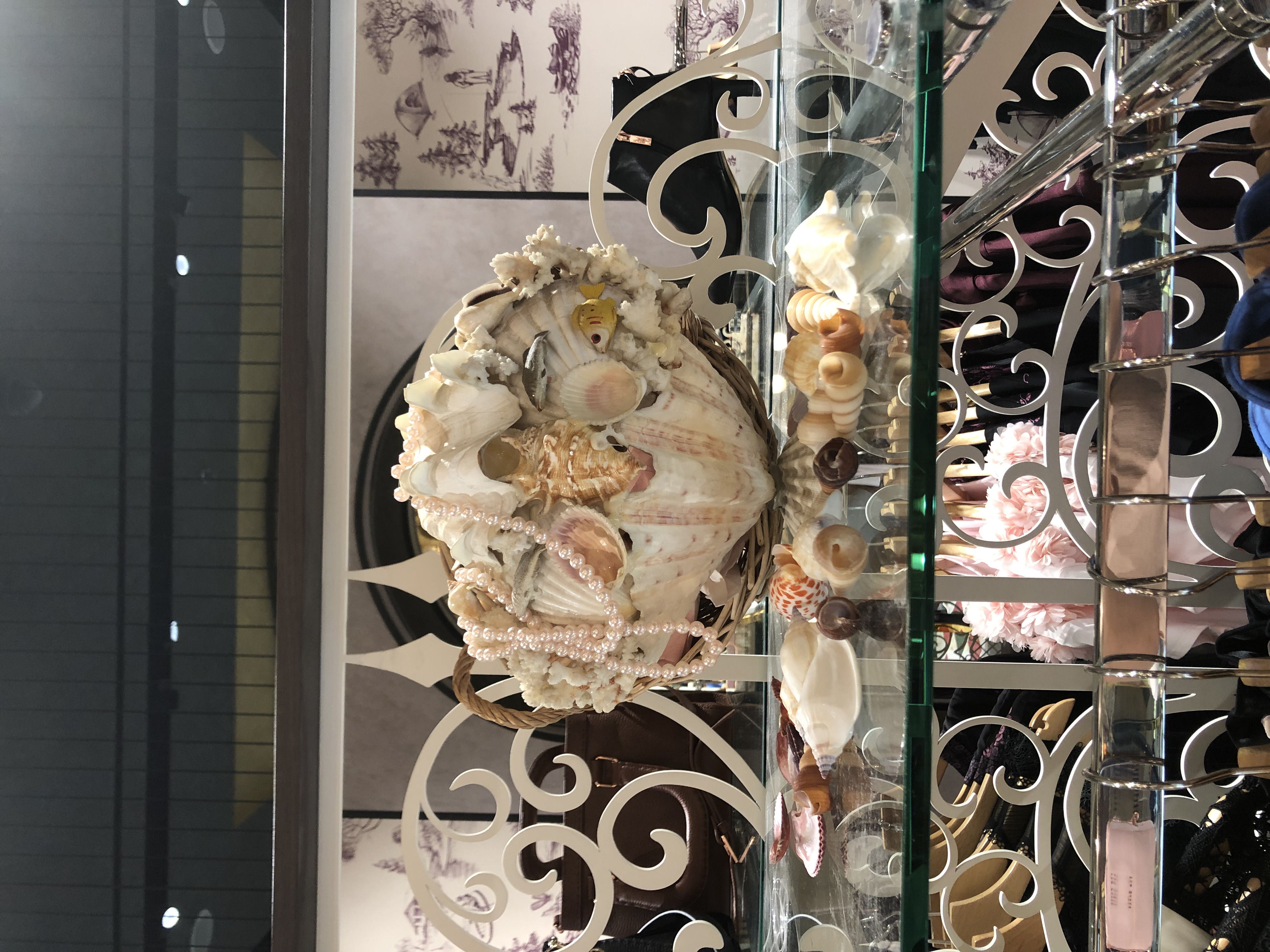 Hello Flamingo worked on an exciting collaboration with the Ted Baker Creative Design team, for the opening of their new womenswear store in the City Walk Mall, Dubai. The store design was rich and opulent, and the theme for the VM and props was based on deep sea pearl diving. The store was designed by the Ted Baker Store Design team, and they worked with Hello Flamingo and a number of external suppliers to manufacture the shop fit. Hello Flamingo were briefed to manufacture a 3M diameter gold net chandelier, filled with gold treasures - pearls, lobsters, candelabras, ice creams and many wonderful, carefully sourced vintage items. Items were sprayed and glittered to add a touch of glitz Glass display cases were filled with shells and dried flowers, and were located throughout the store. The cash desk area featured a botanical garden which we filled with flowers, shells, statues, glittered crabs and stilettoes, to create a magical sea bed. (TESTIMONIAL FROM CLIENT) Right from the start Hello Flamingo were a dream to work with. We had a clear vision from the outset which we knew they could expand and bring to life. From their initial concept mood boards, design development to on-site installation their attention to detail was impeccable! Both the retail team & the design team are so pleased with the end result. All the customers were falling over themselves to take photos of the installations throughout the store creating those Insta worthy pics. Their ability to express our concept of ‘Ted’s Underwater Pearl Garden’ was quite the catch with our customers!