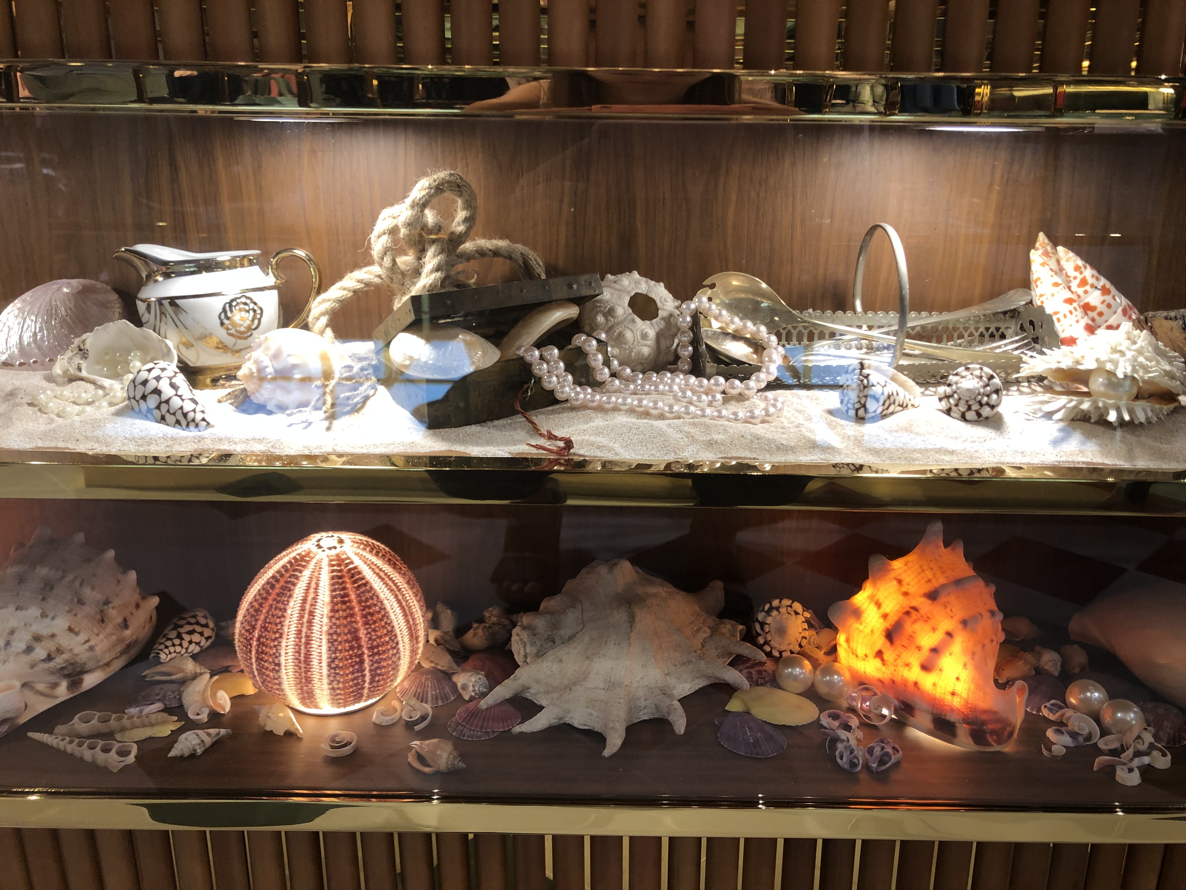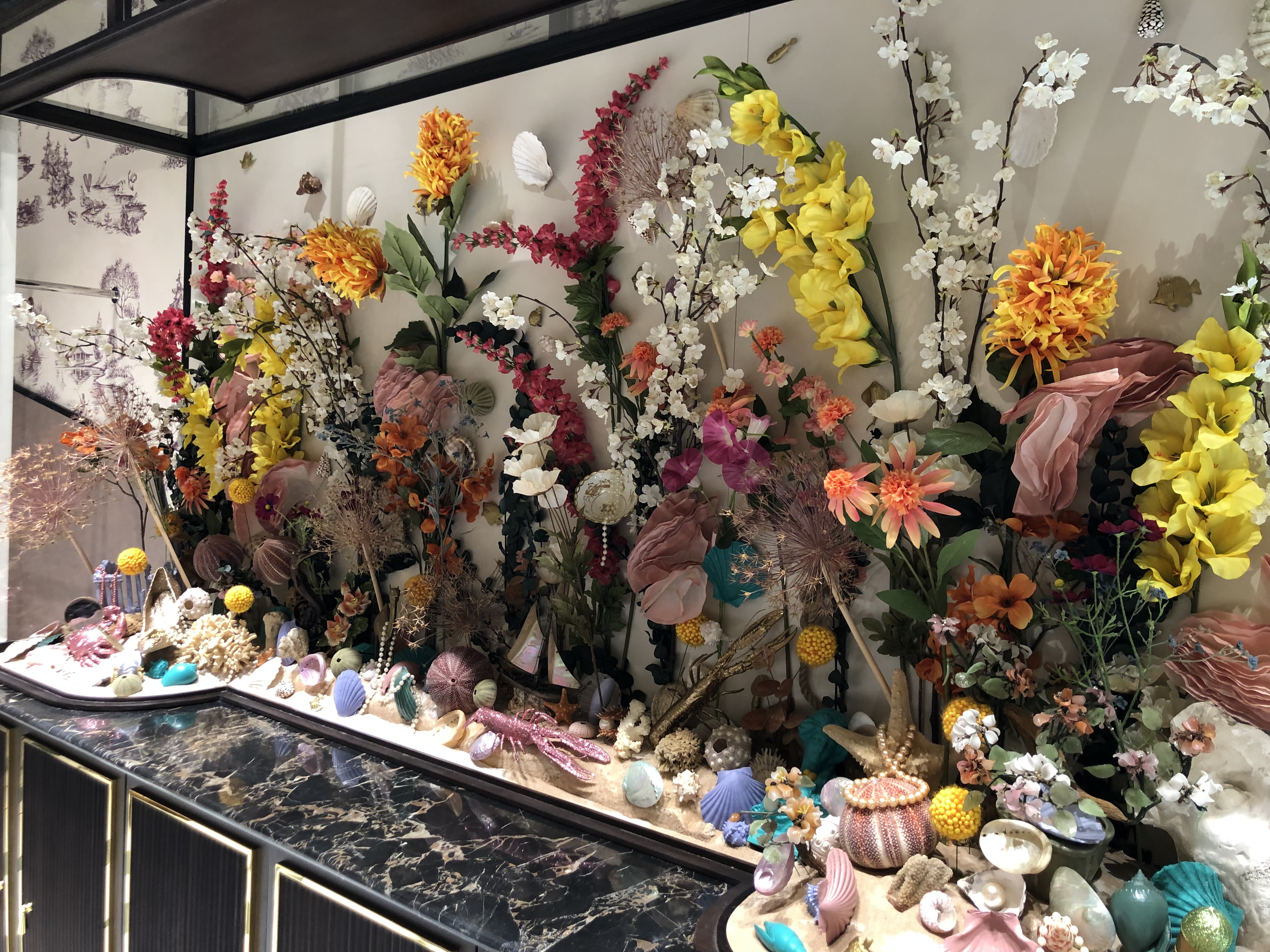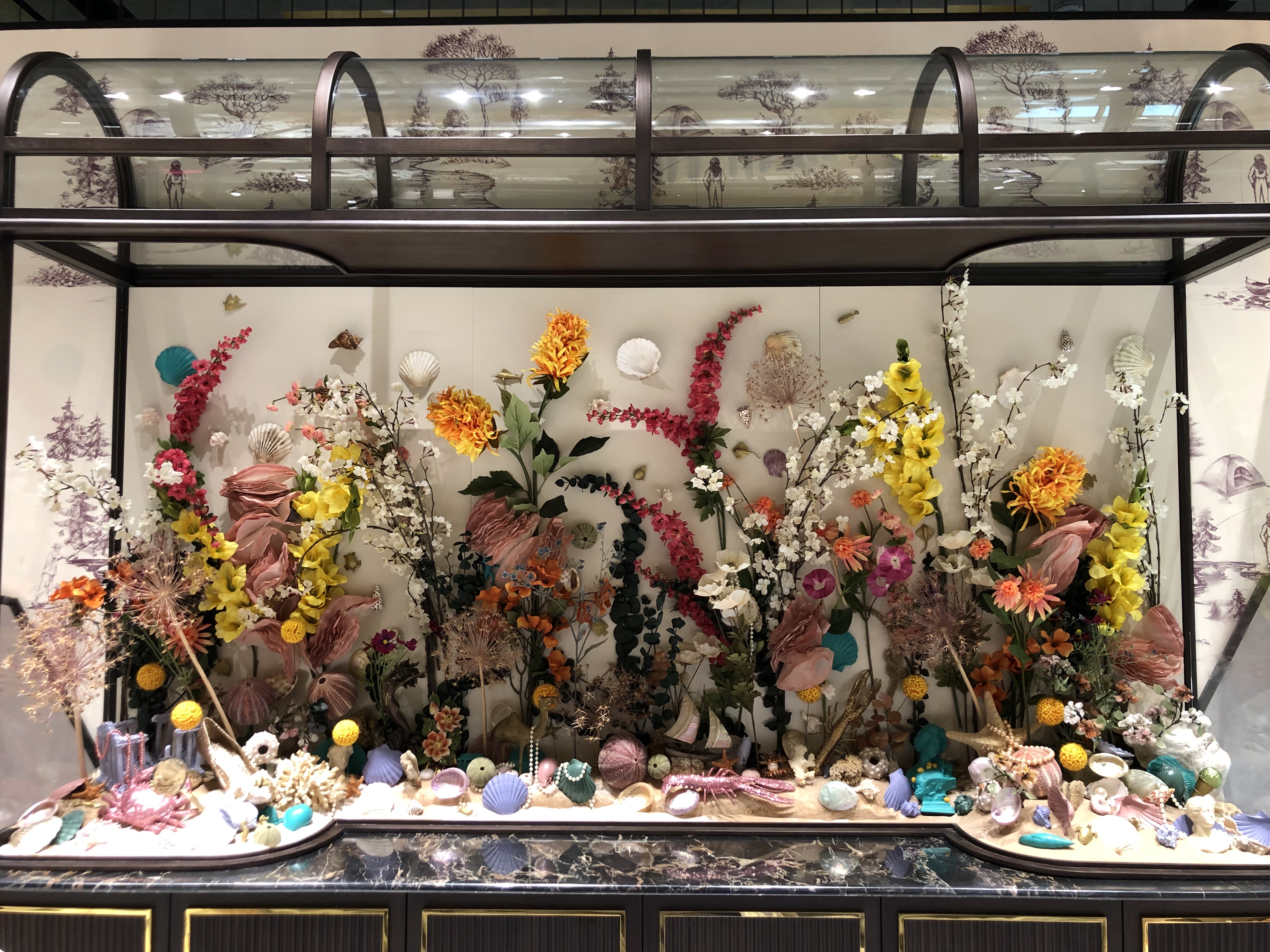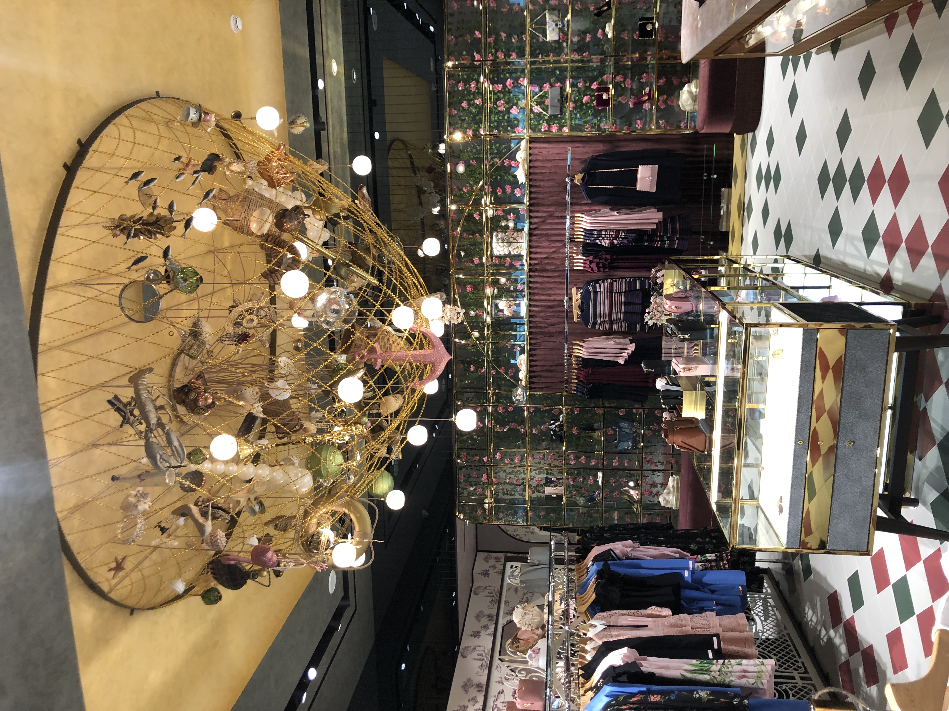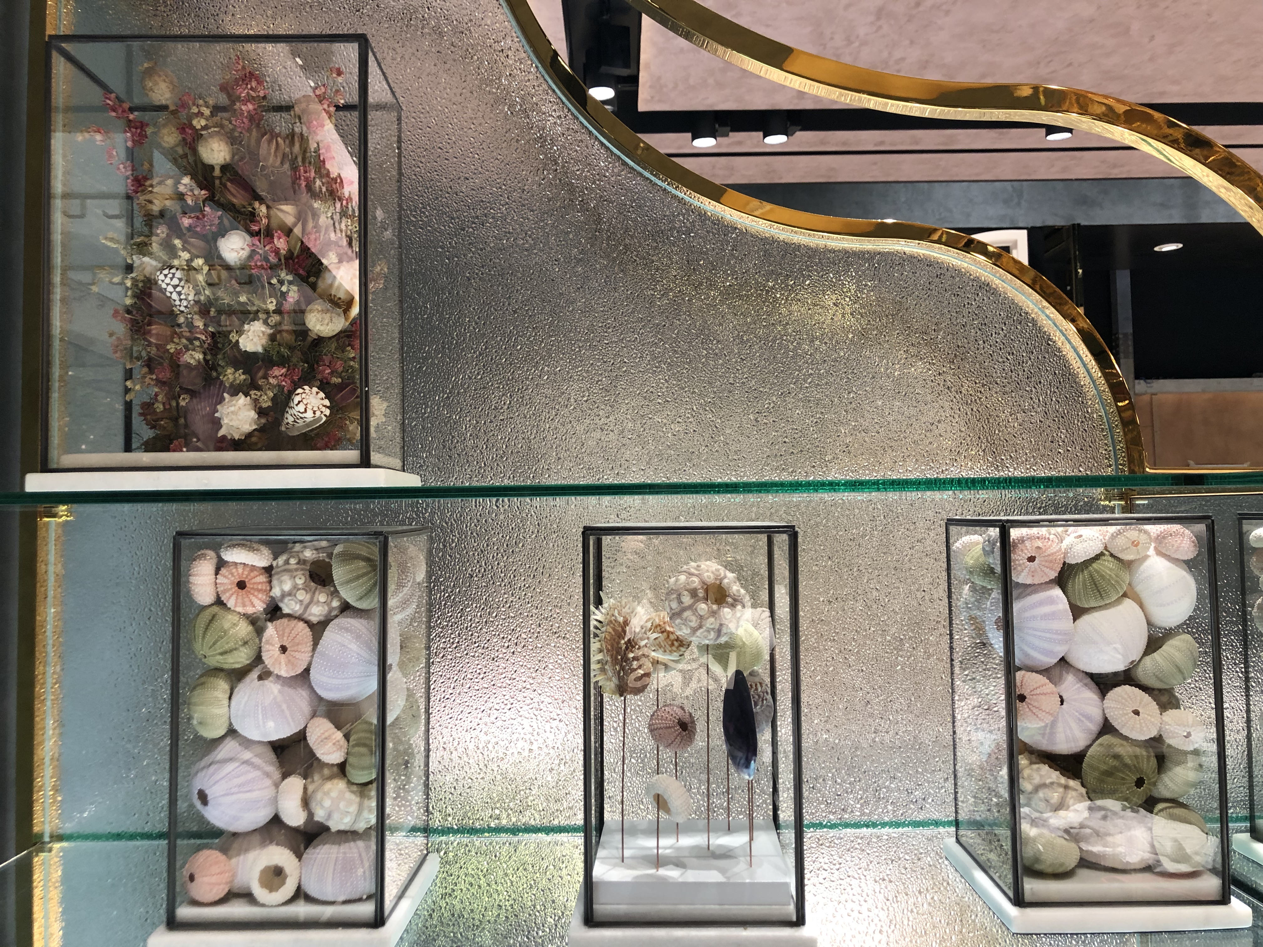 Hello Flamingo worked on an exciting collaboration with the Ted Baker Creative Design team, for the opening of their new womenswear store in the City Walk Mall, Dubai. The store design was rich and opulent, and the theme for the VM and props was based on deep sea pearl diving. The store was designed by the Ted Baker Store Design team, and they worked with Hello Flamingo and a number of external suppliers to manufacture the shop fit. Hello Flamingo were briefed to manufacture a 3M diameter gold net chandelier, filled with gold treasures - pearls, lobsters, candelabras, ice creams and many wonderful, carefully sourced vintage items. Items were sprayed and glittered to add a touch of glitz Glass display cases were filled with shells and dried flowers, and were located throughout the store. The cash desk area featured a botanical garden which we filled with flowers, shells, statues, glittered crabs and stilettoes, to create a magical sea bed. (TESTIMONIAL FROM CLIENT) Right from the start Hello Flamingo were a dream to work with. We had a clear vision from the outset which we knew they could expand and bring to life. From their initial concept mood boards, design development to on-site installation their attention to detail was impeccable! Both the retail team & the design team are so pleased with the end result. All the customers were falling over themselves to take photos of the installations throughout the store creating those Insta worthy pics. Their ability to express our concept of ‘Ted’s Underwater Pearl Garden’ was quite the catch with our customers!