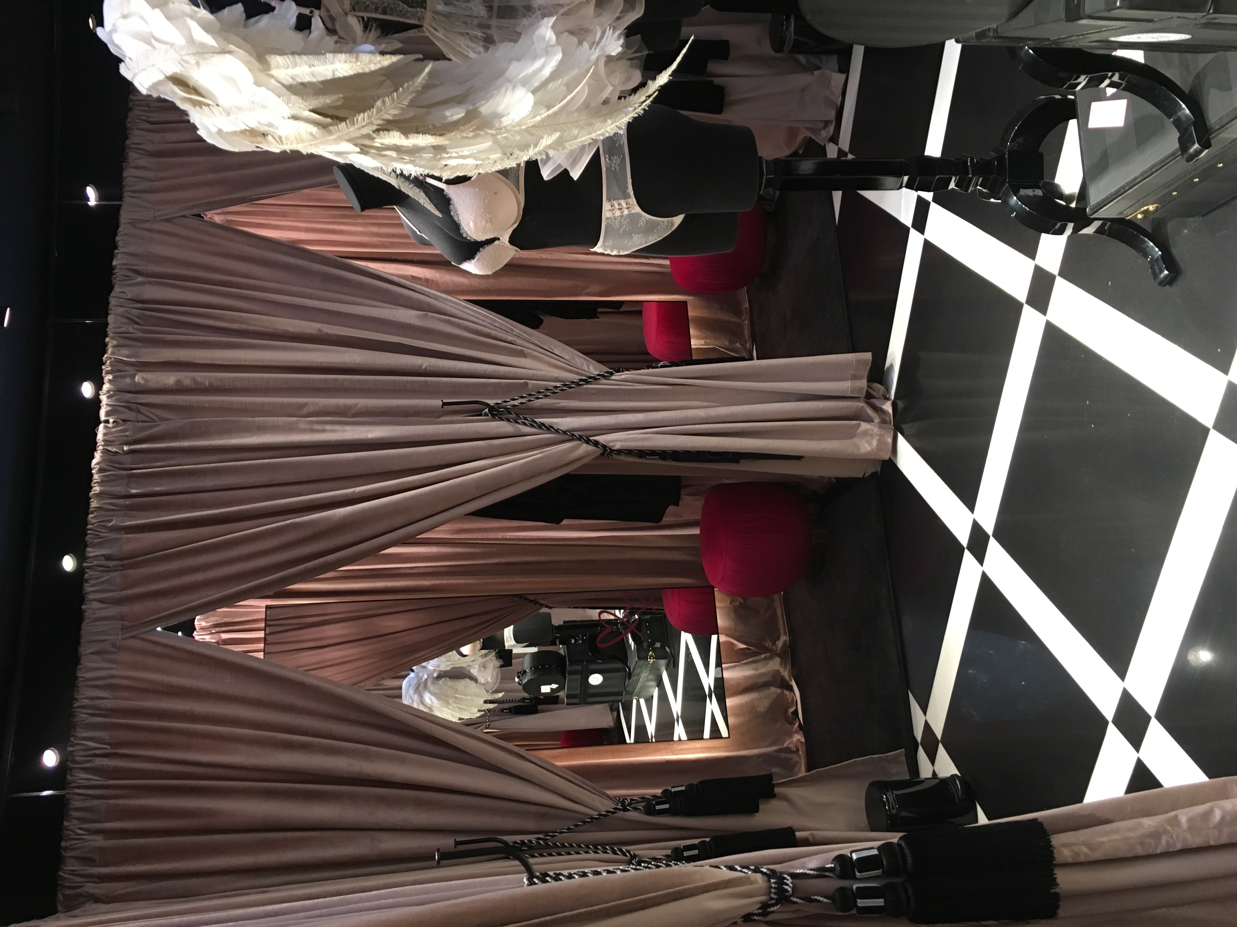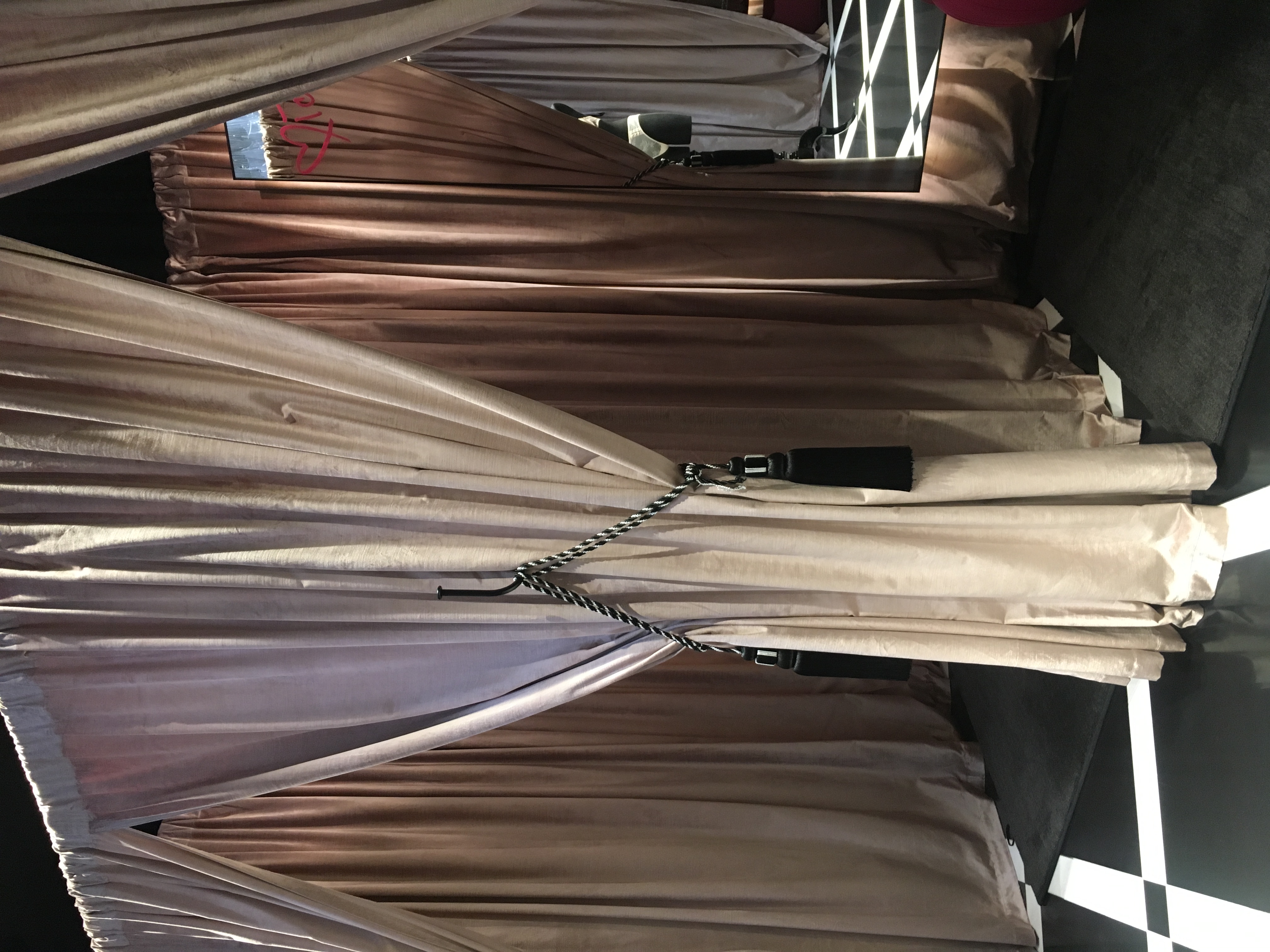 Around the entire perimeter of the room, front, back and in-between were draped using a readymade soft, dusky pink, velvet-feel curtain - which hung from floor to ceiling, giving a truly sumptuous feel.