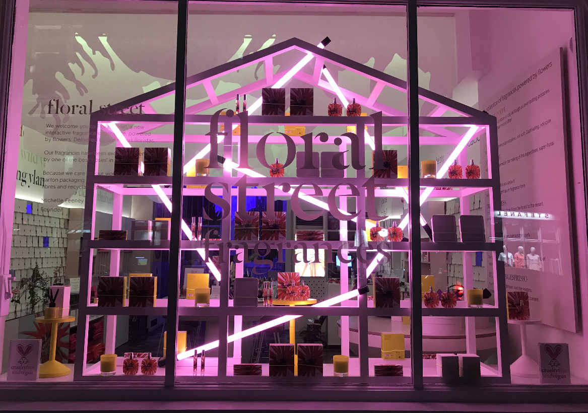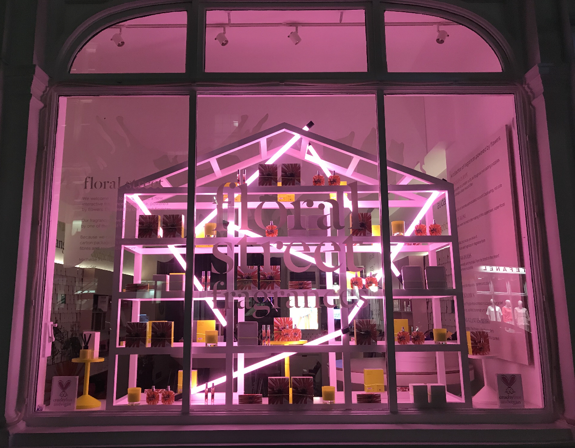 Hello Flamingo was approached by ‘Floral Street’ to produce a window display for the launch of their new fragrance ‘Electric Rhubarb’.