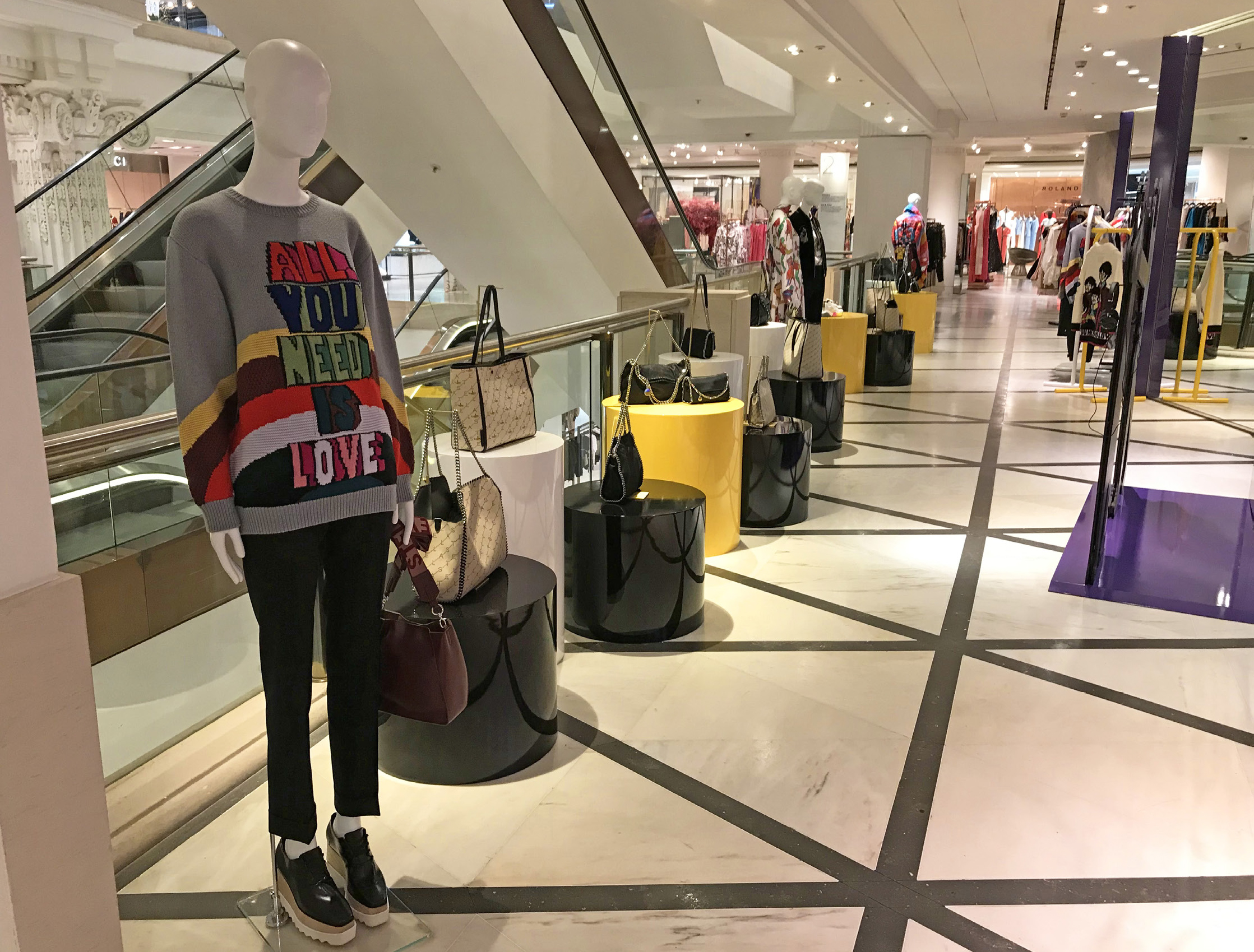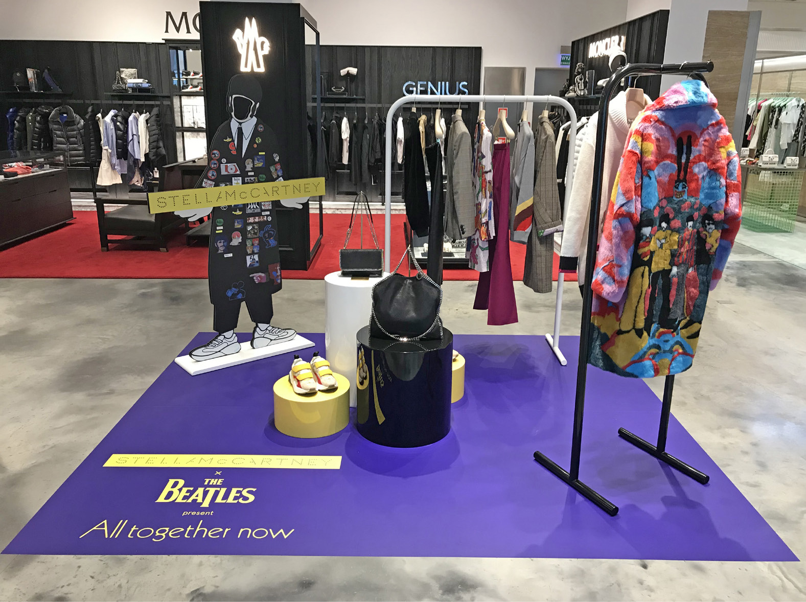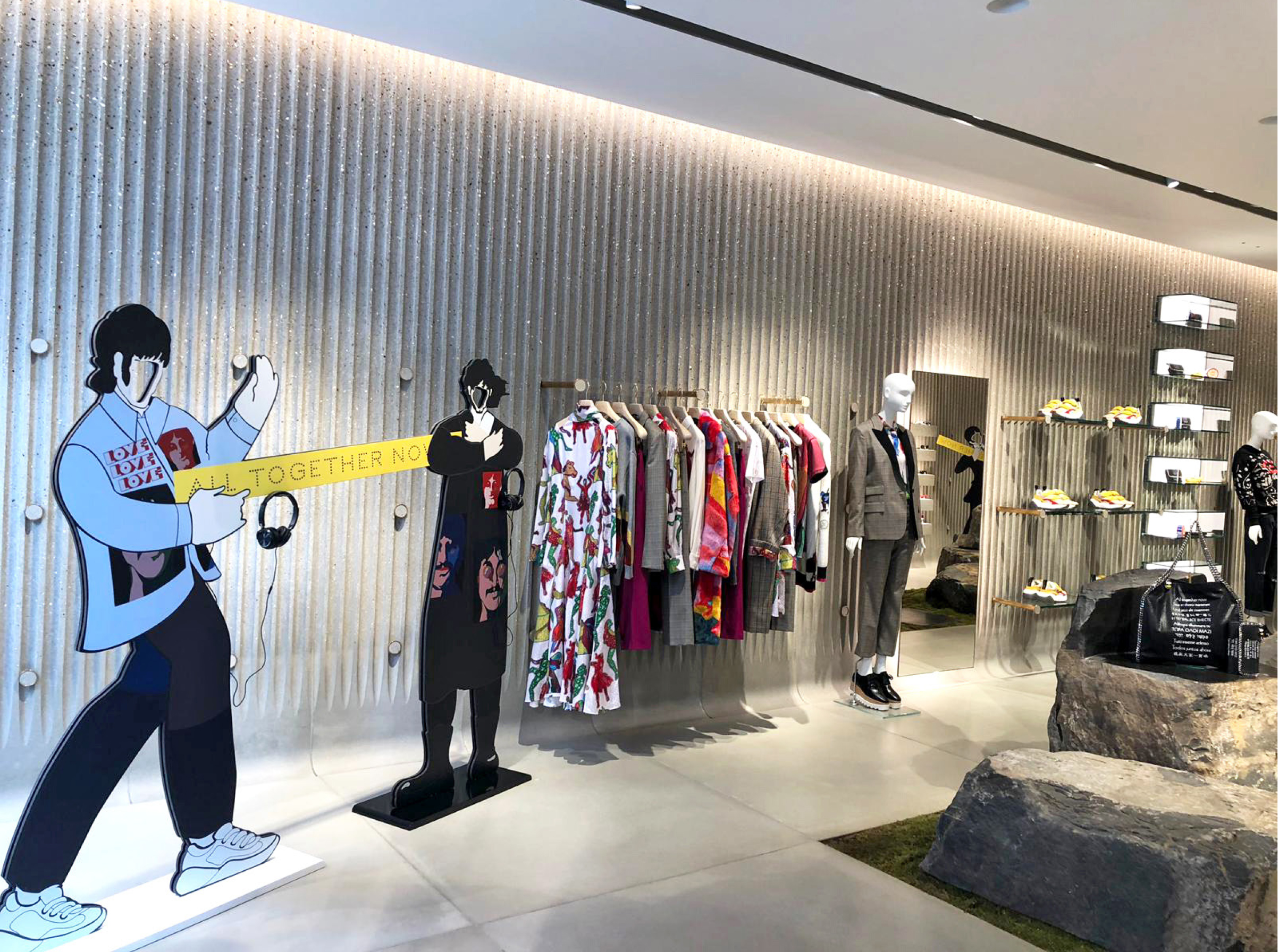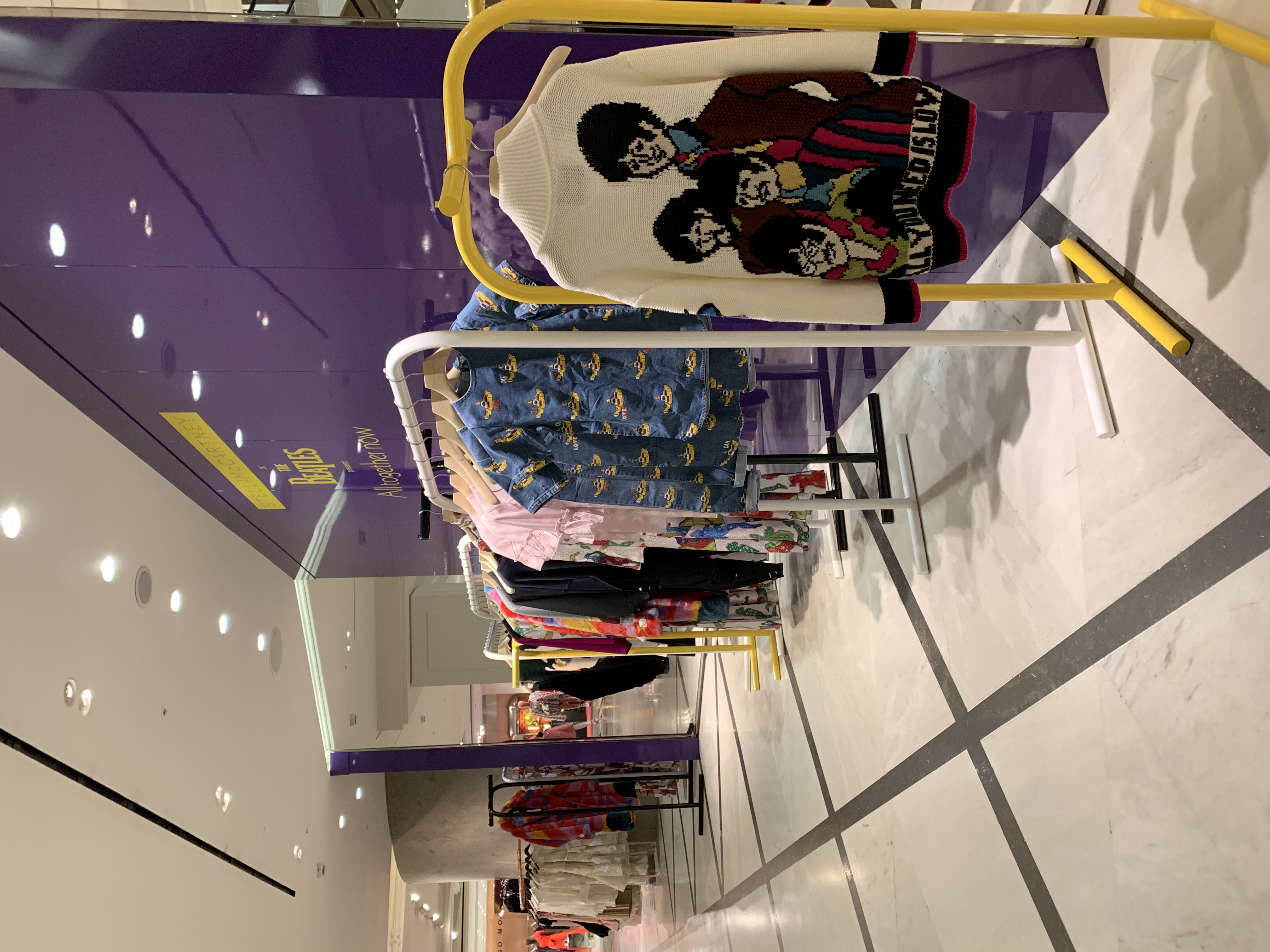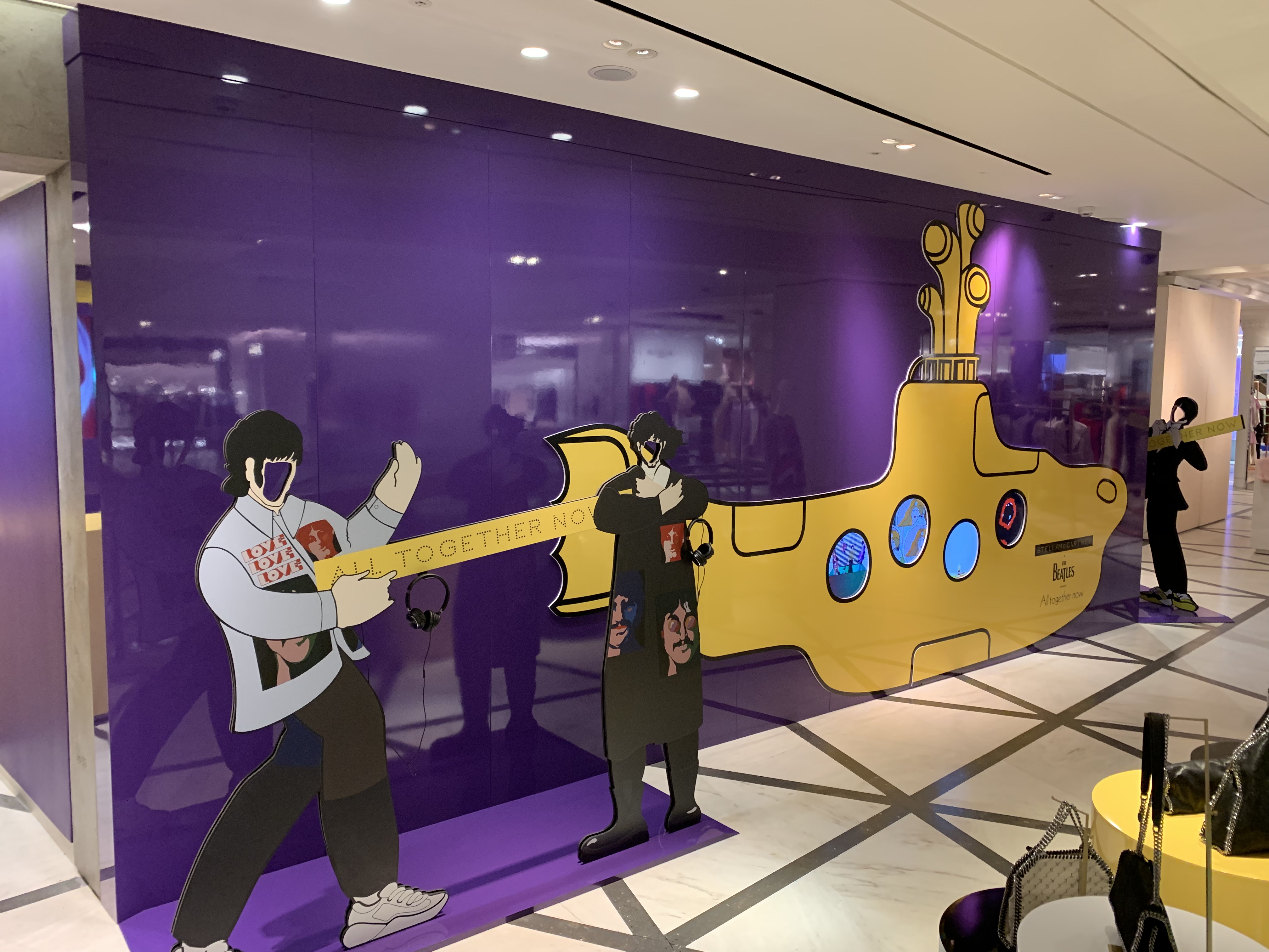 Stella McCartney Selfridges popup fashion shop display store fit Beatles Yellow Submarine 50th anniversary All Together Now print colour pop visual merchandising production bespoke retail design.