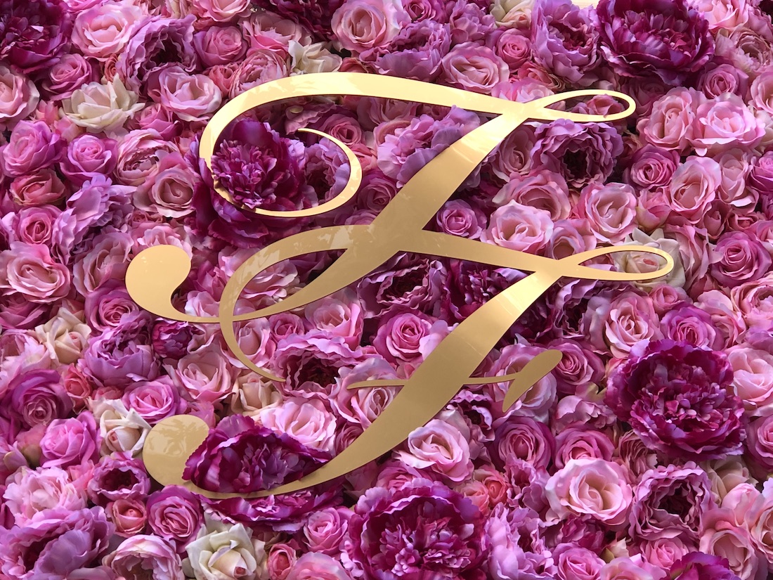 In addition we also manufactured the acrylic beauty product bottles and filled them with beautiful floral roses and peonies, all topped off with vinyl TF branding.