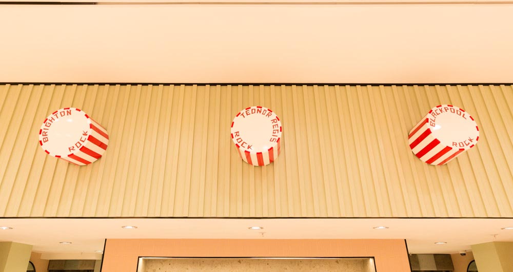These were made with poly, acrylic and sprayed to a high-quality finish to recreate the glossy candy texture. We also produced artwork to include typical ted humour by making teds’ very own, ‘Baker violets’ and ‘Tednor rock.’