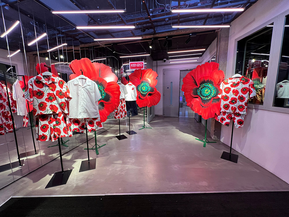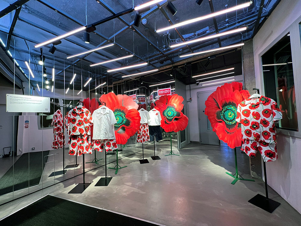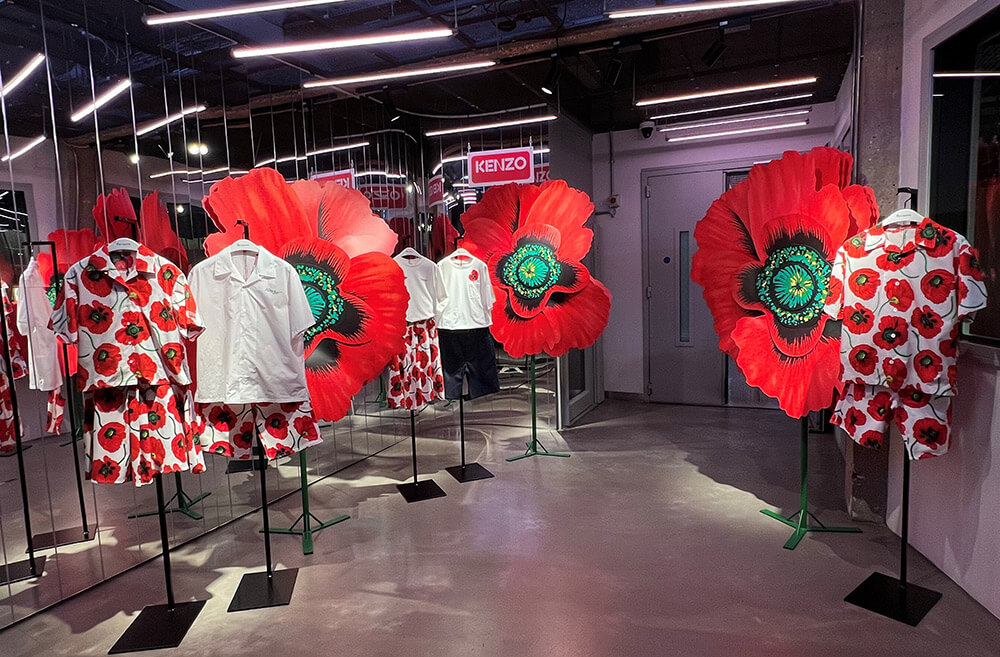 This spring Browns East asked us to manufacture oversized flower props for Kenzo’s in store Pop-Up In collaboration with Kenzo, Browns East asked us to help create elements to transform their Pop-Up space with Konzos’ Iconic Poppy Flowers. These were designed by the Browns team who entrusted us to manufacture and install the scenic pop-up. The flower print was produced onto card, assembled in house by our team. We had the flower stand manufactured and powder coated to hold the floral top which added theatre to the SS22 poppy collection. This was a lovely project to work on and are pleased with the outcome.