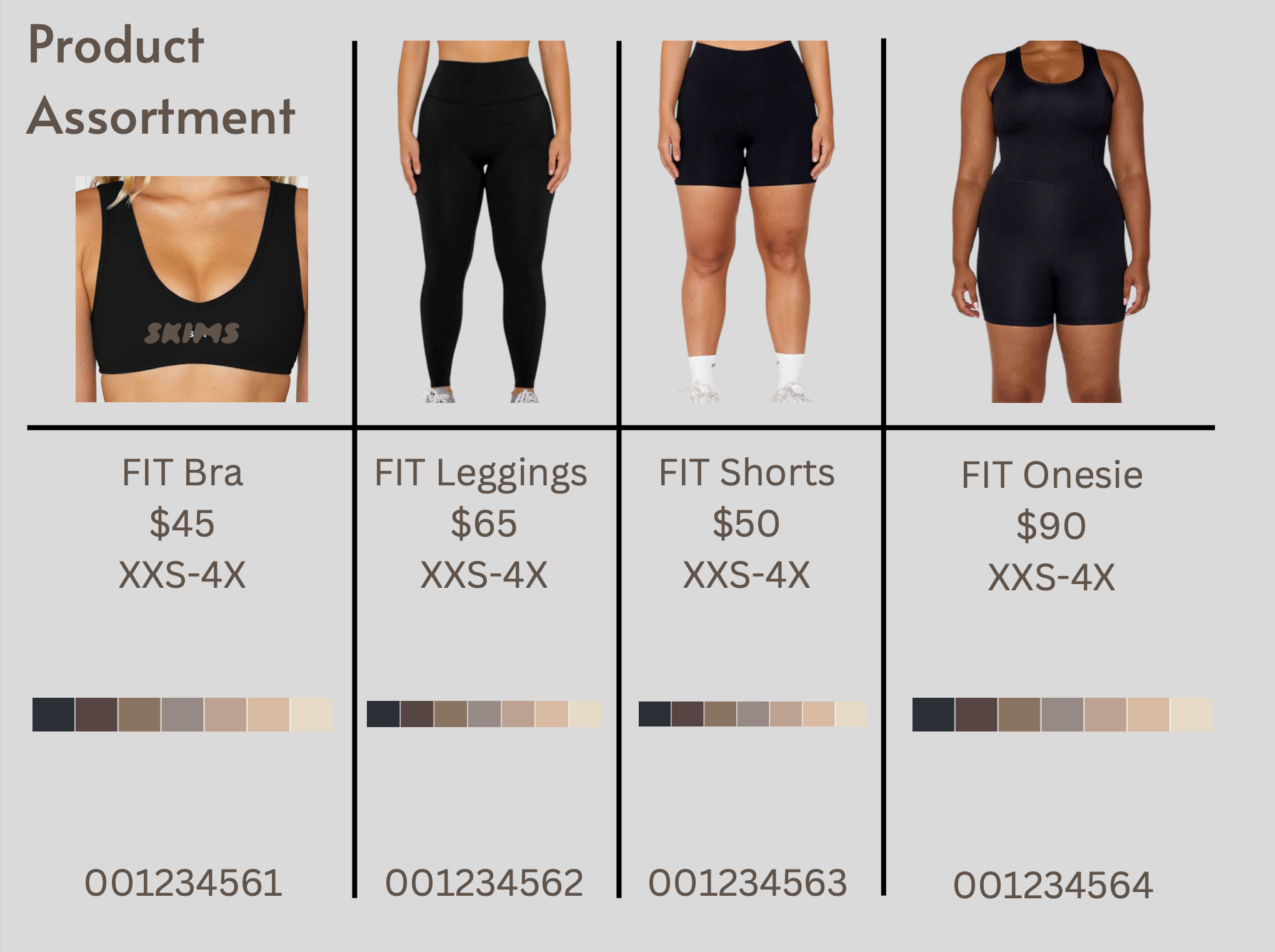 Product design and merchandising campaign for a hypothetical fitness collection created by SKIMS.