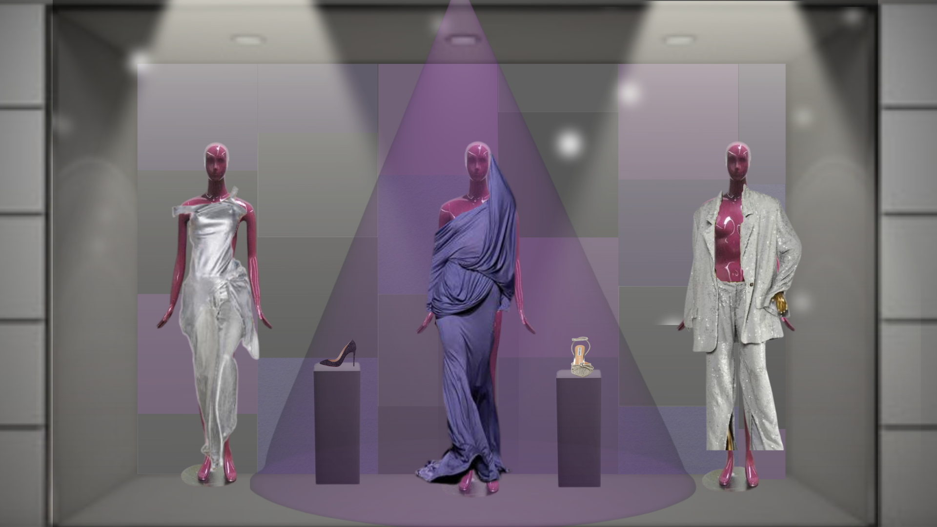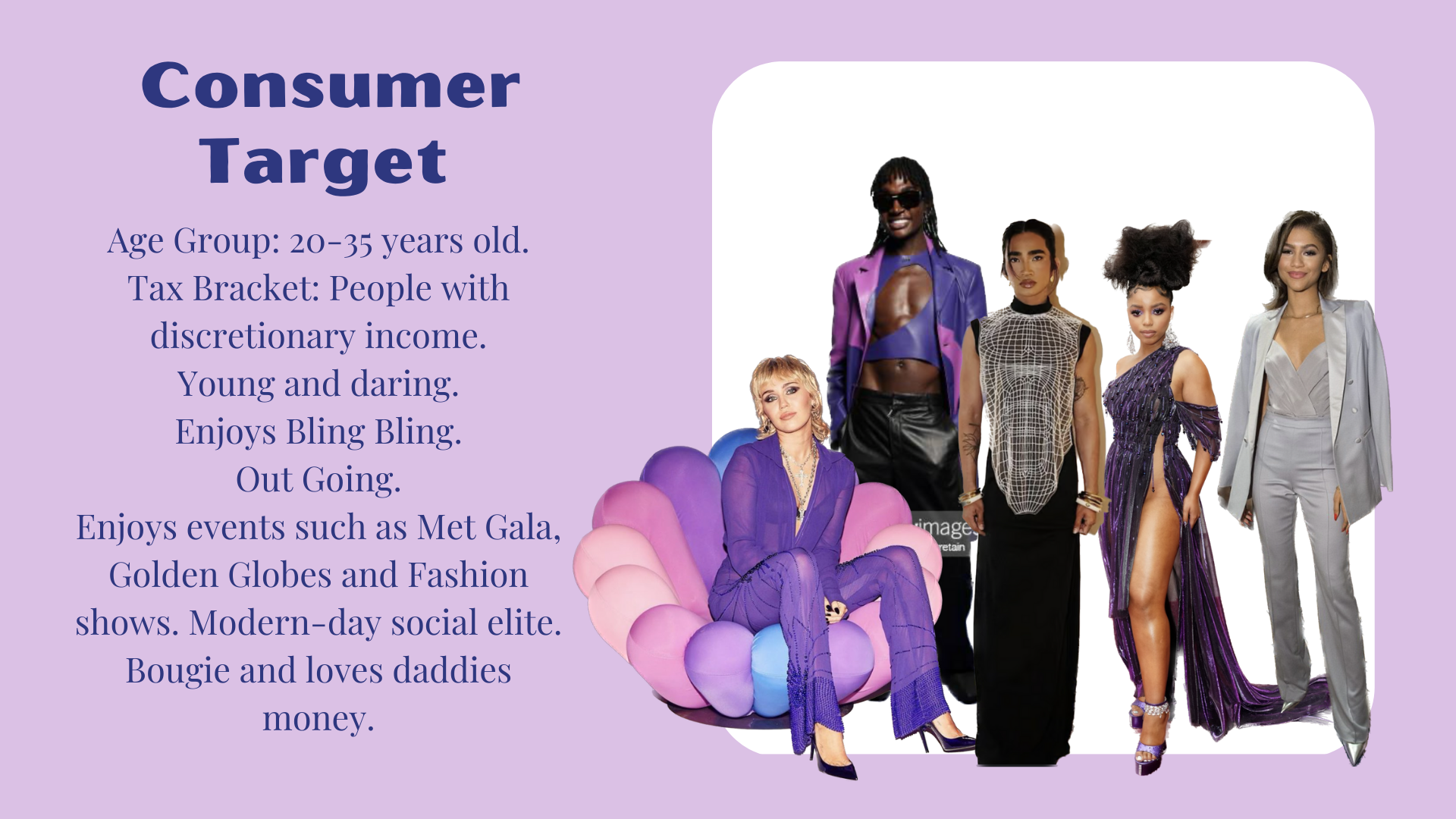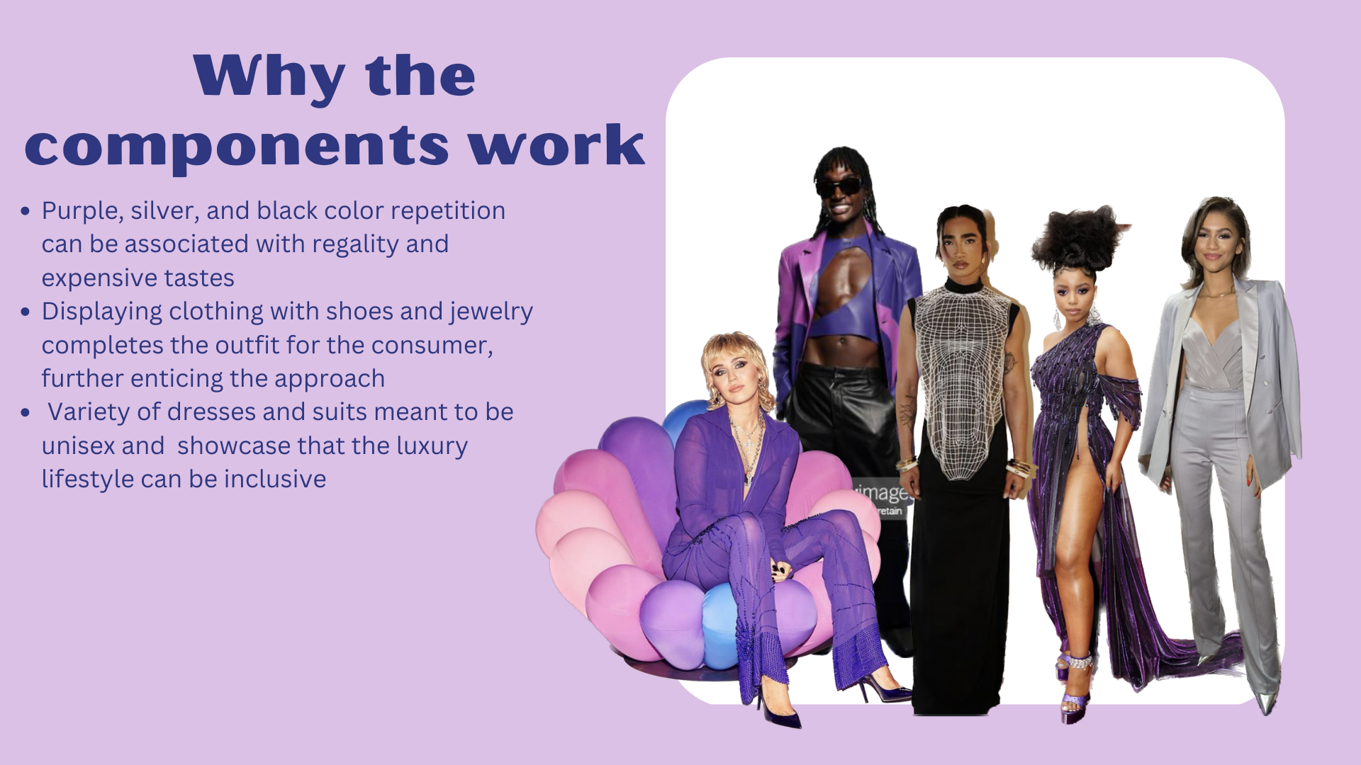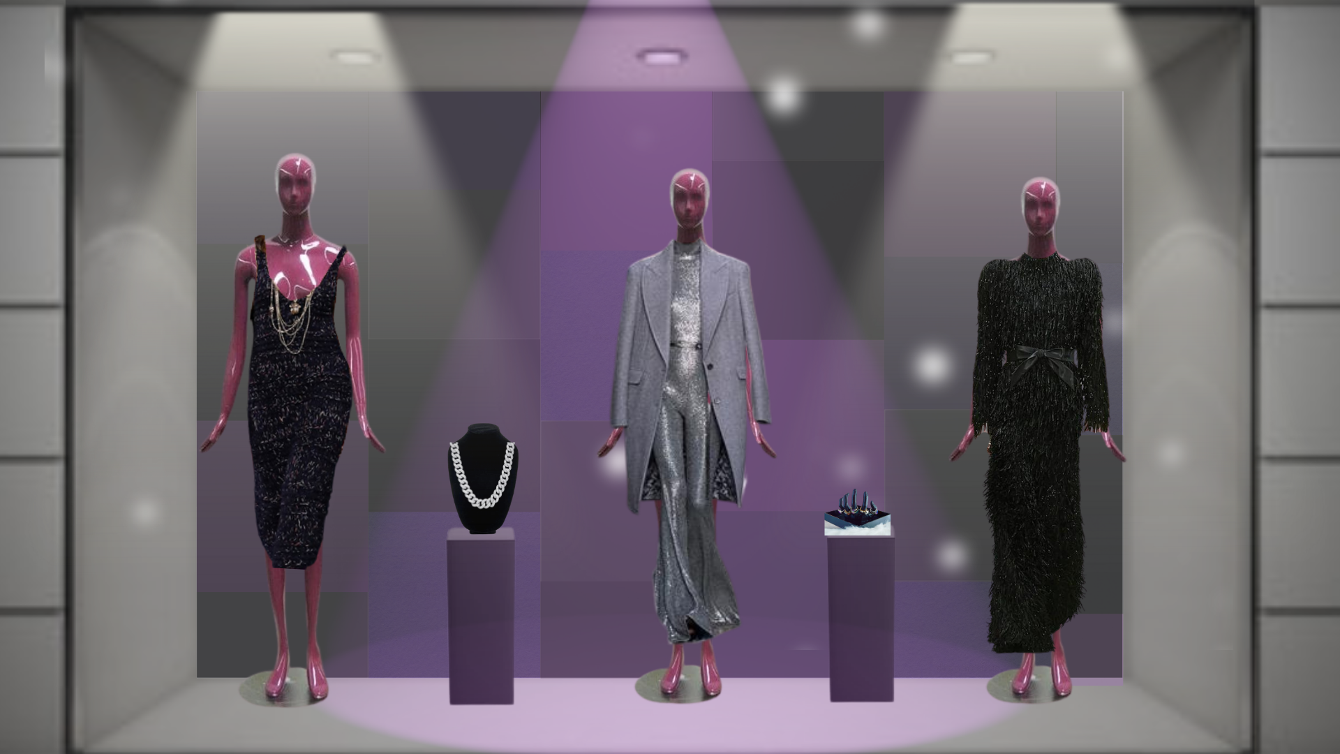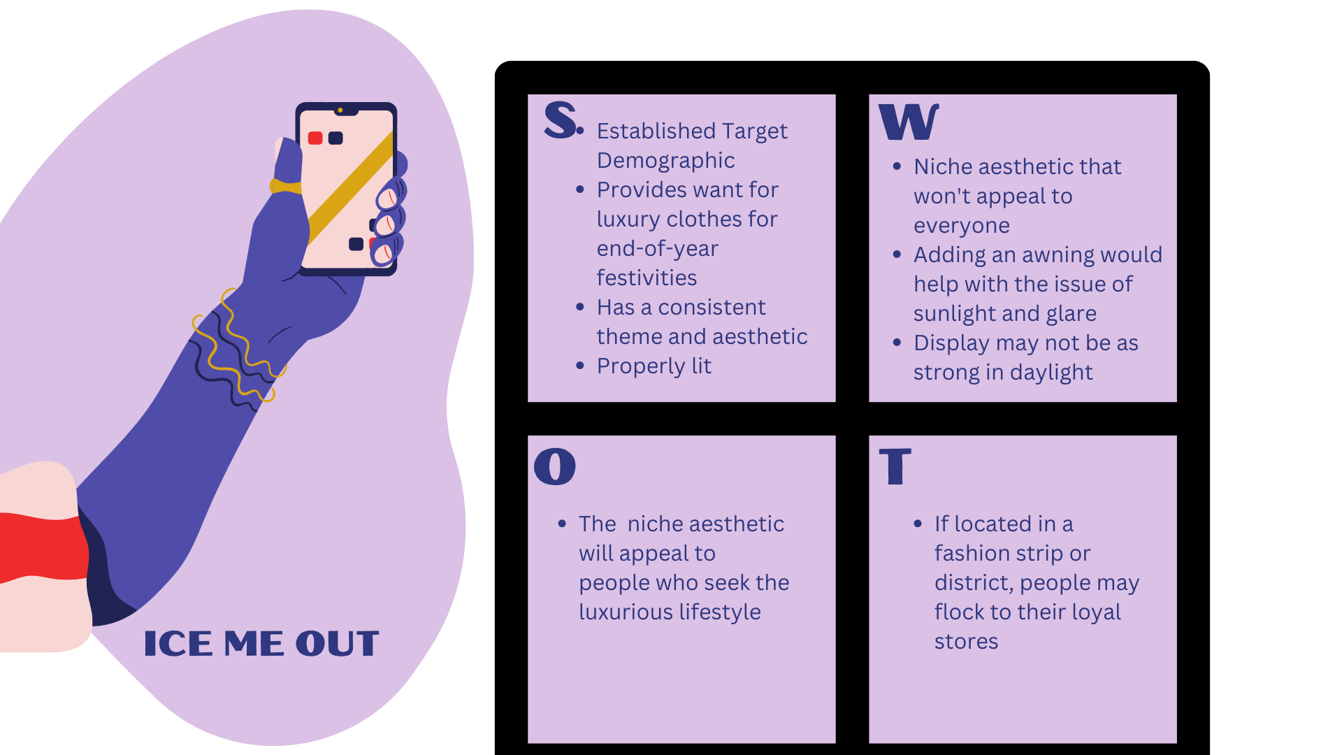 Created a new collection and window display in a 4 person team inspired by Versace 2023 collection. The "Ice Me Out" collection brings on luxury and nightlife, in a city like Las Vegas. Along with two window displays, designed to be an arcade window, we included a SWOT analysis and consumer target a;one with some influencers we believed would promote the collection.