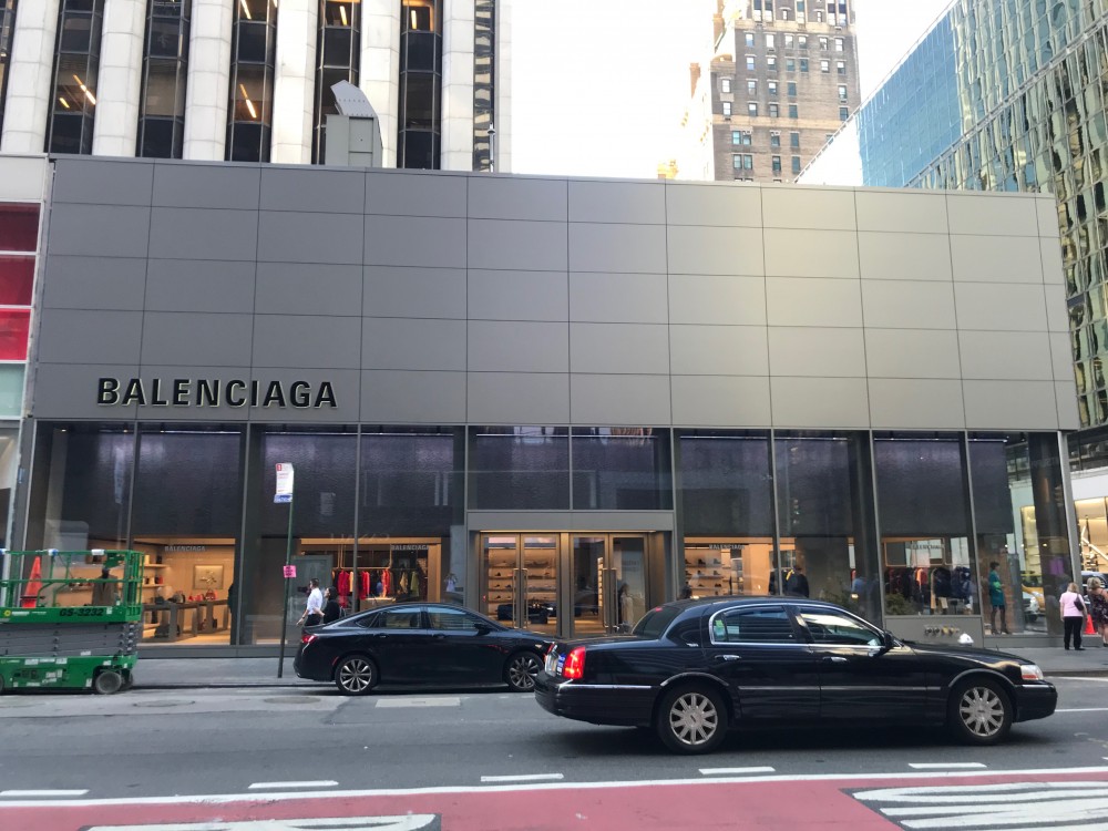 southwest corner of 59th Street in Manhattan, represents creative director Demna Gvasalia‘s urban retail concept, which has an industrial spirit with touches of metal, concrete, ...Balenciaga‘s 4,000-square-foot flagship at 620 Madison Avenue, at the