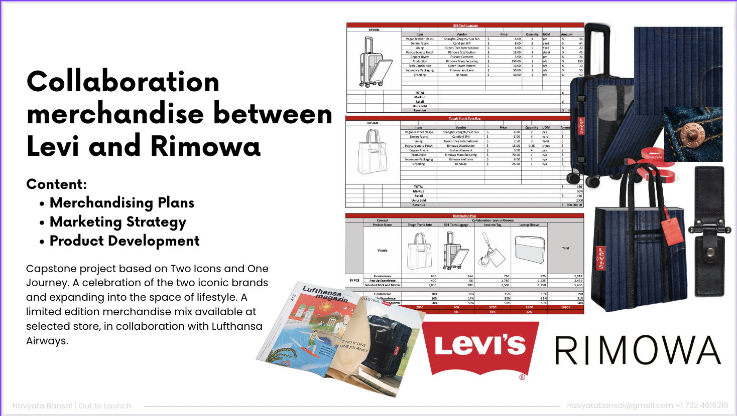 A collaboration limited edition merchandise for Levi Strauss and Rimowa. A way to tap into a new product space and experiment with a new market. I created a marketing campaign with Lufthansa exclusive merchandise, and merchandising plan to reach the number goals.