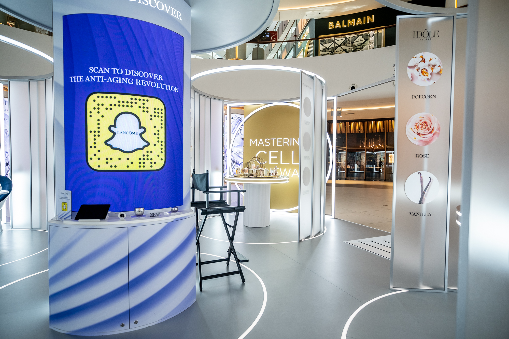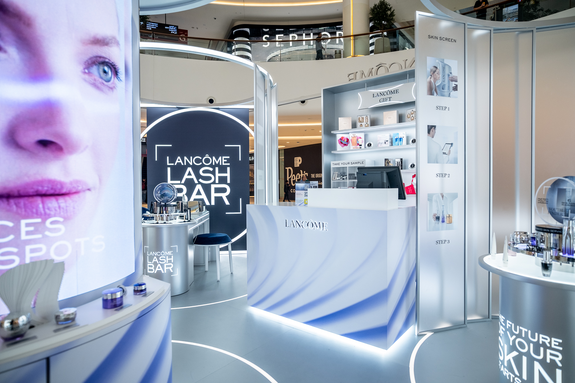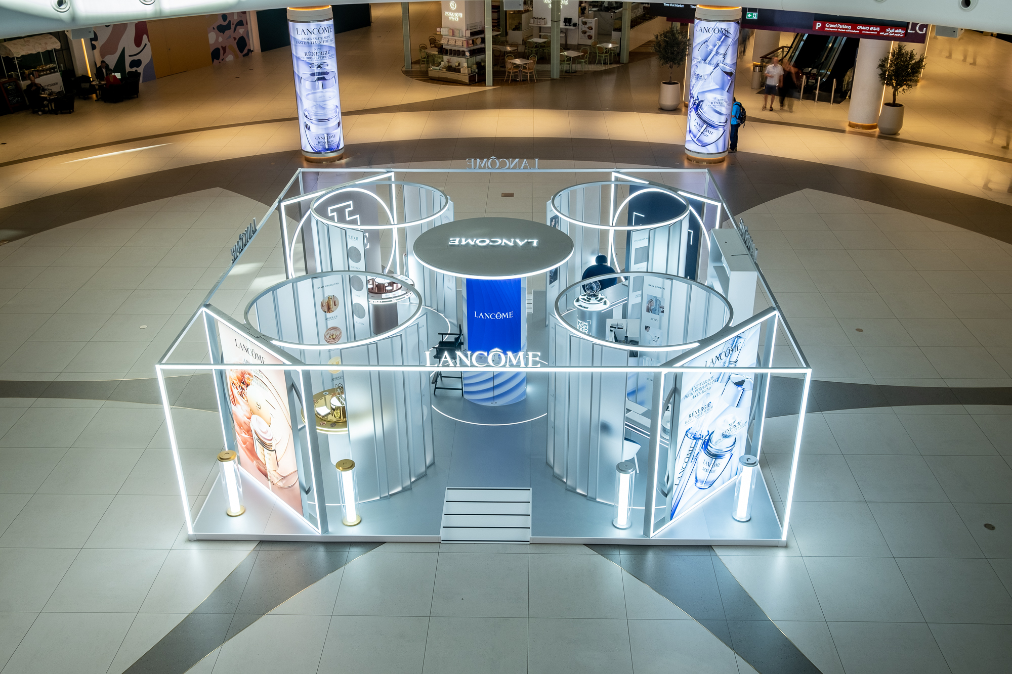 Lancôme Beauty Tech Podium Pop Up in Dubai Mall, production and installation by Abra