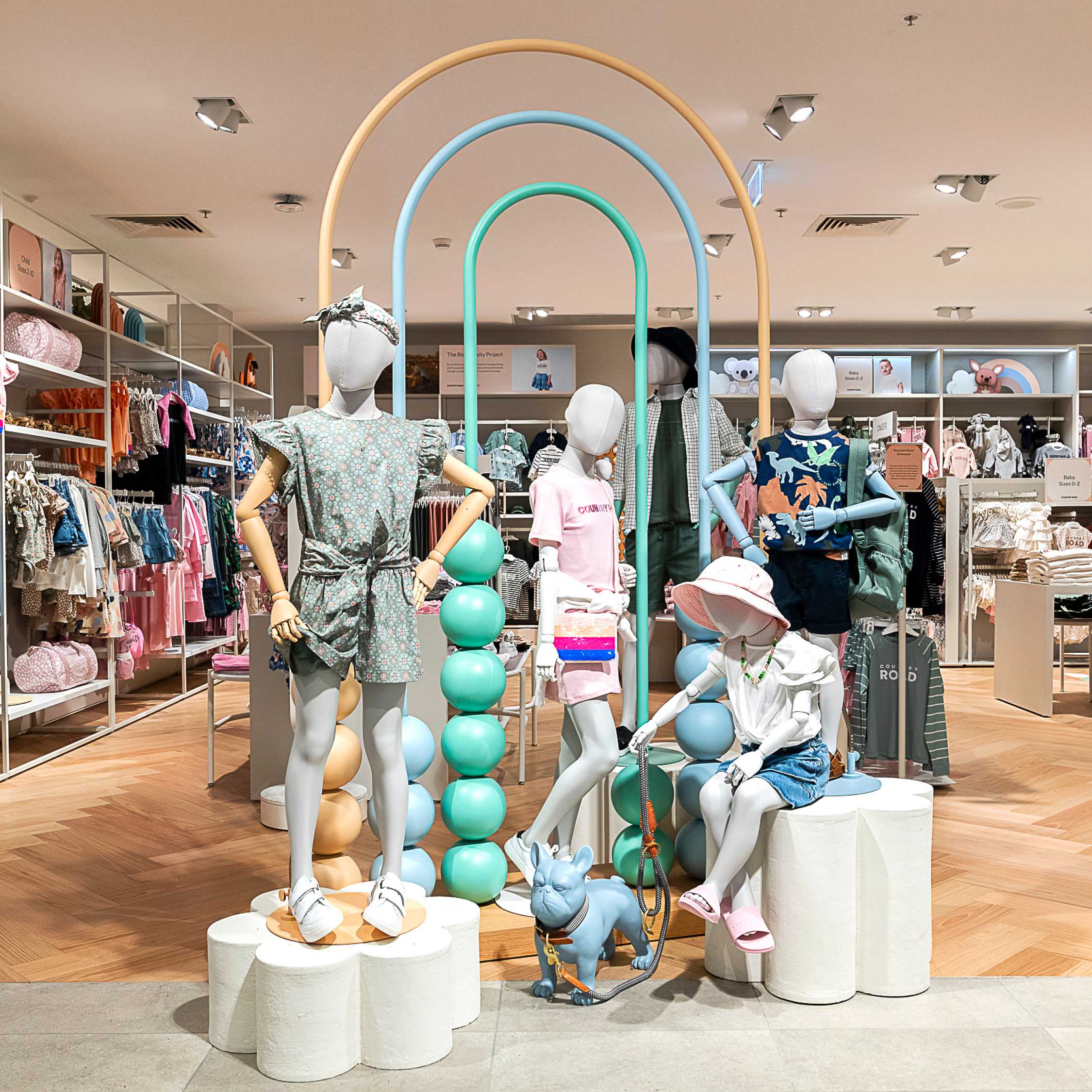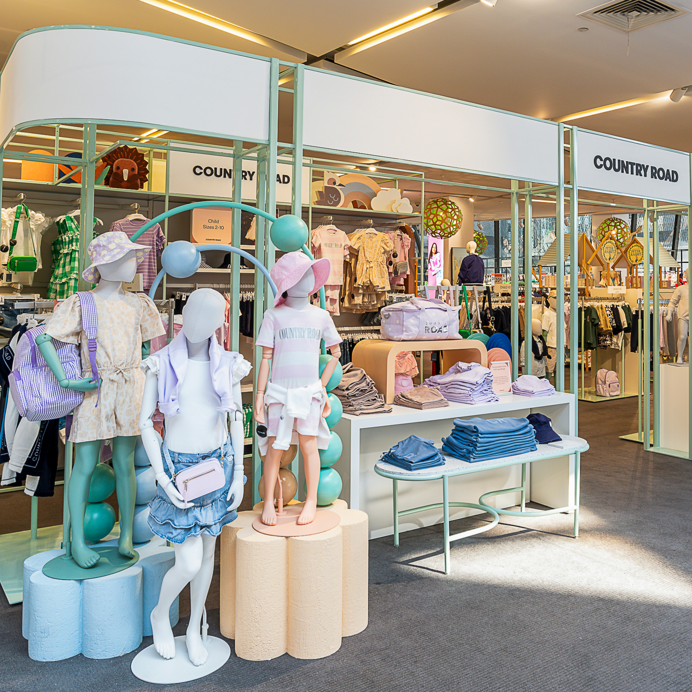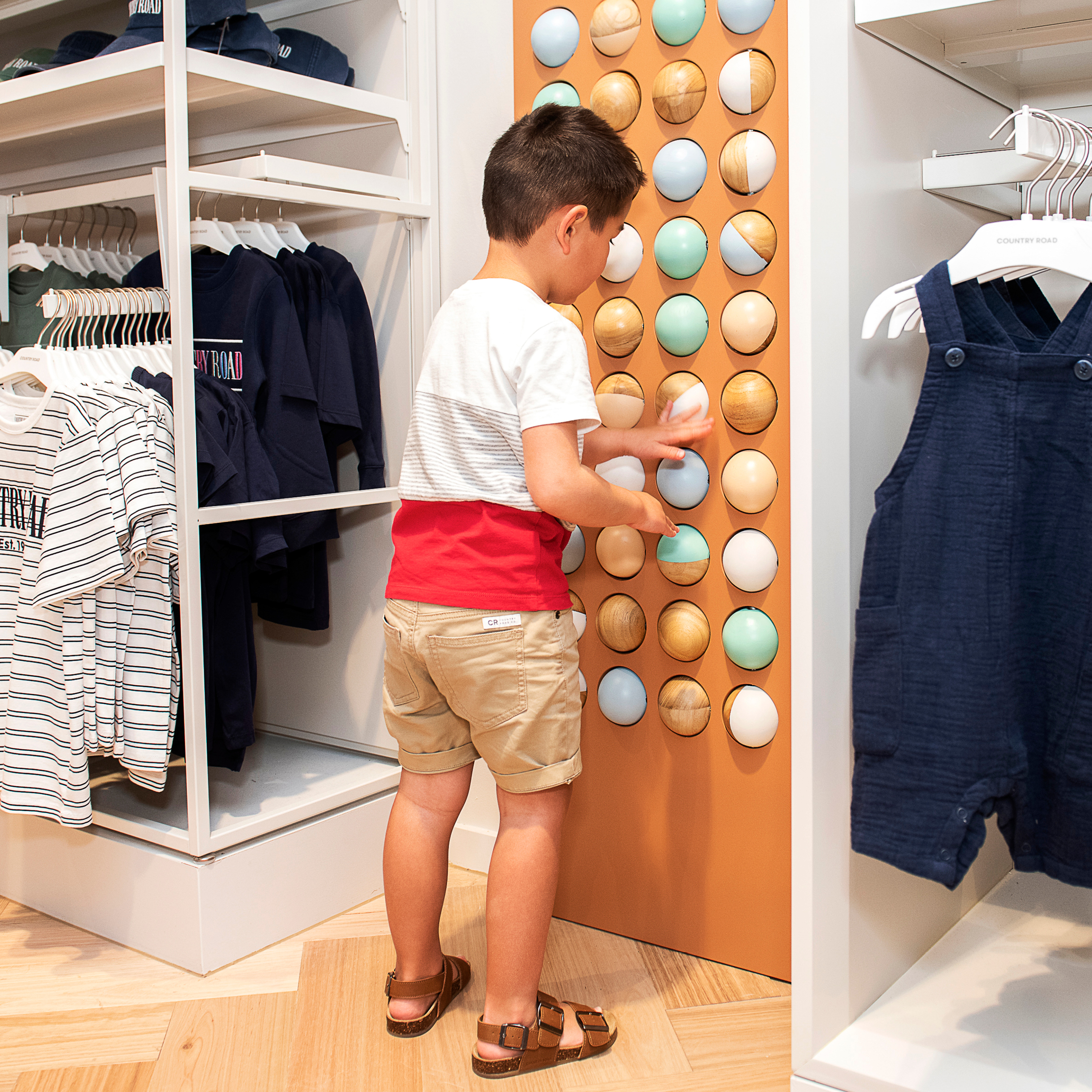 The Country Road store in Frankston launched the Kids World space, a new initiative featuring interactive activities for children to play with while their parents shop. Inspired by the Australian bushland hues with pops of colour and a dusty tonal mix, we used natural textures and finishes to create engaging displays.