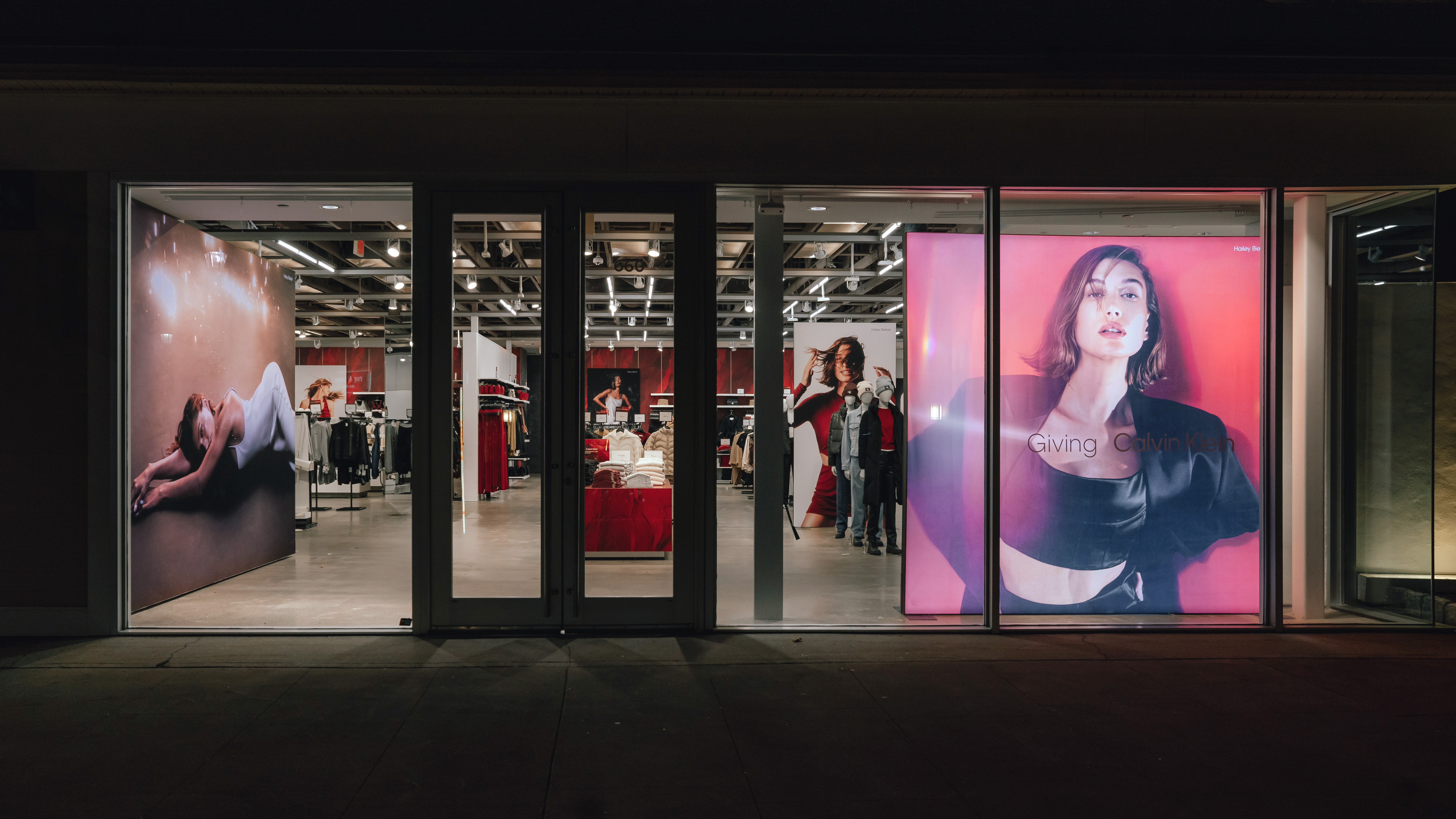 Window and in store takeover featuring CK iconic Holiday campaign with Hailey Bieber and Brandon Flynn Partner: Hatteras (not listed below)