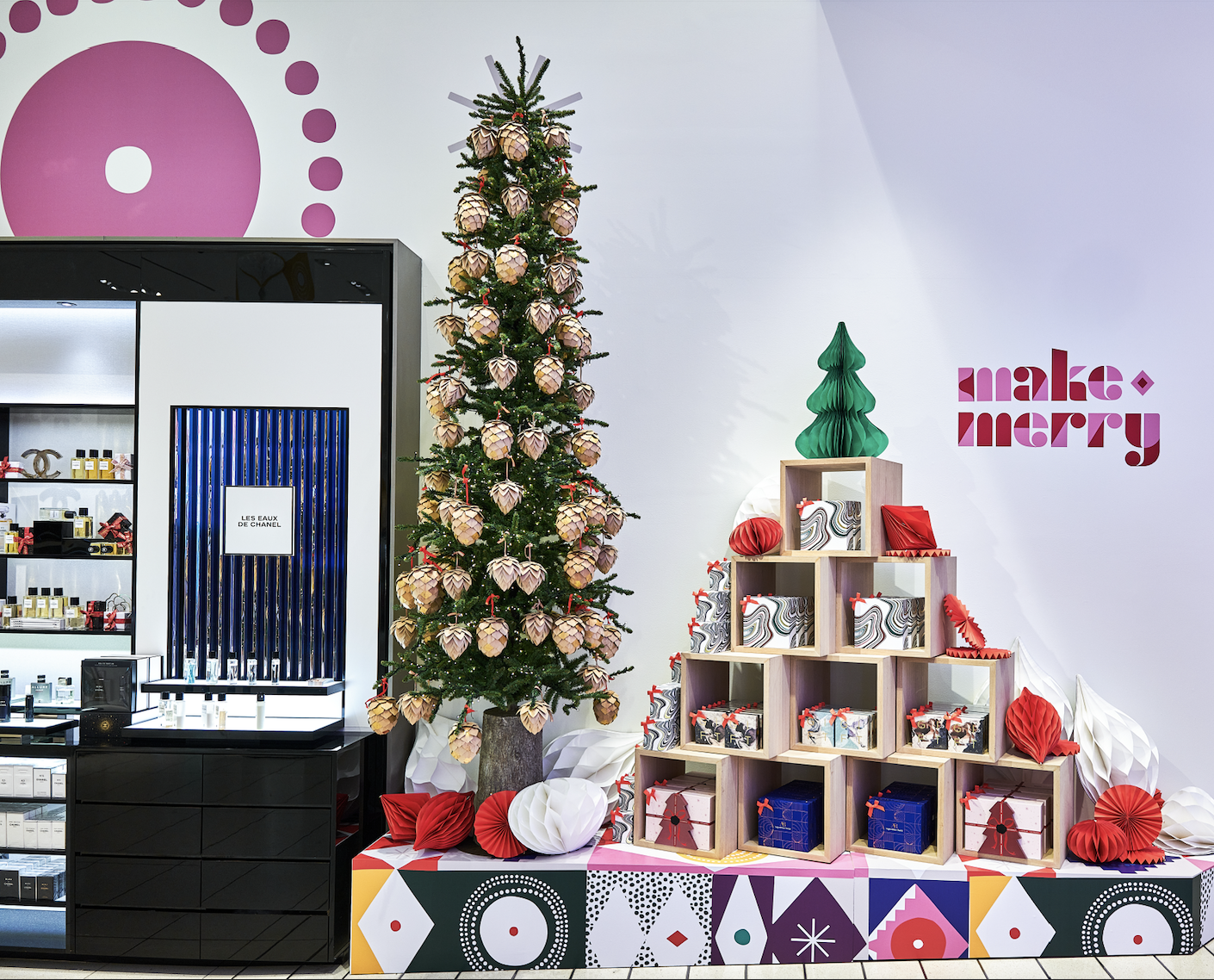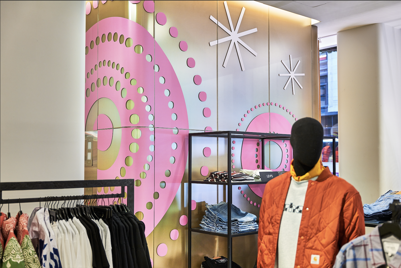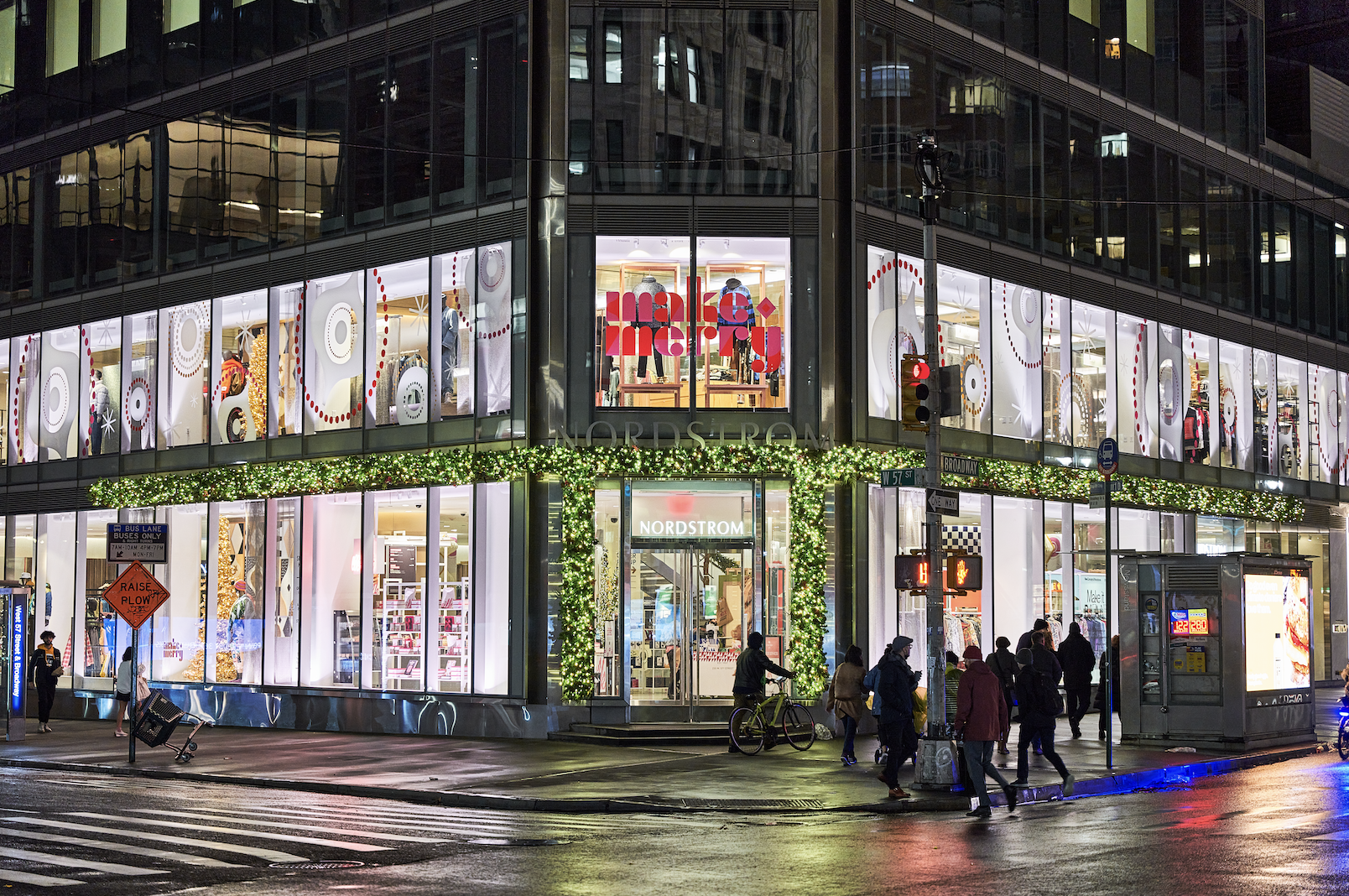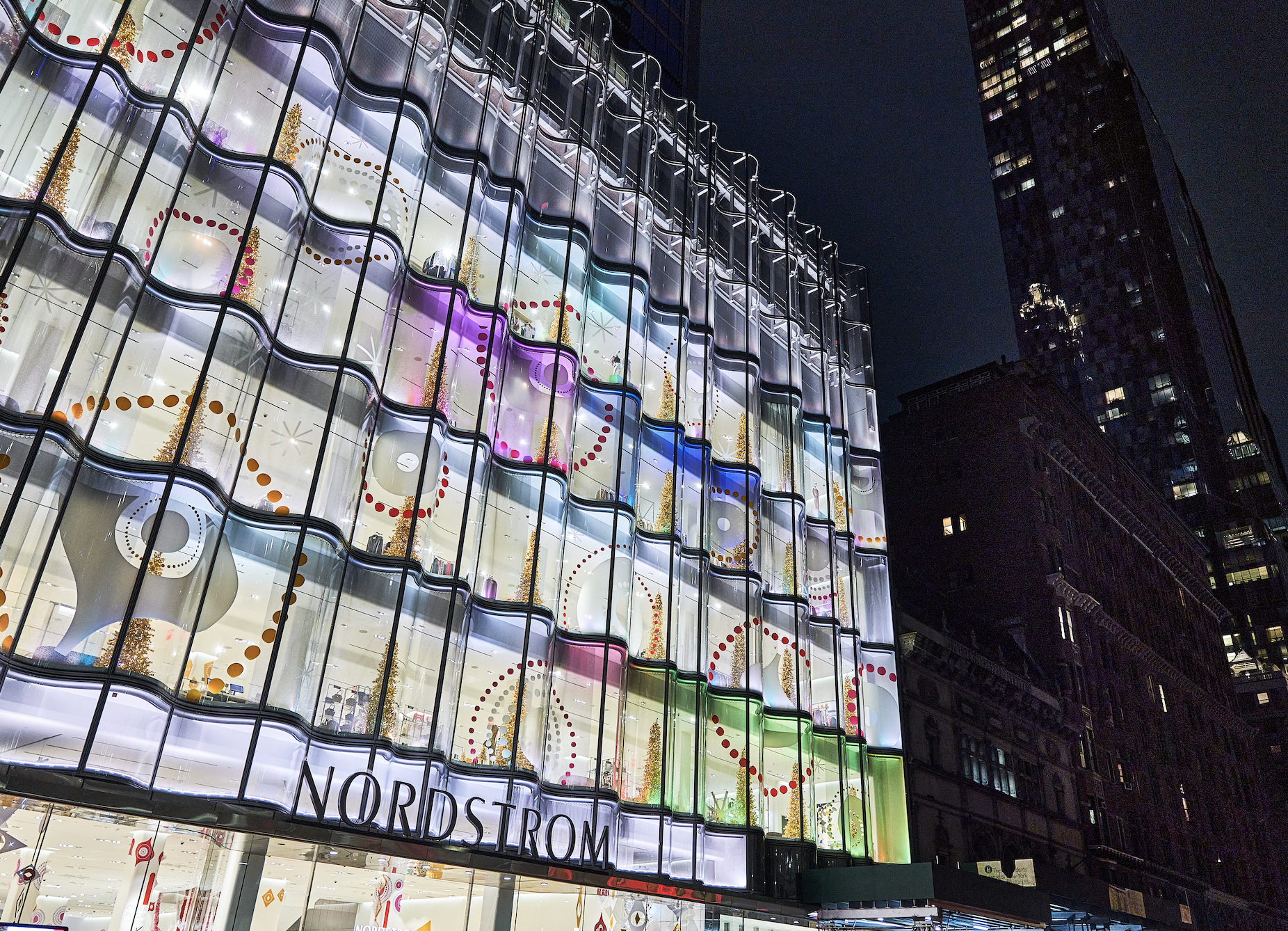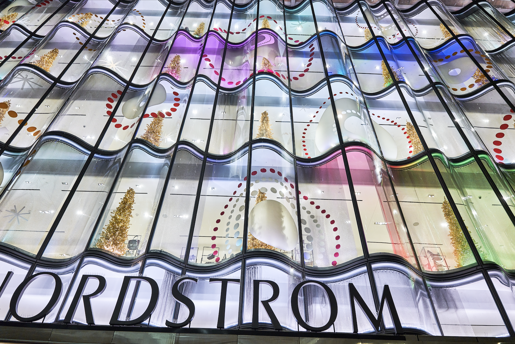 It wouldn't be the holiday season without Nordstrom's beautiful displays. Using transparent films and vinyl, we ensure customer sight-lines through Nordstrom's stunning wave-glass facade. While installations face challenges due to low temperatures, we overcome them by raising store temperatures and pre/post-heating films.