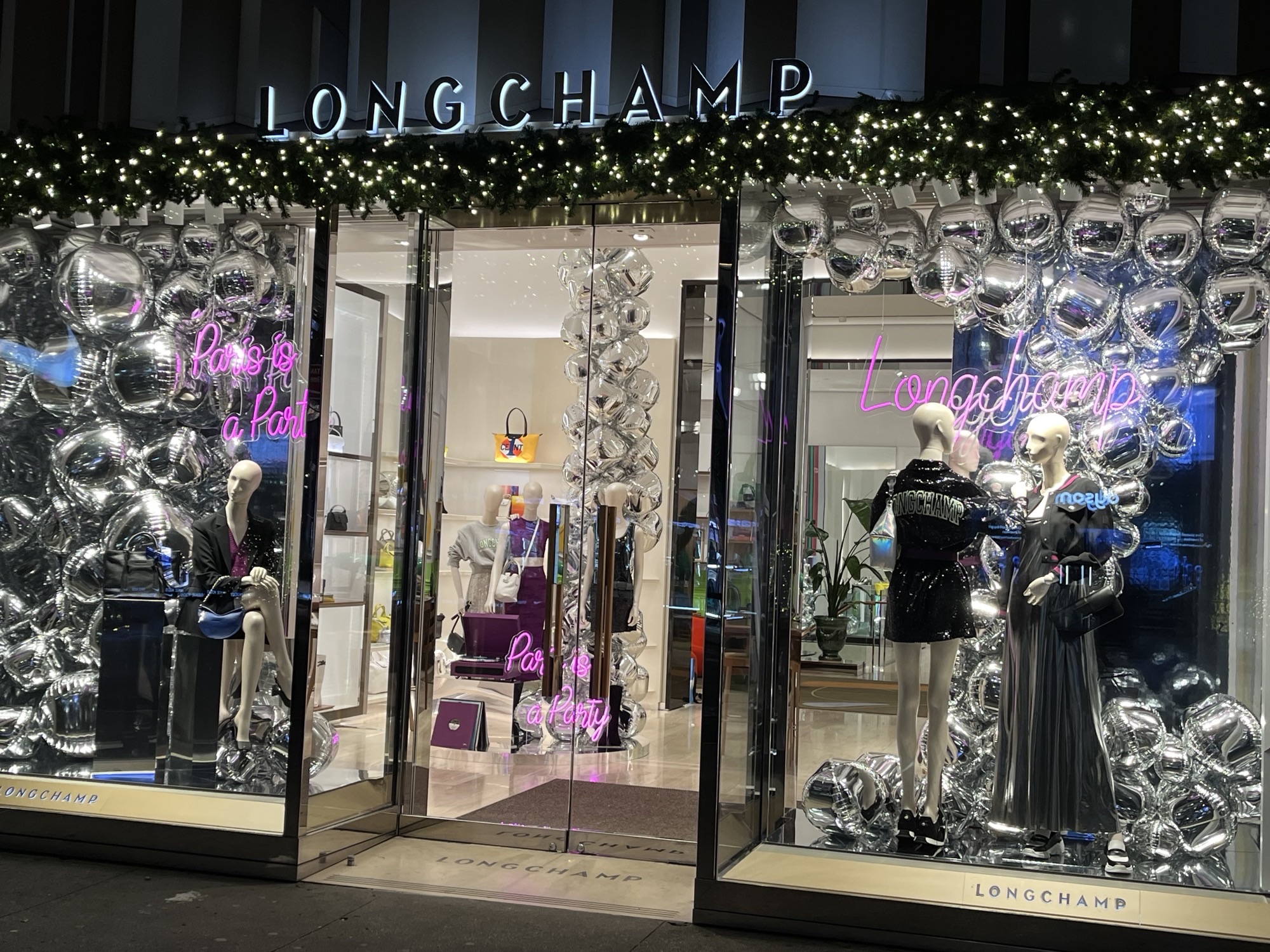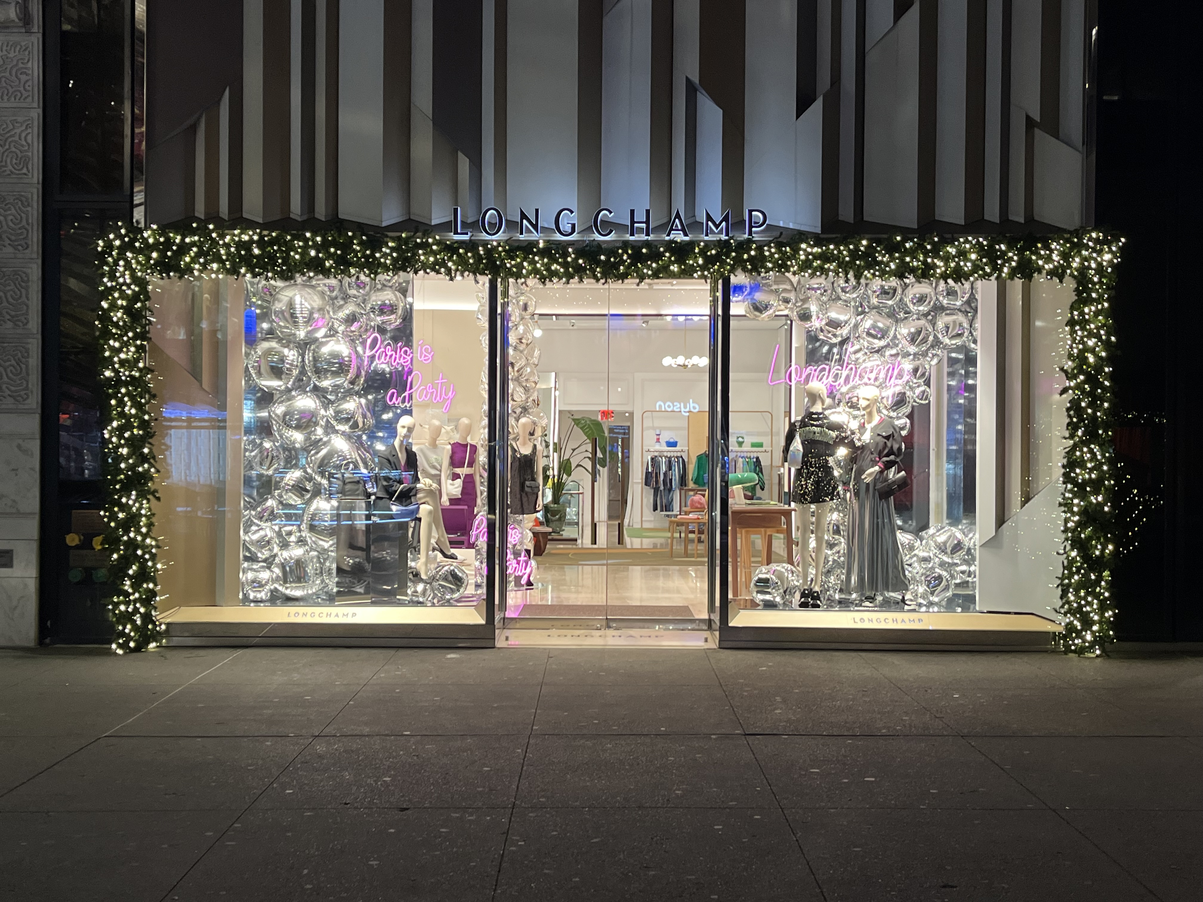 The art of partying by Longchamp. For the holiday season and kickoff of the Spring-Summer 2024 season, Creative Director Sophie Delafontaine has scattered sparkle all over this new collection, showcased in the windows and interior of Longchamp Fifth Avenue and SoHo.