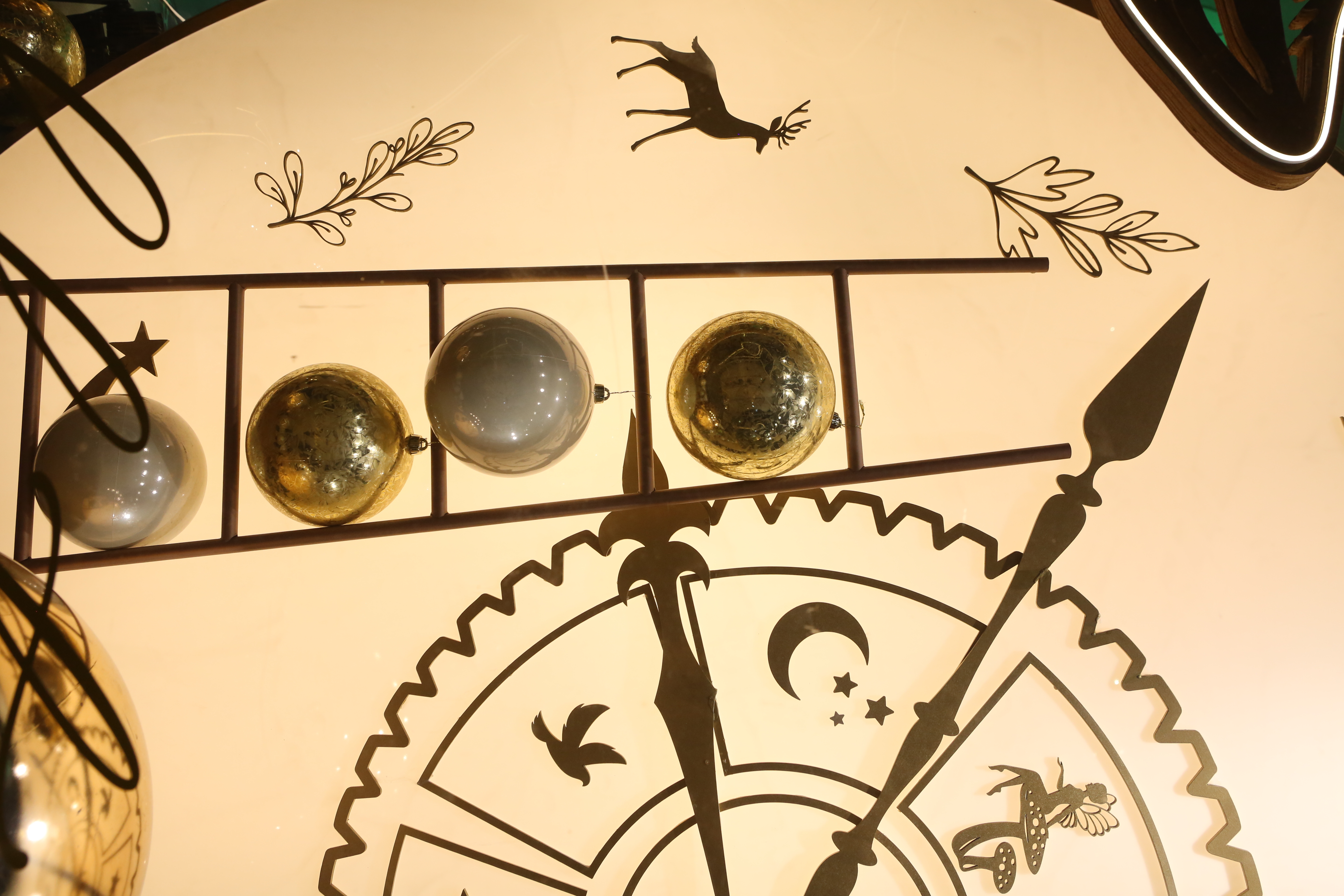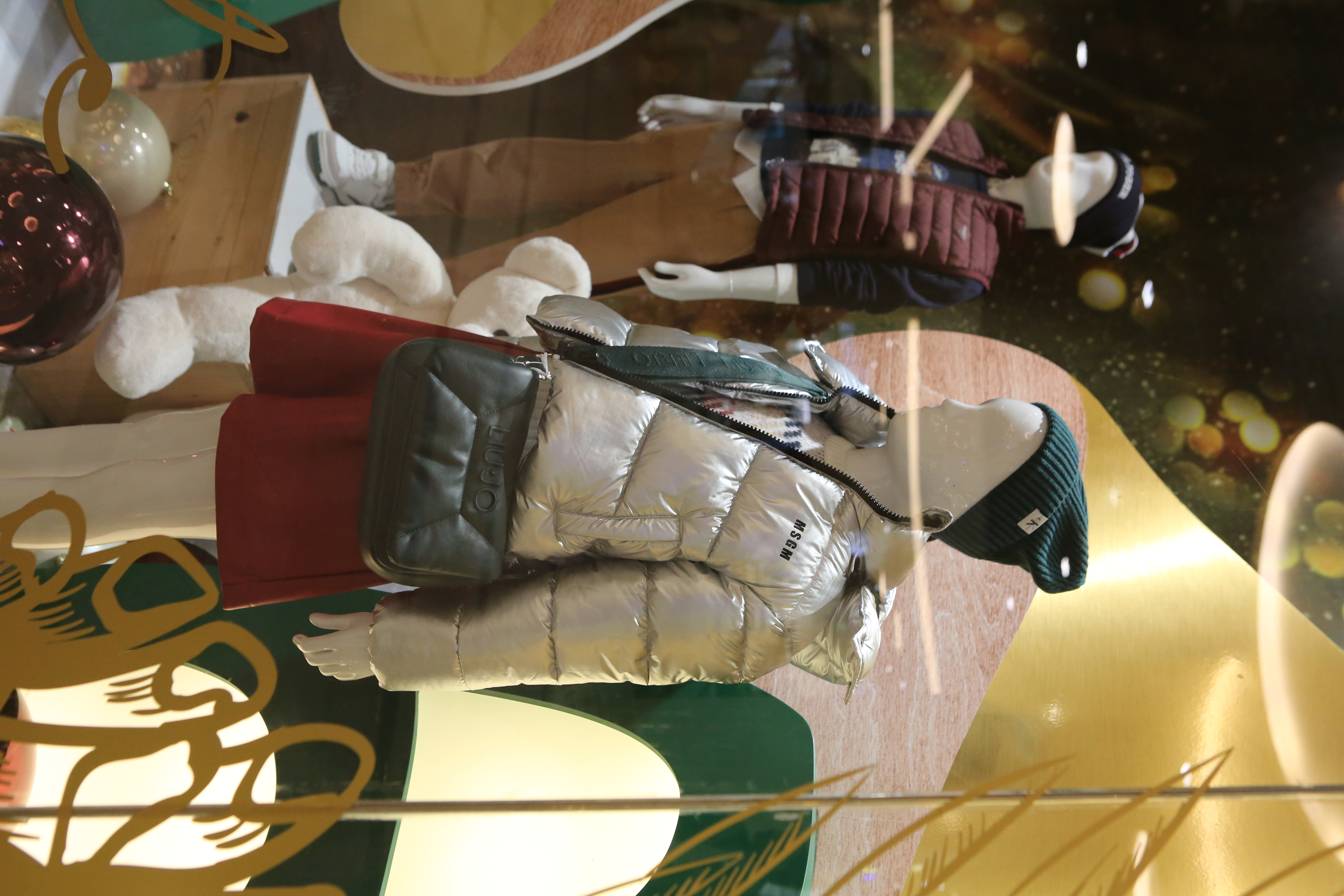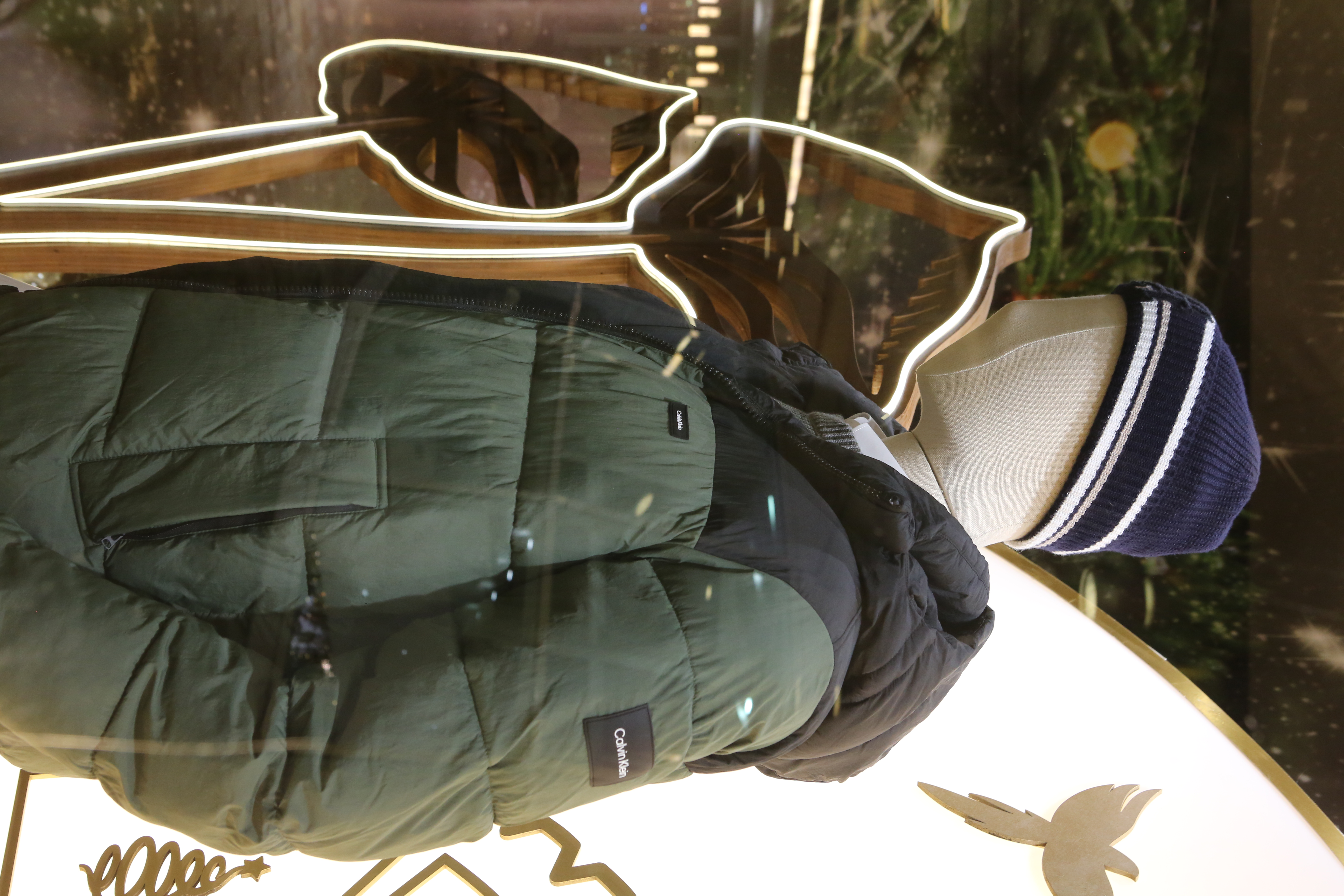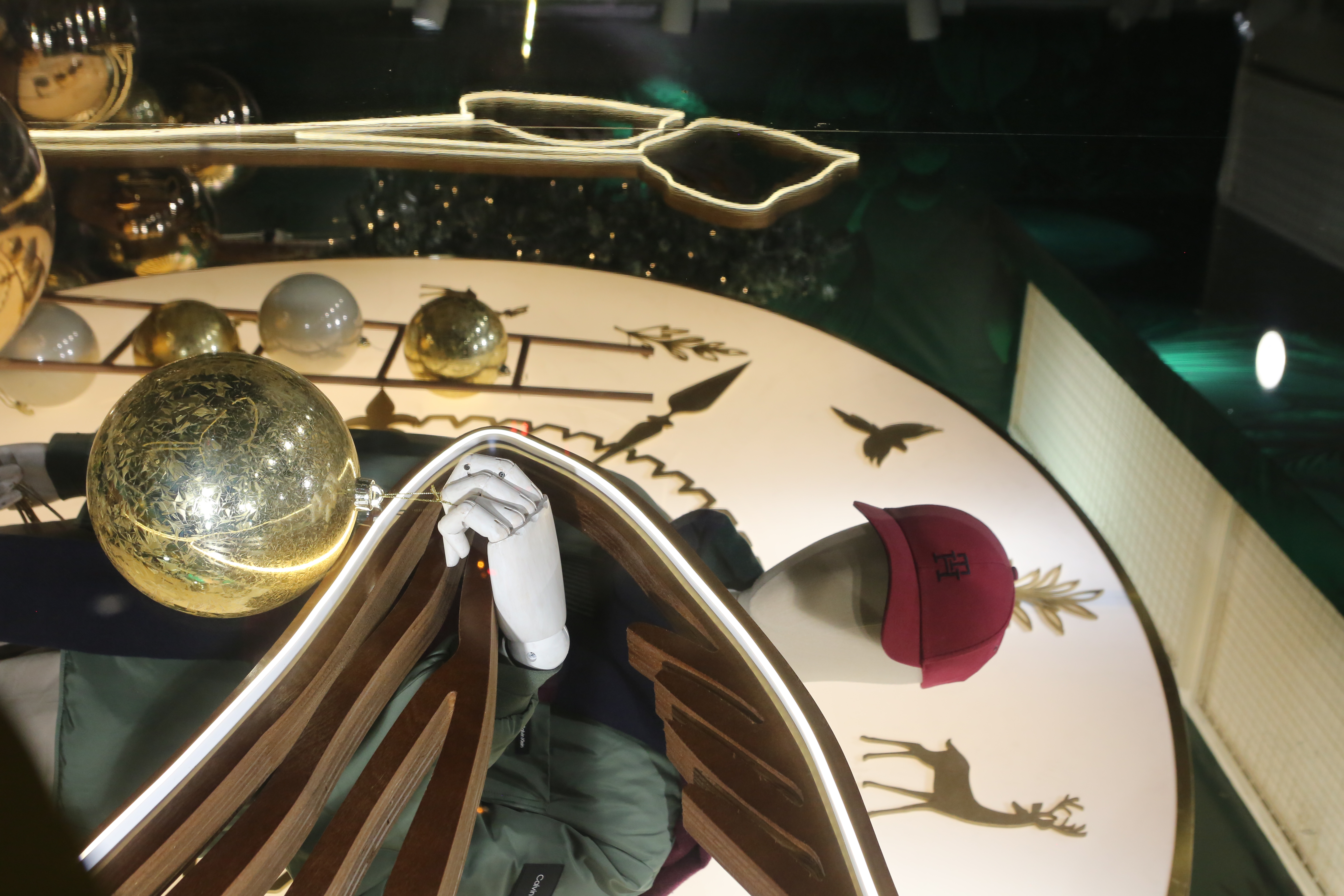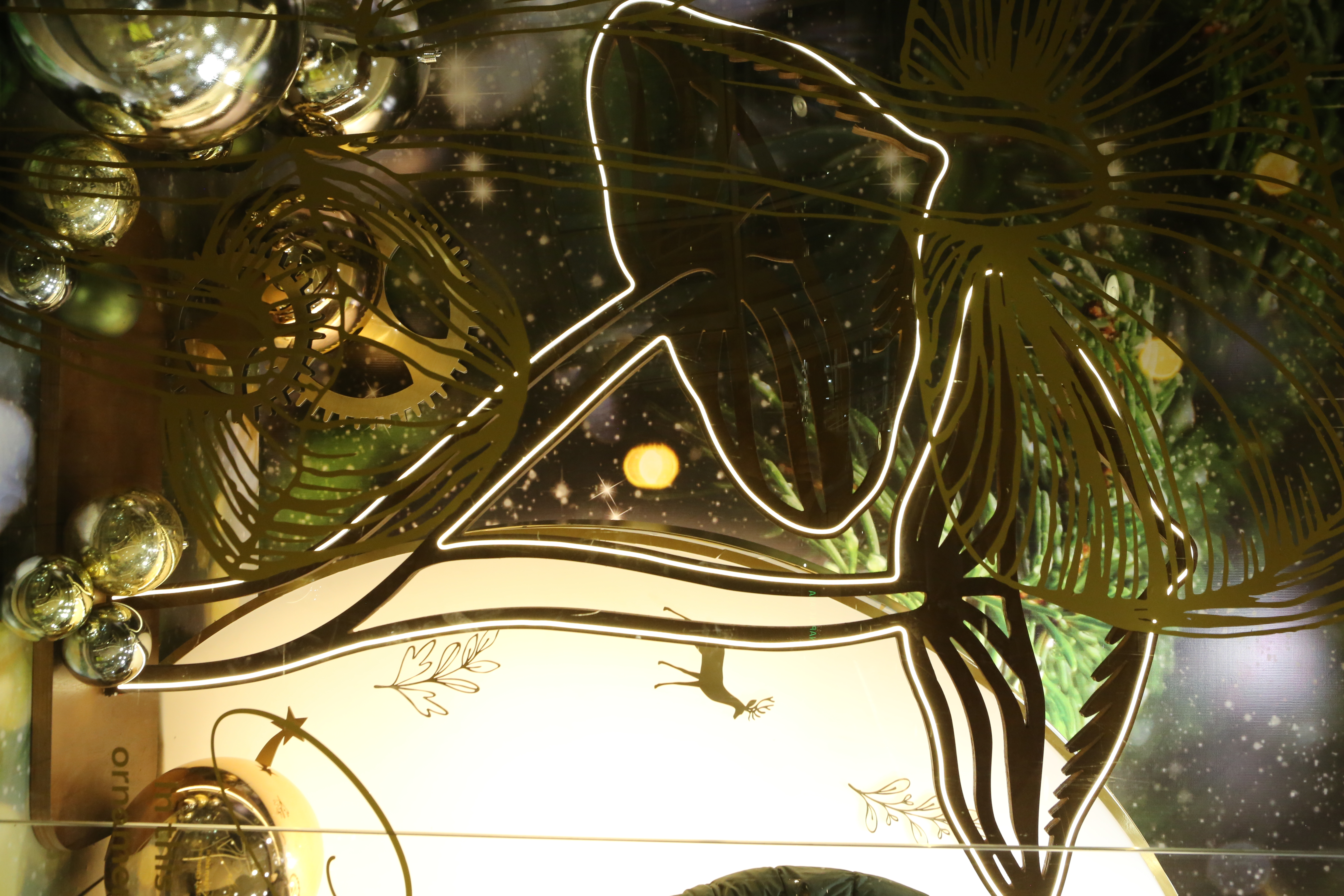 ABC Lebanon Holiday Fashion Windows titled "Celebrate The Moment". Forest element props to create a fairytale botanical Christmas mood by focusing on the green color and themes of "Enchanted Christmas Forest" and "Rebirth in Nature".