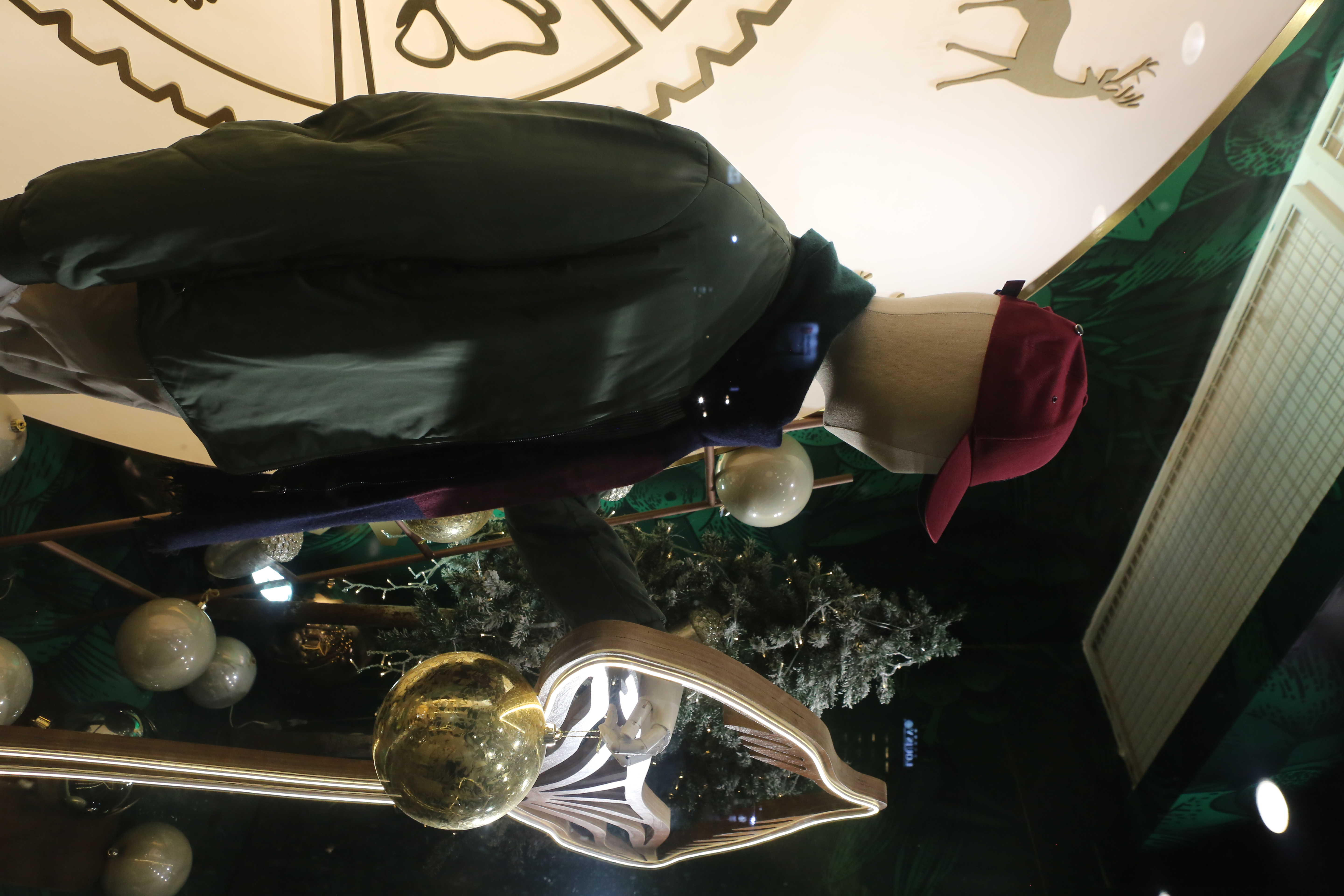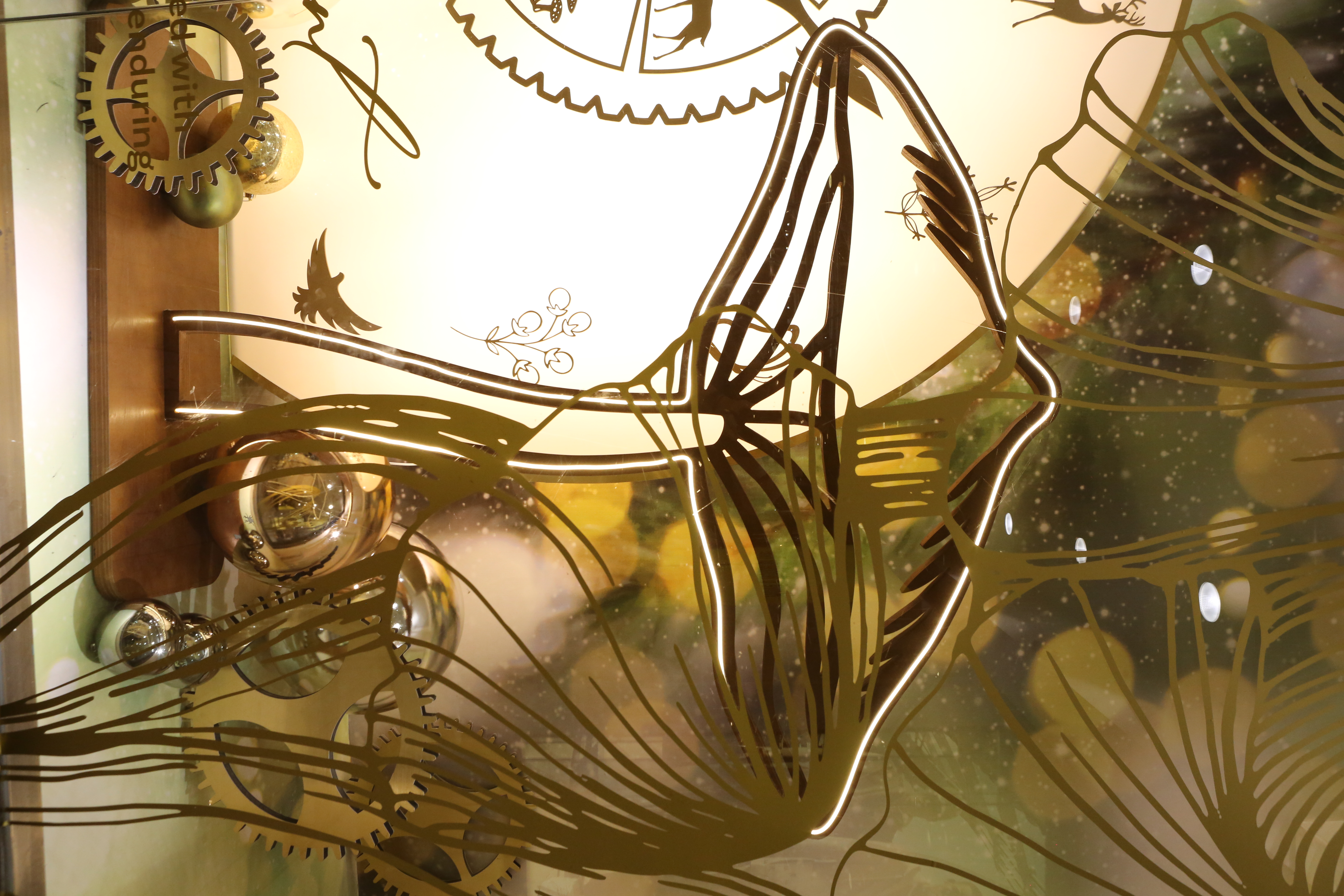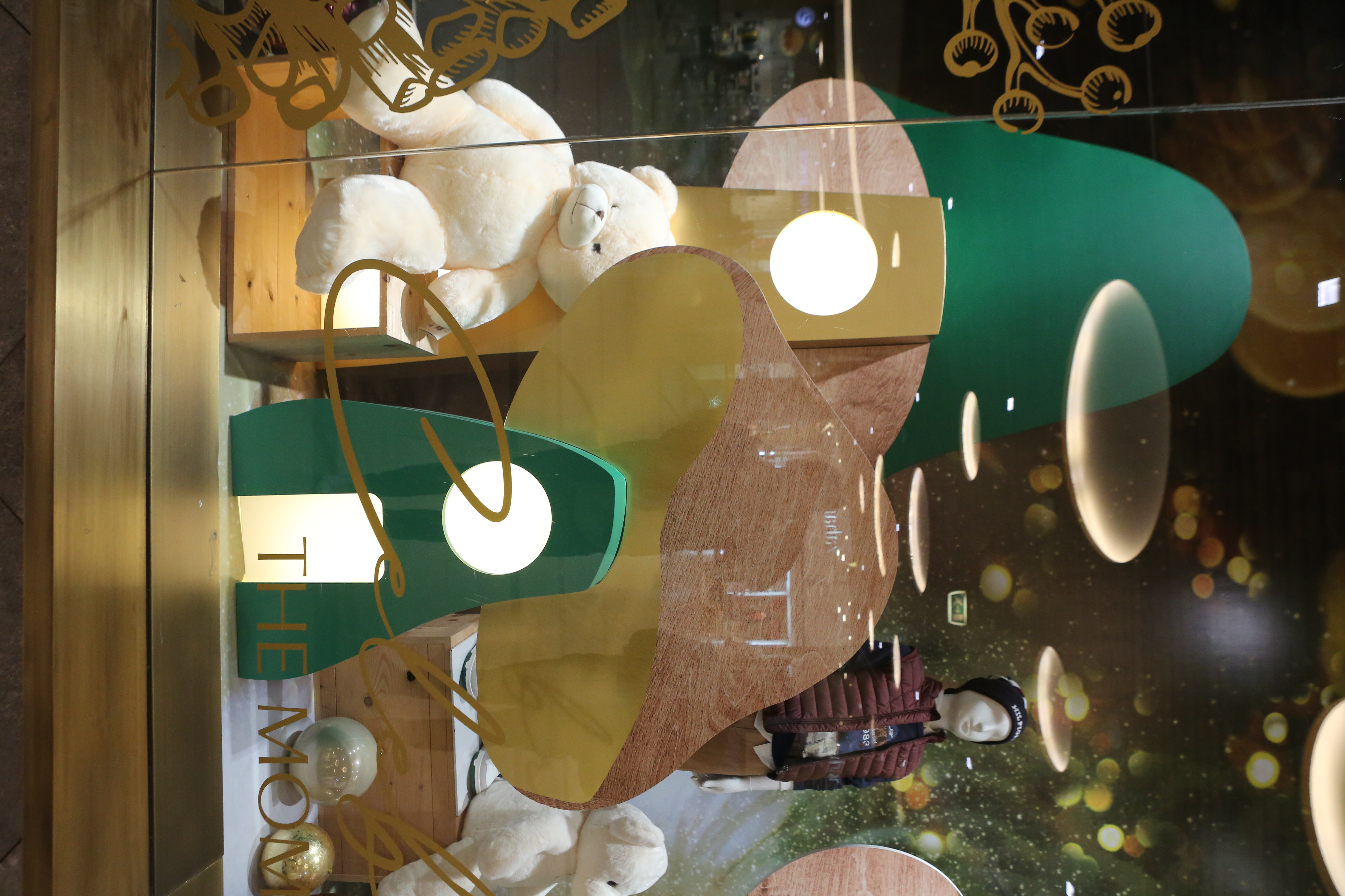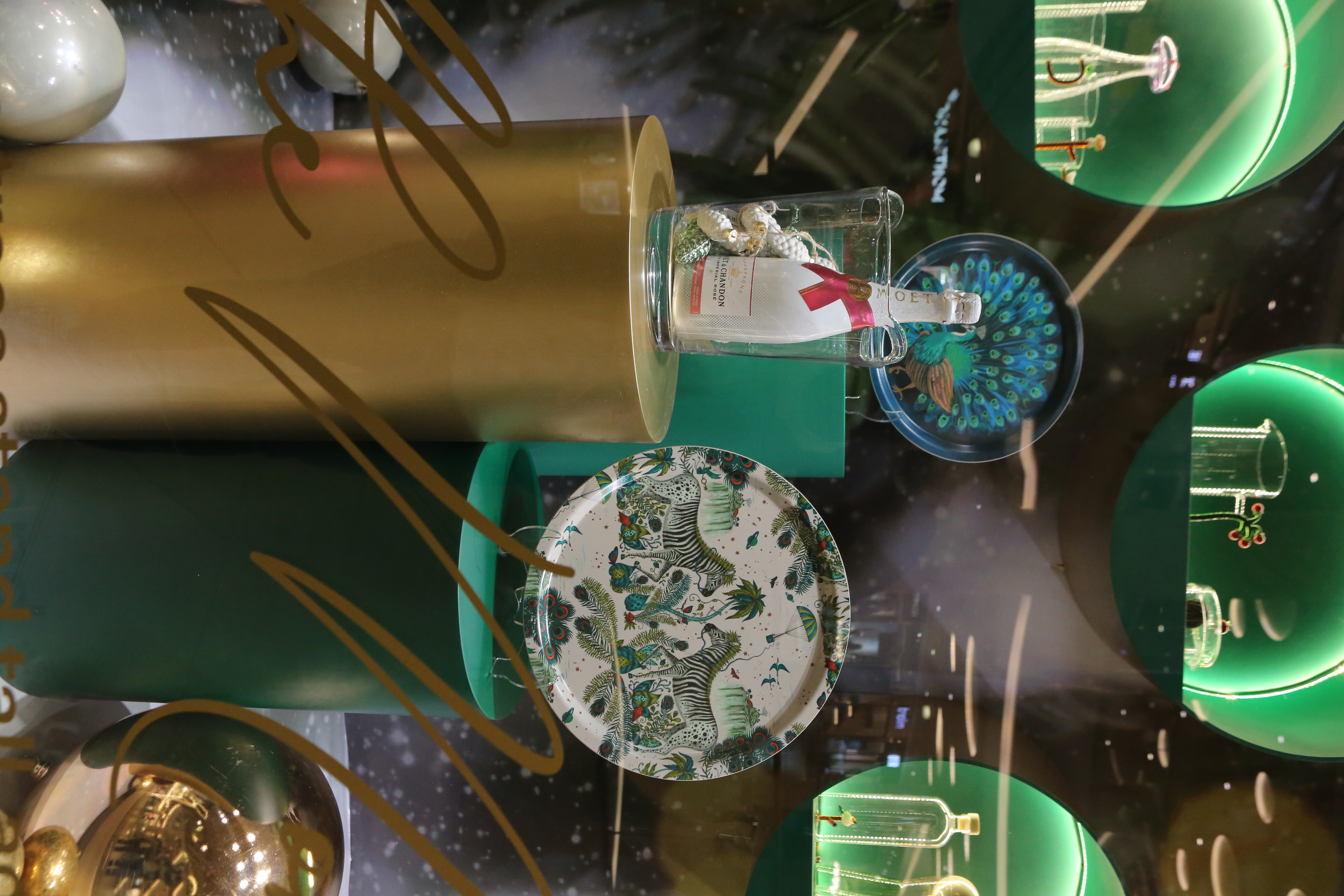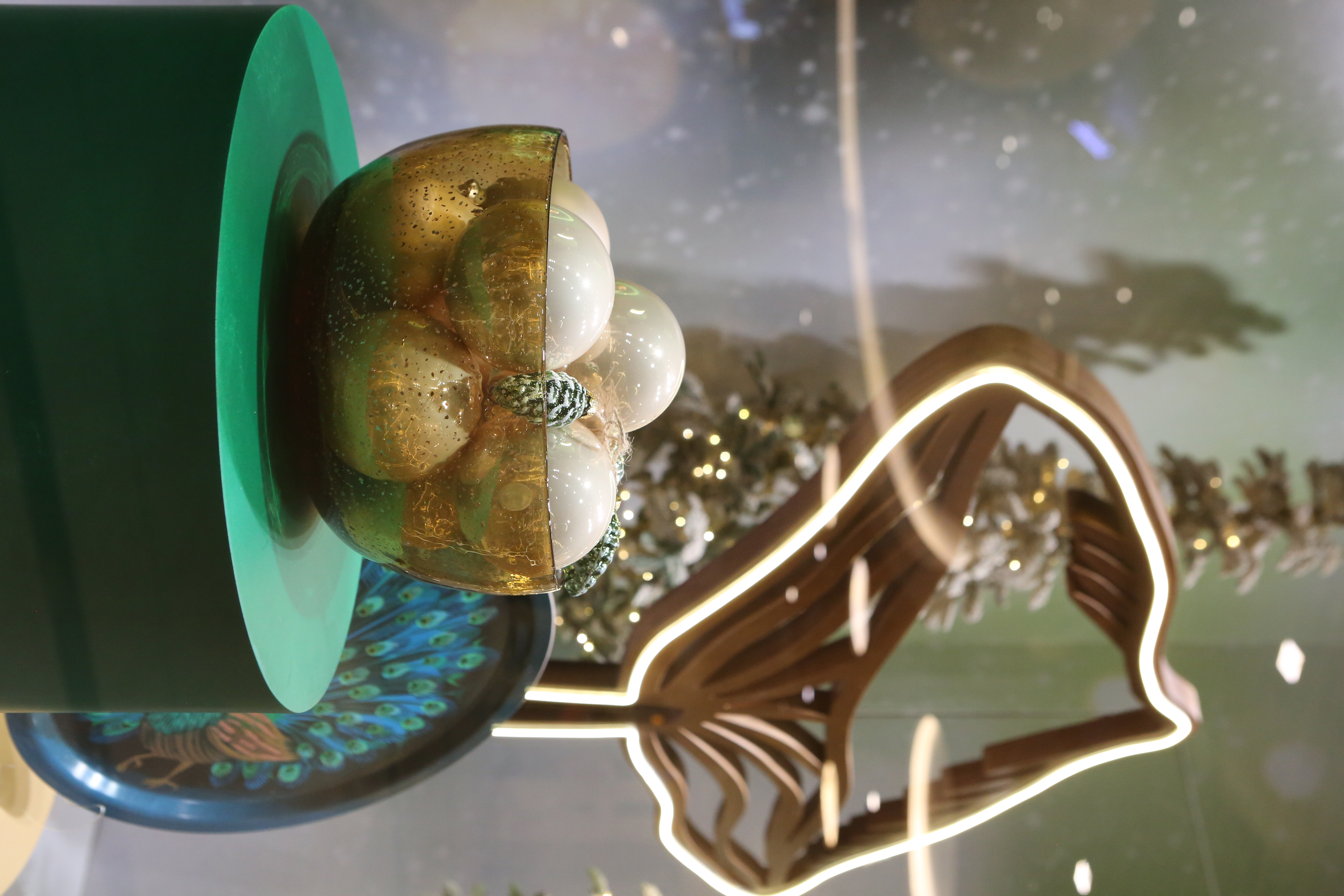 ABC Lebanon Holiday Fashion Windows titled "Celebrate The Moment". Forest element props to create a fairytale botanical Christmas mood by focusing on the green color and themes of "Enchanted Christmas Forest" and "Rebirth in Nature".