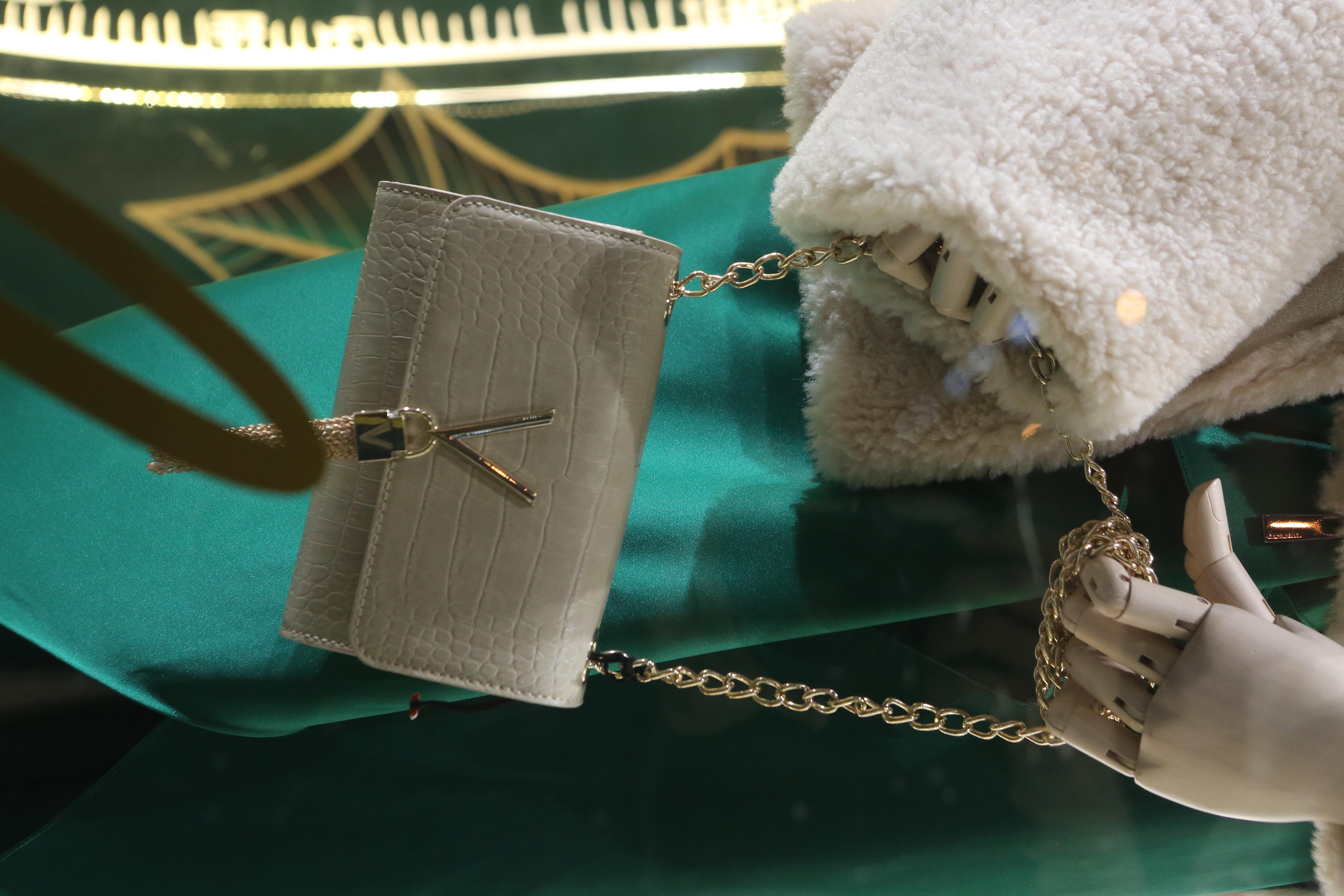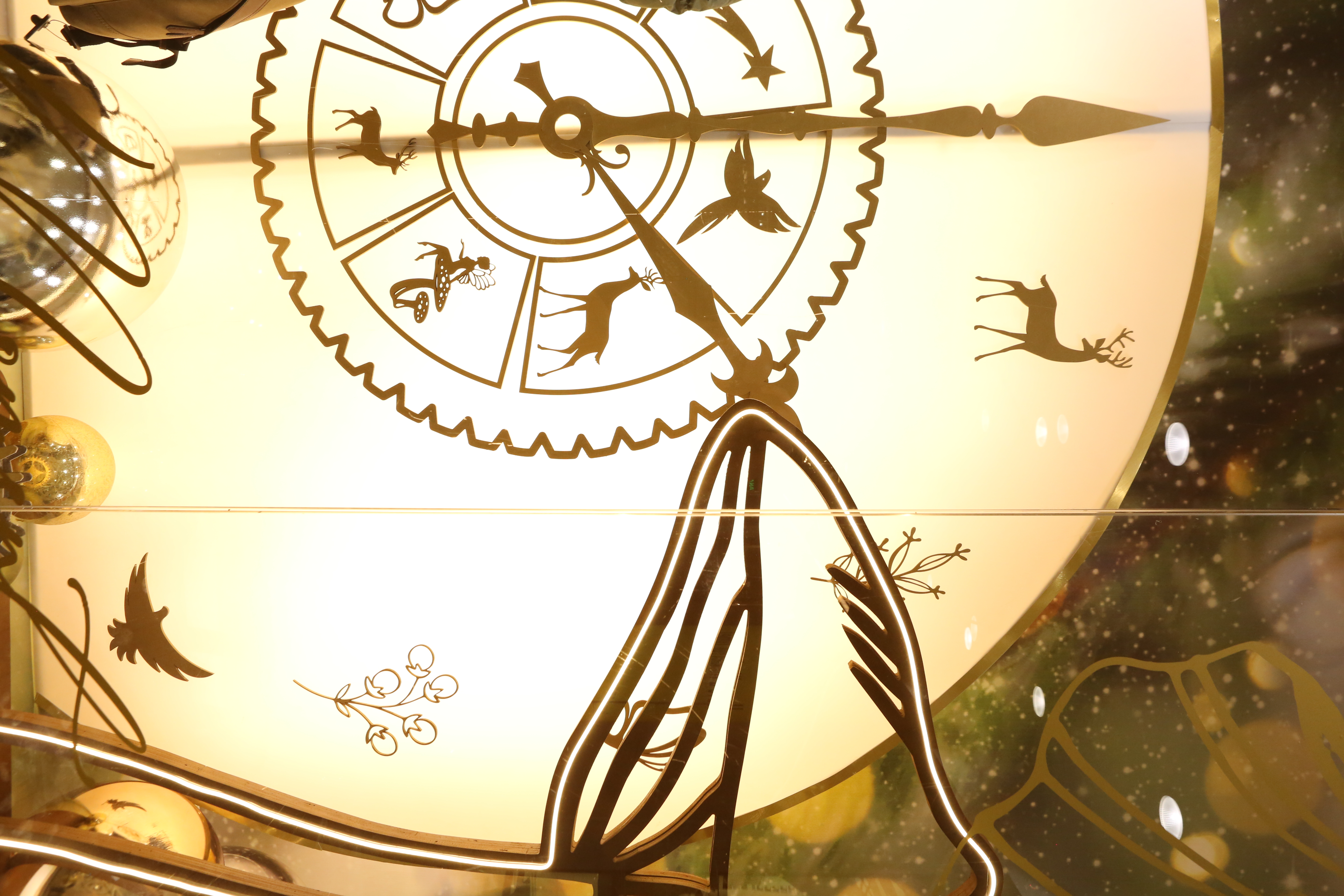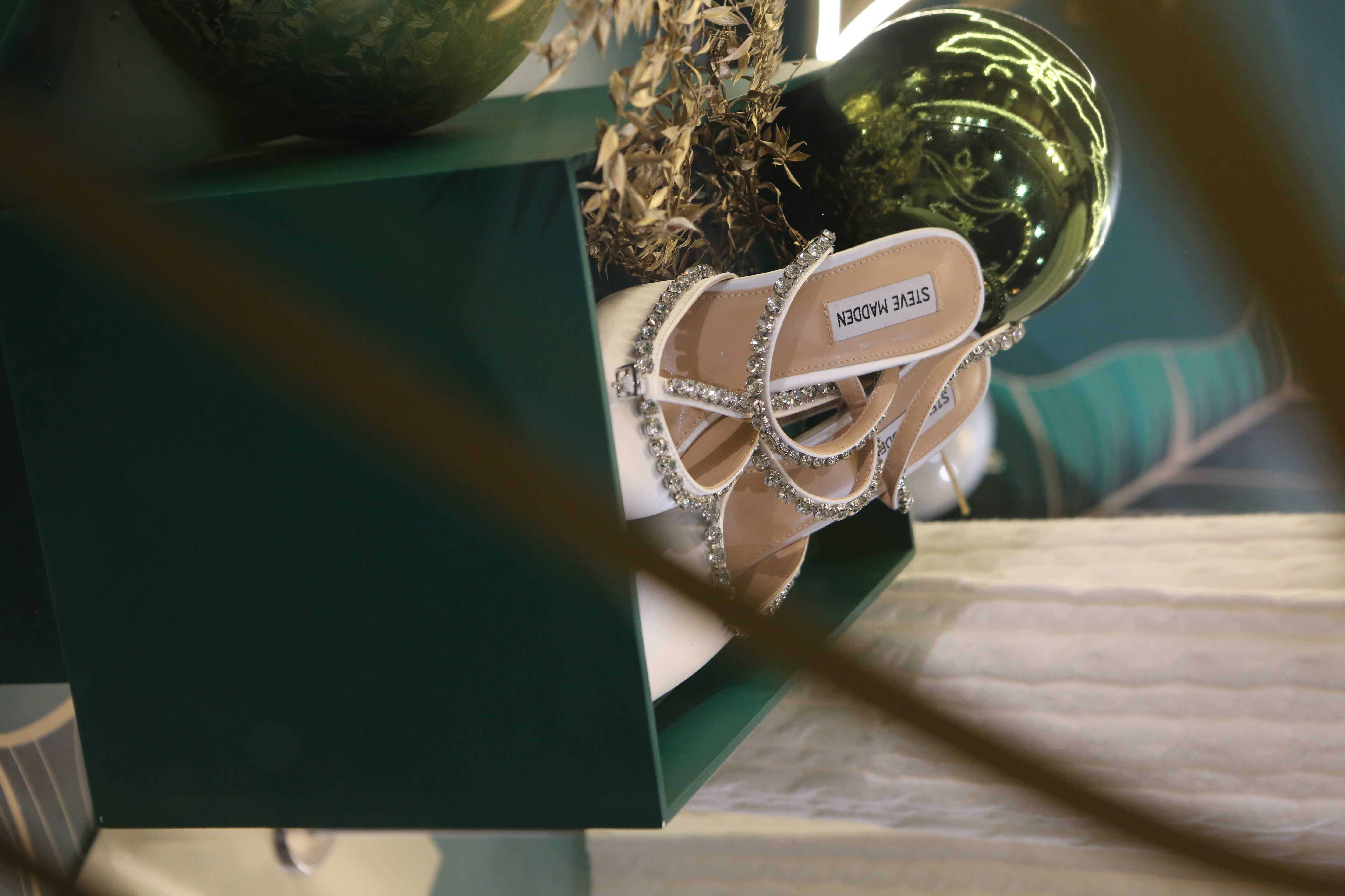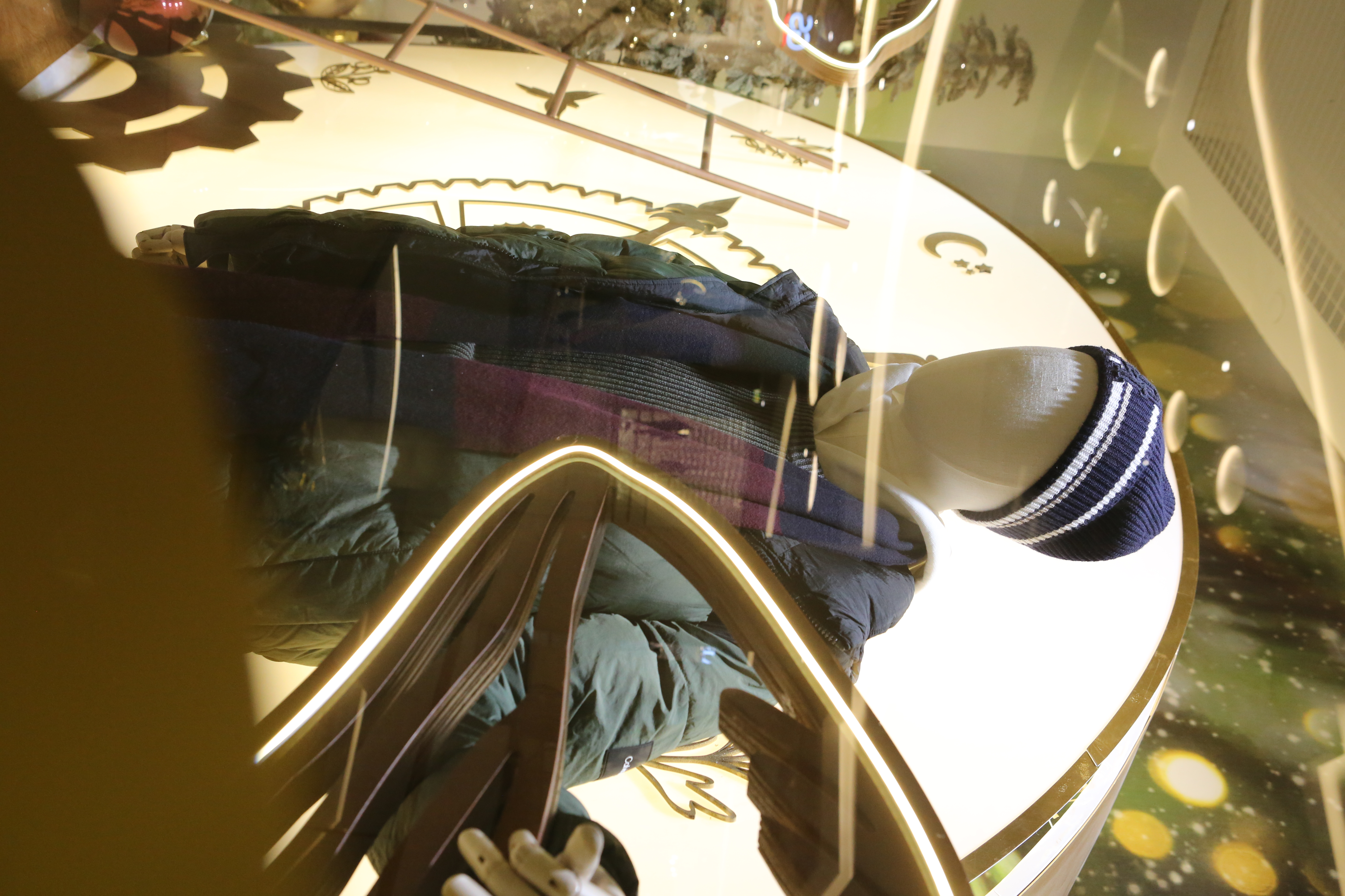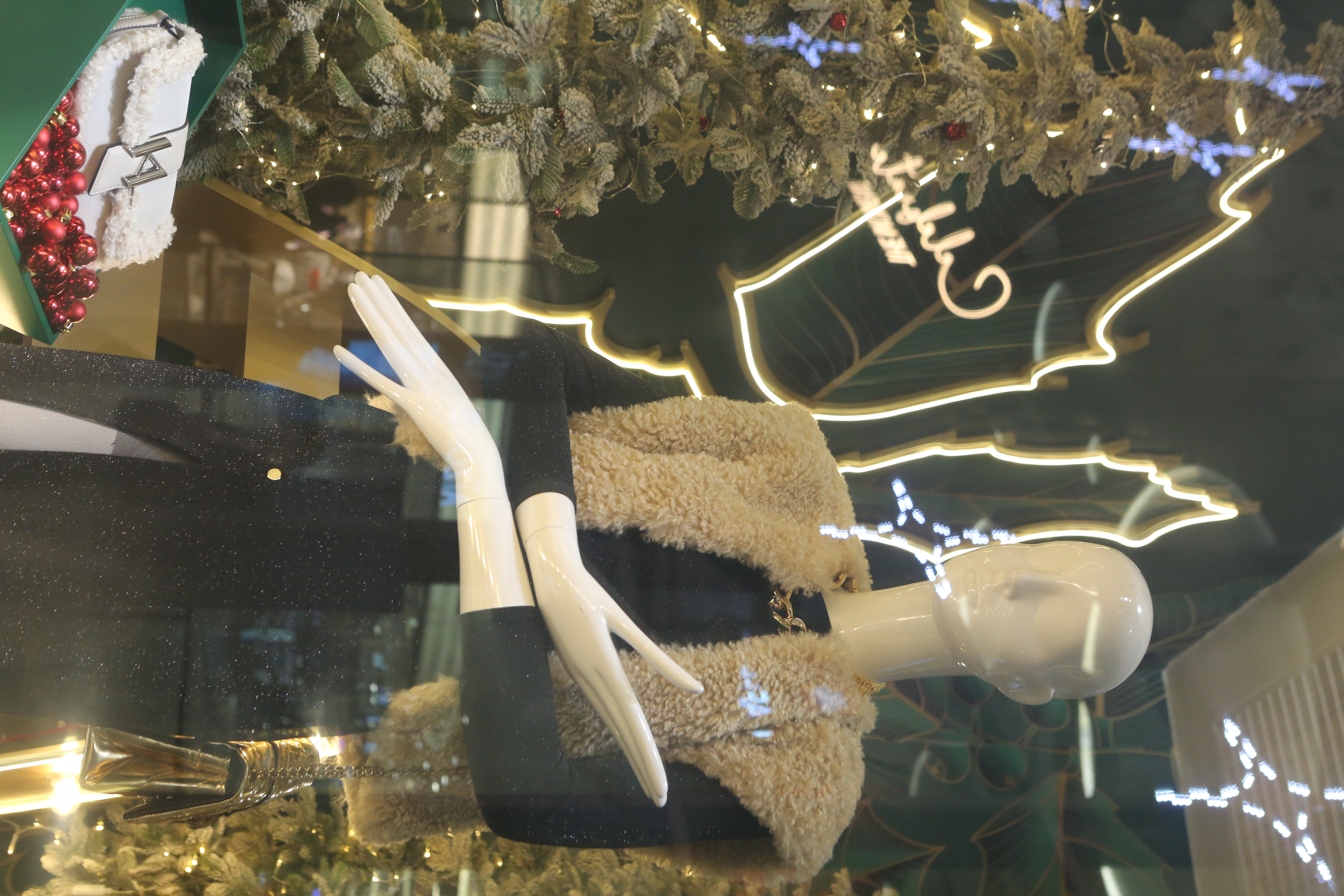 ABC Lebanon Holiday Fashion Windows titled "Celebrate The Moment". Forest element props to create a fairytale botanical Christmas mood by focusing on the green color and themes of "Enchanted Christmas Forest" and "Rebirth in Nature".
