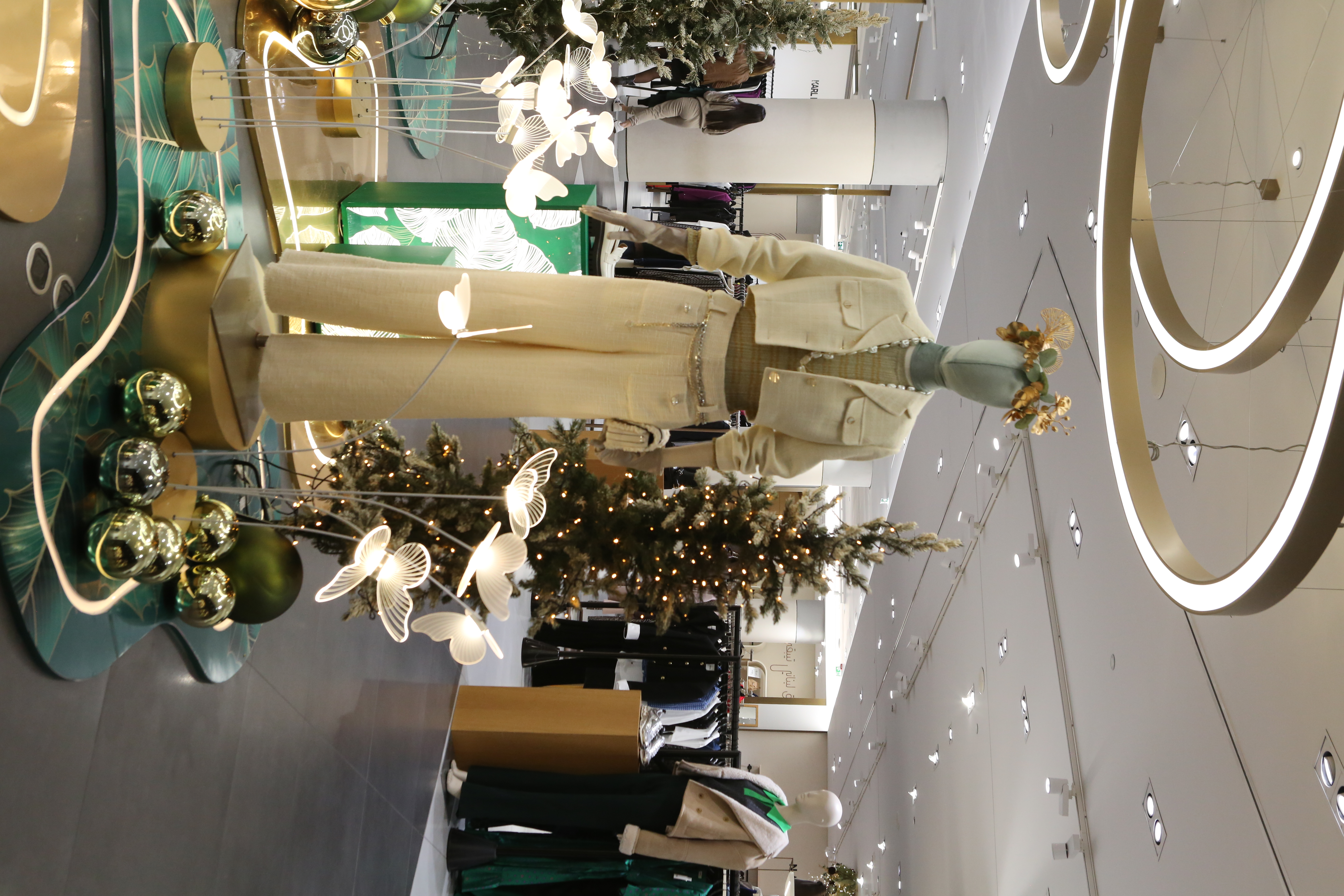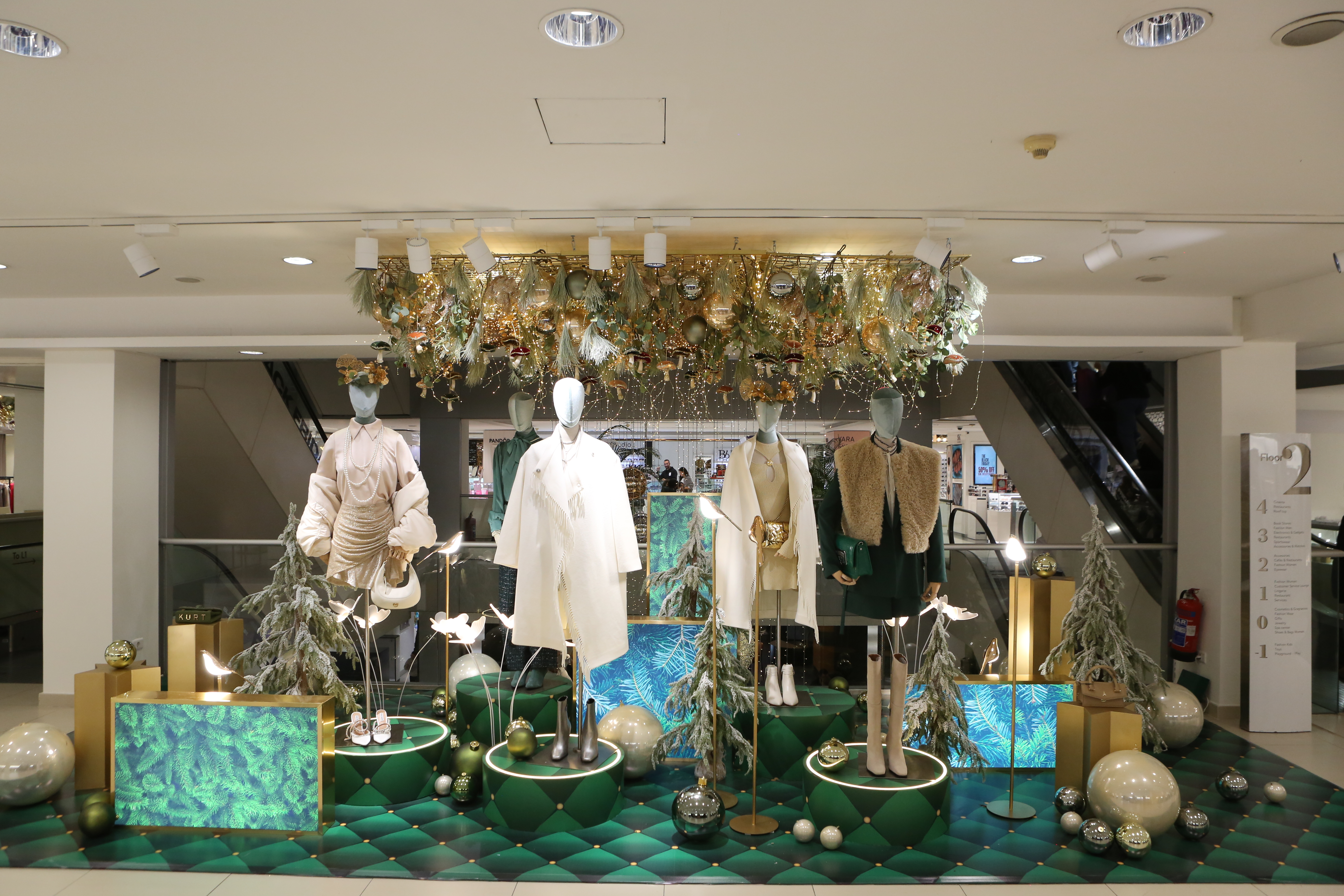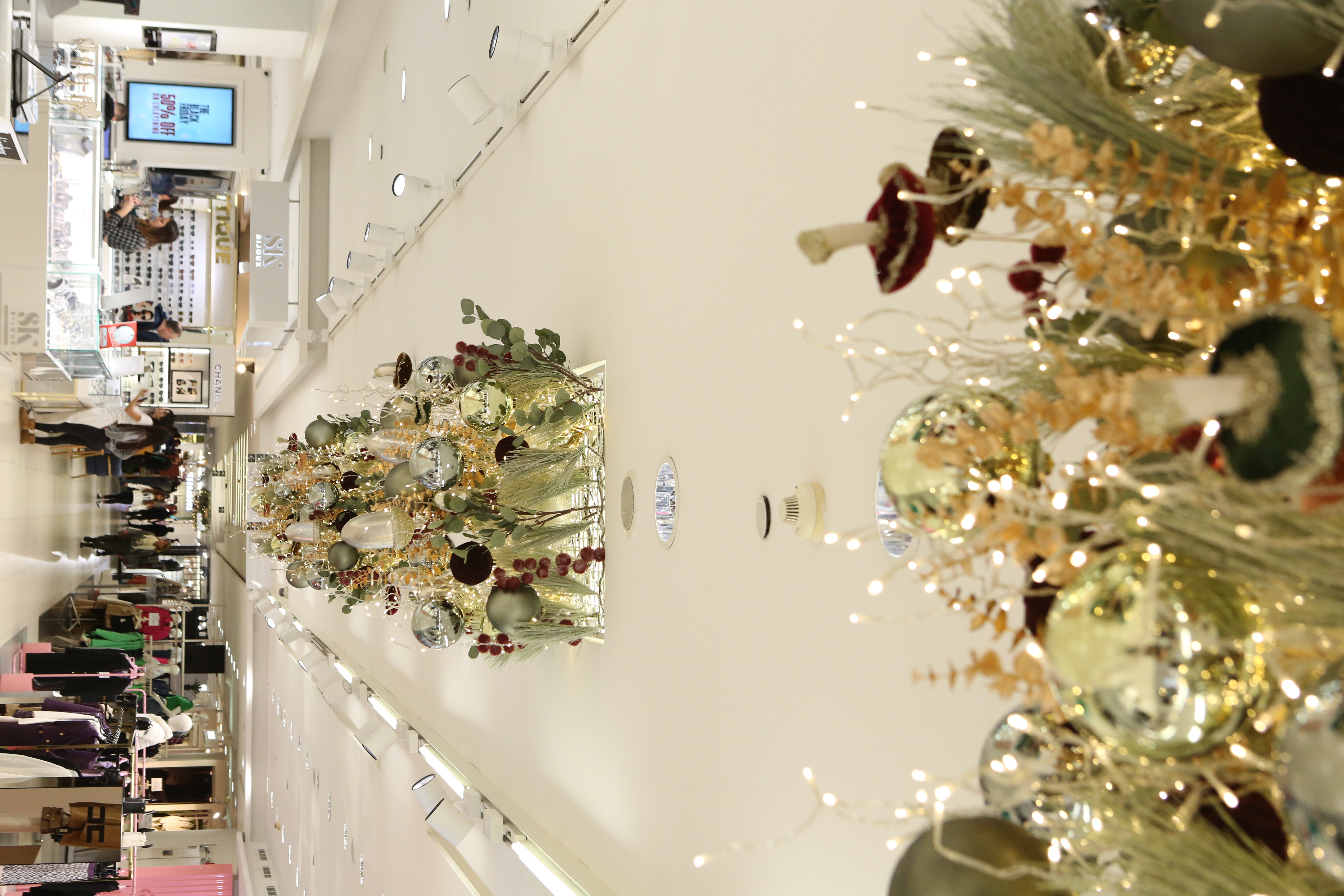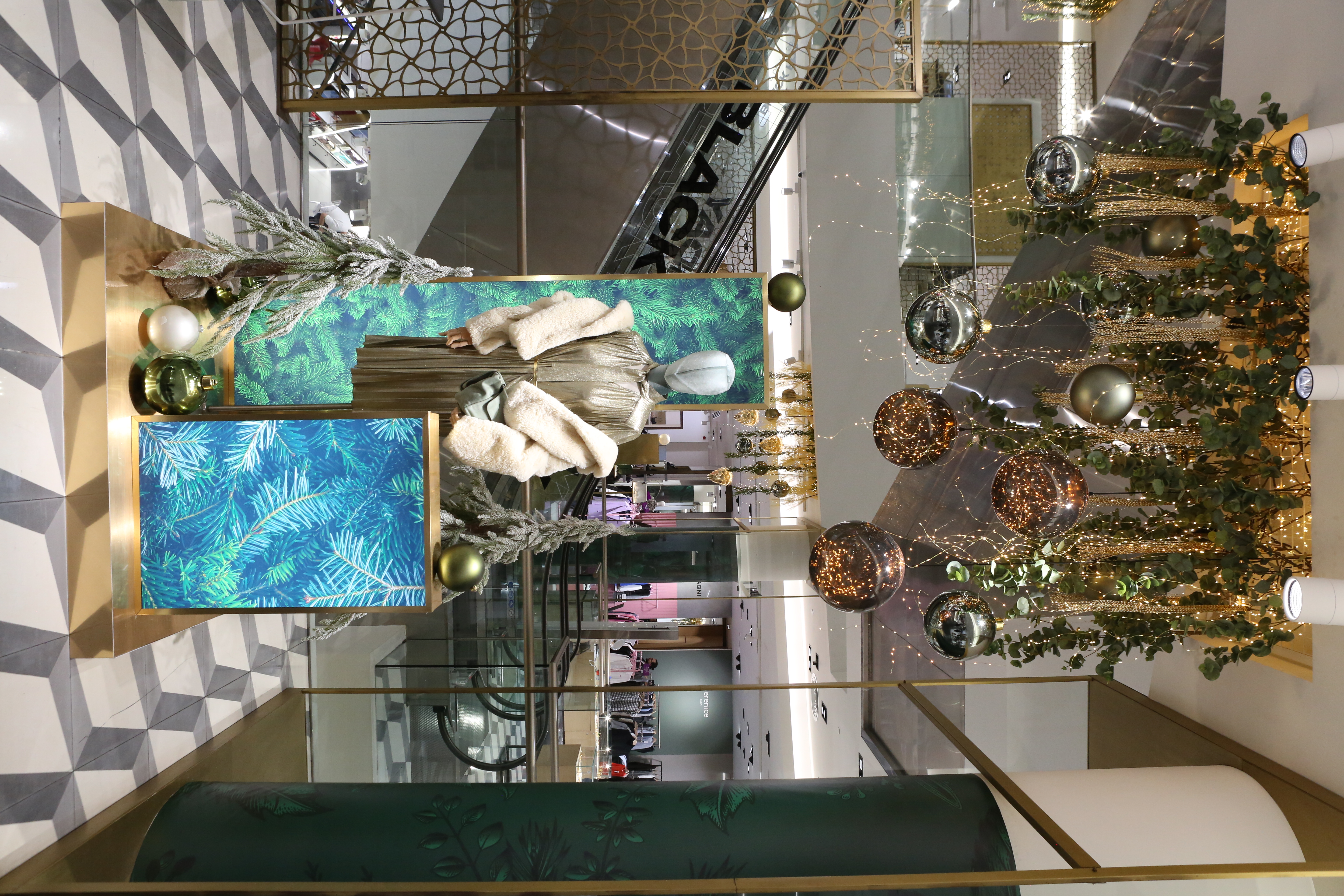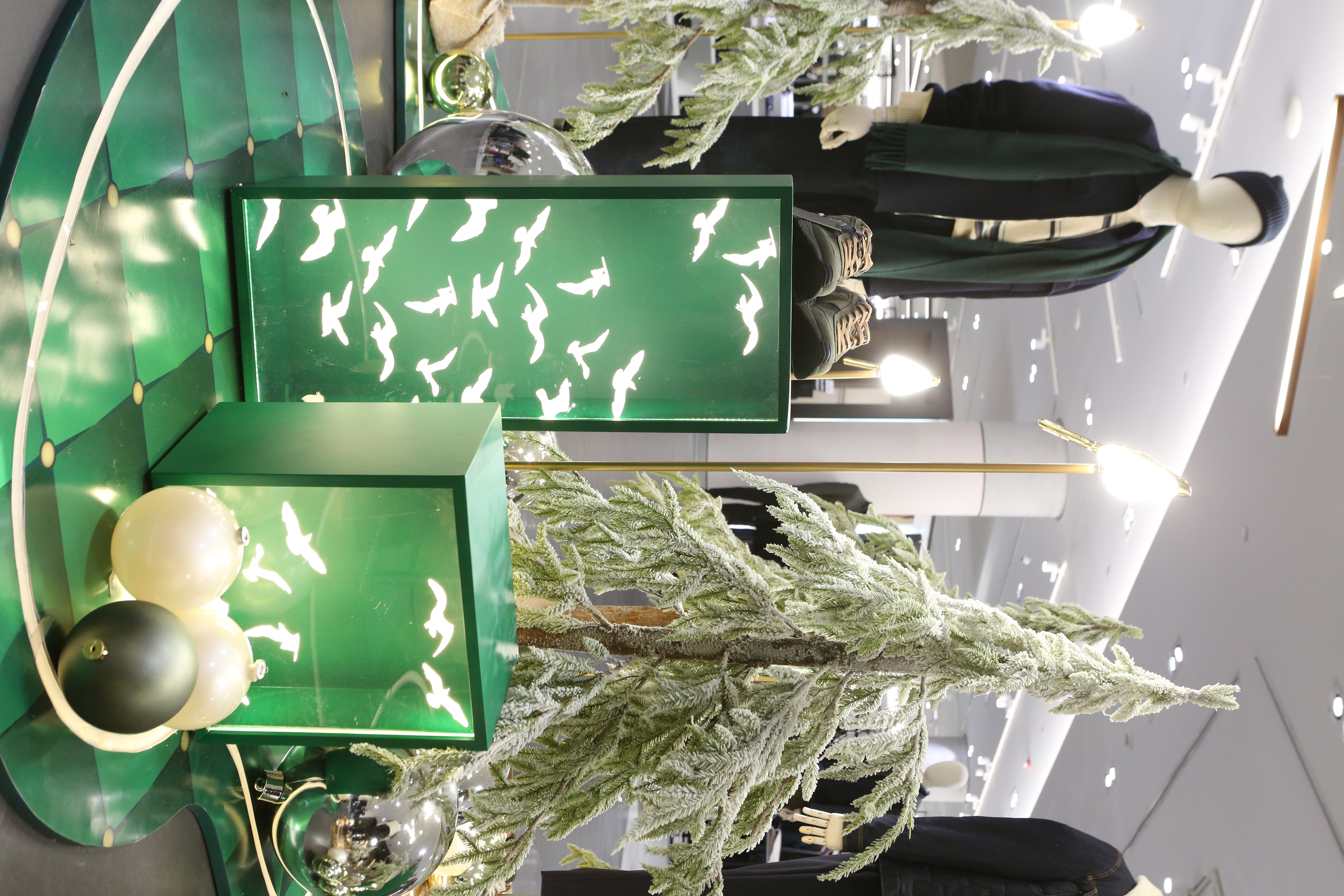 ABC Lebanon Holiday Fashion In-Store. Forest element props to create a fairytale botanical Christmas mood by focusing on the green color and themes of "Enchanted Christmas Forest" and "Rebirth in Nature".
