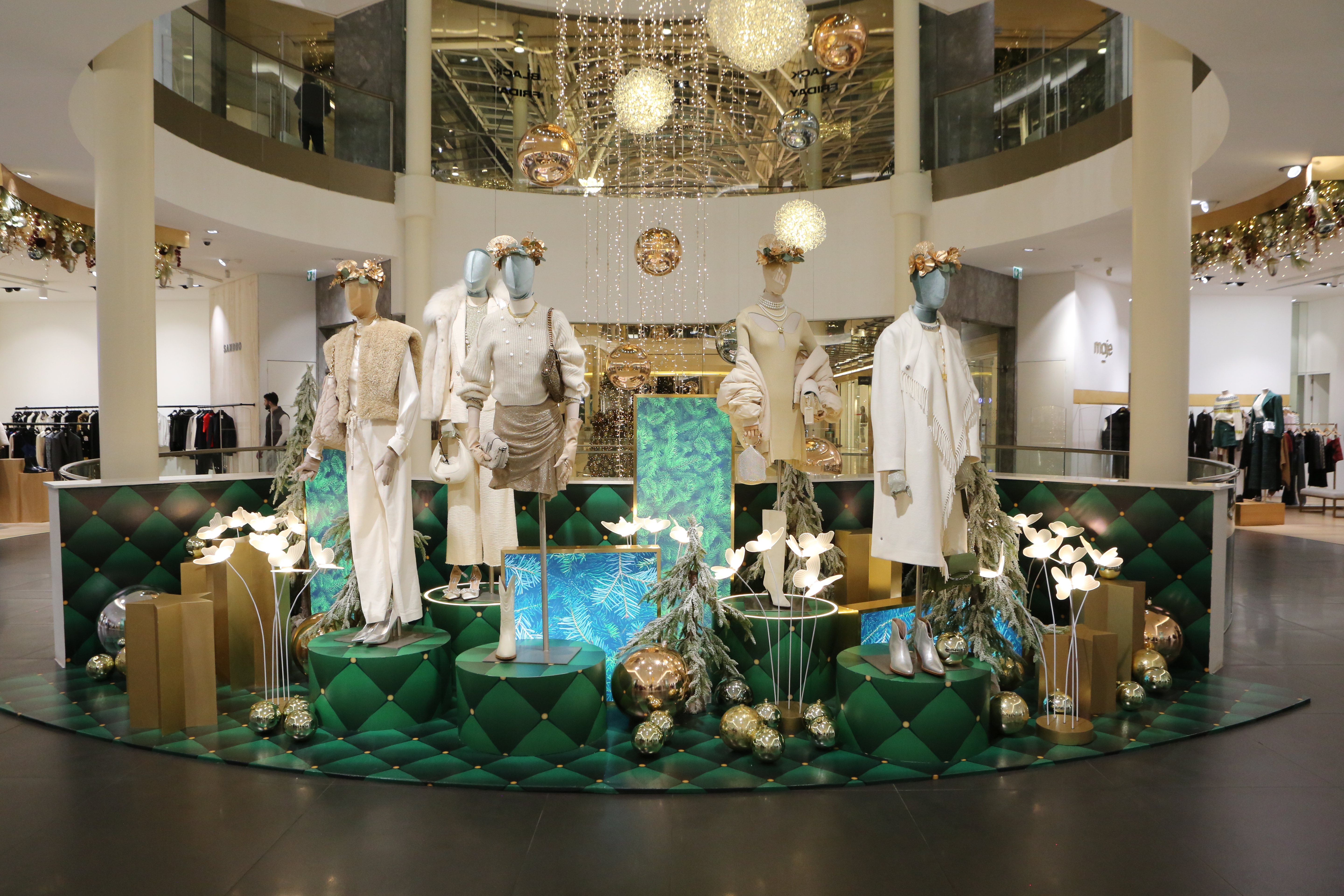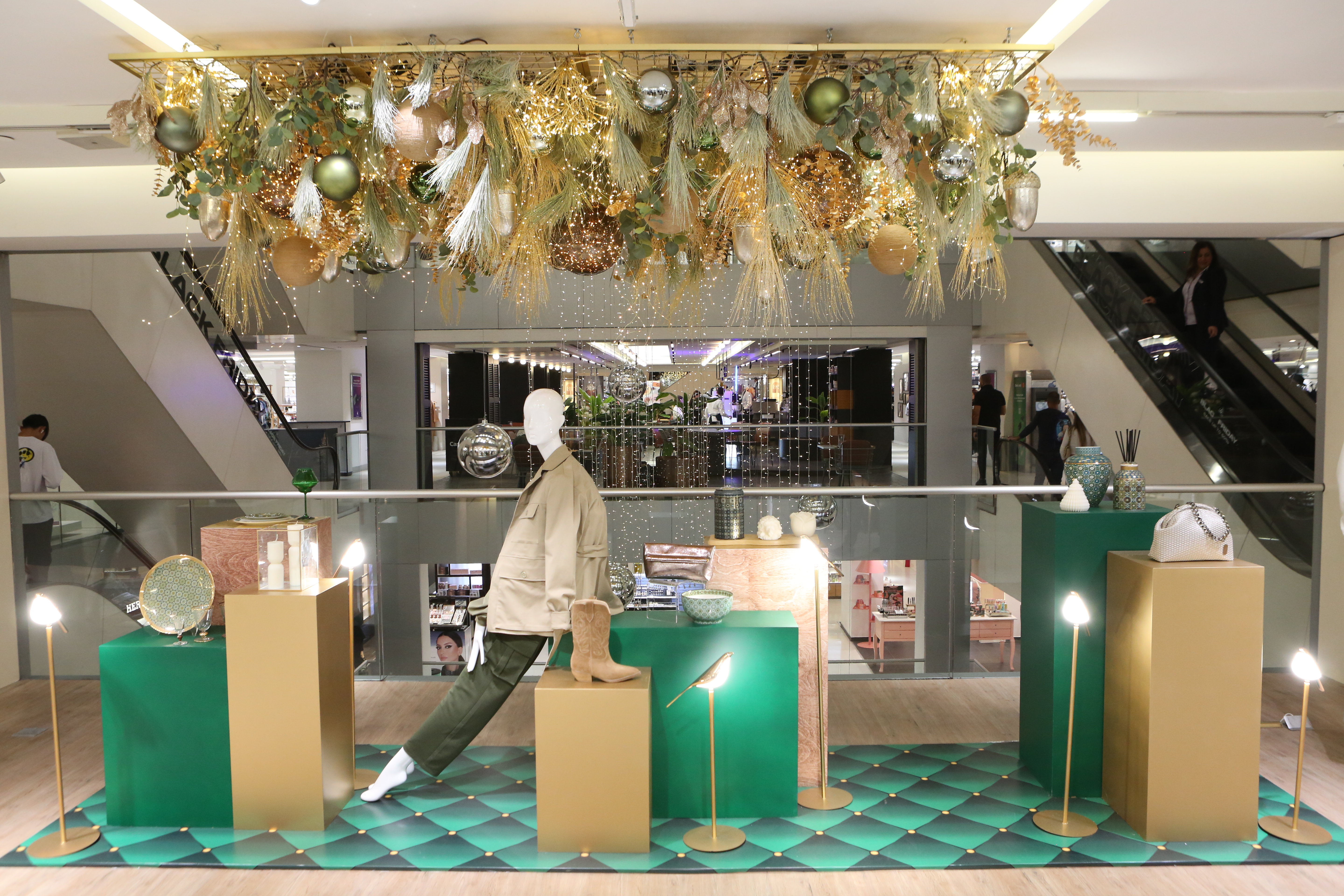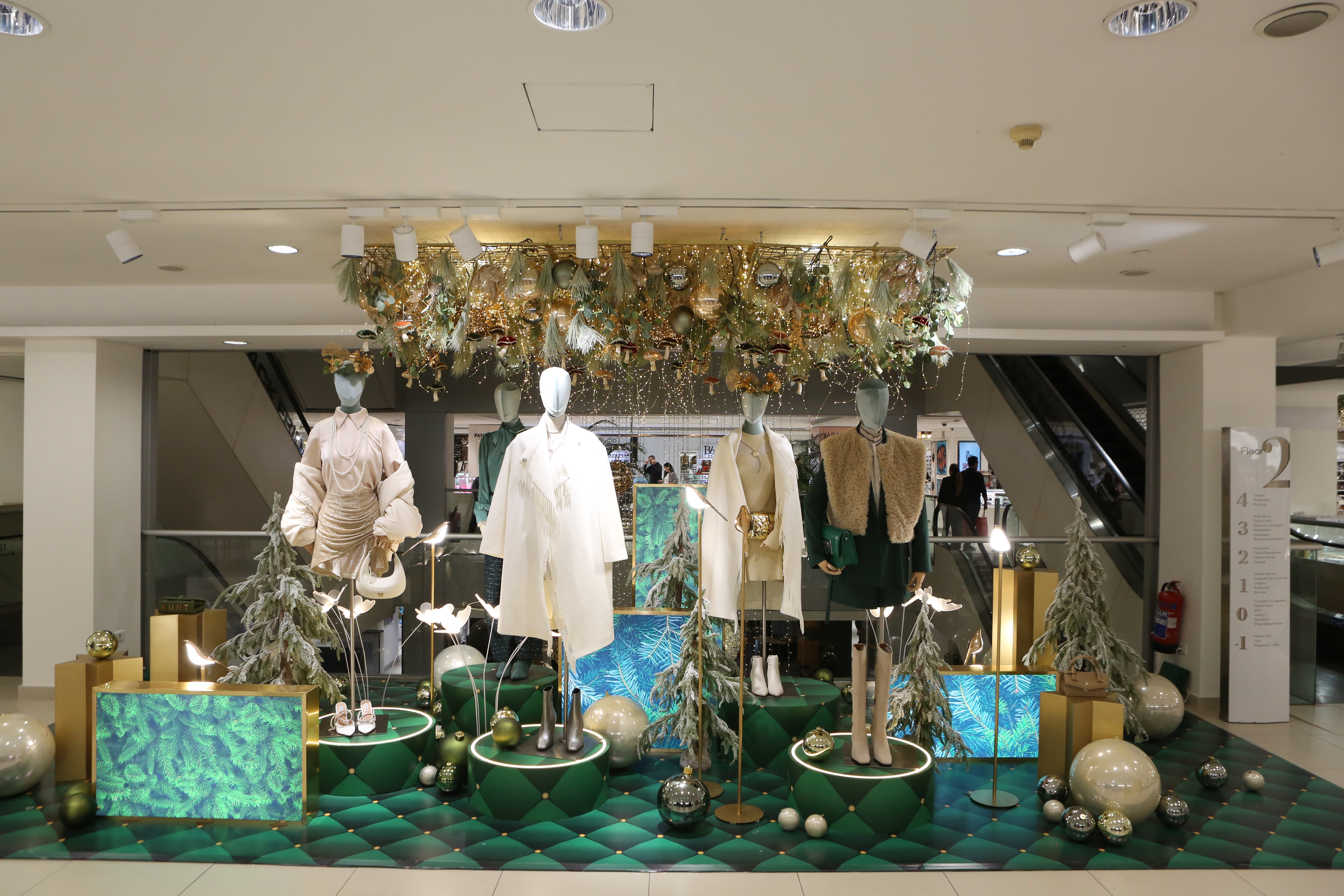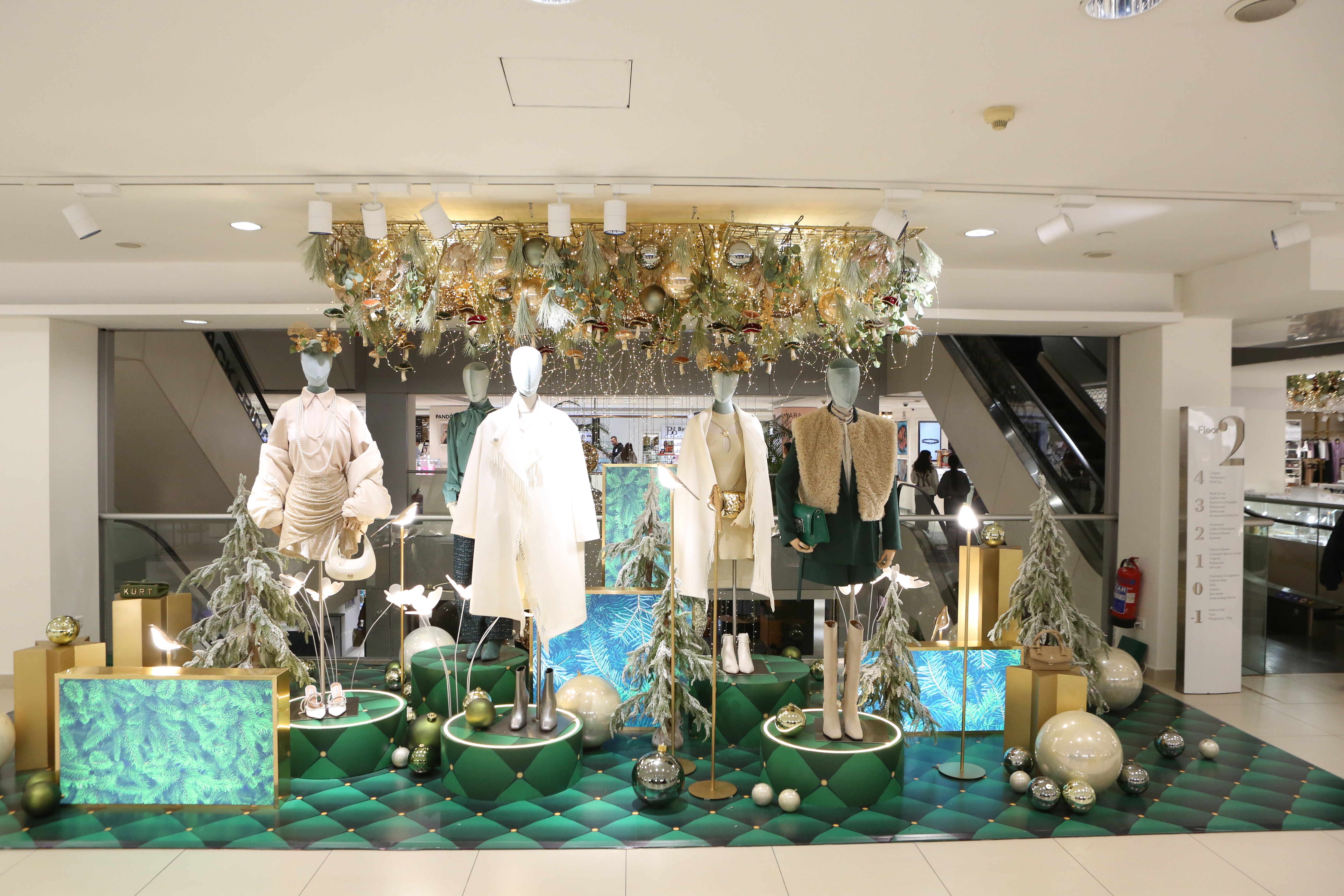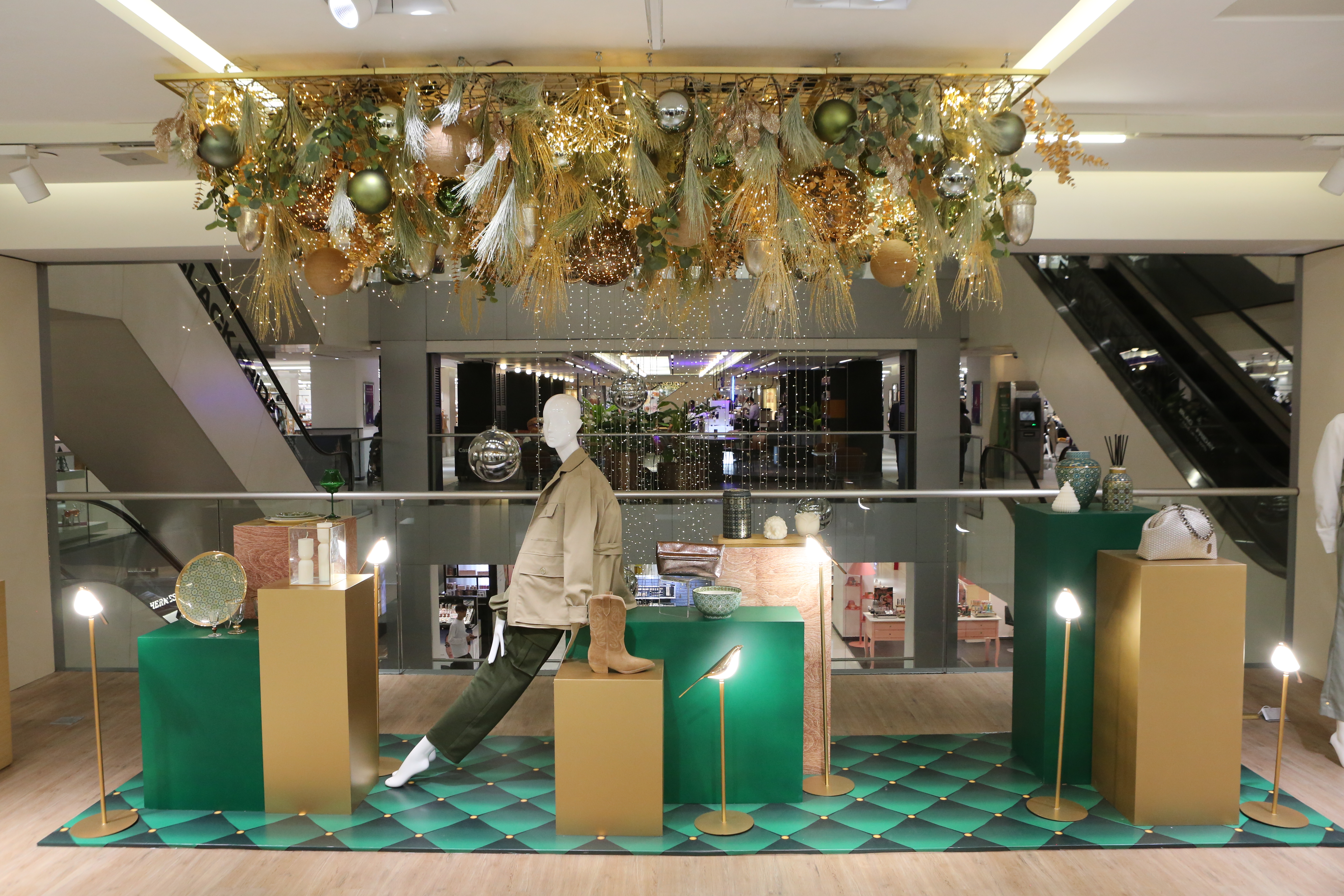 ABC Lebanon Holiday Fashion In-Store. Forest element props to create a fairytale botanical Christmas mood by focusing on the green color and themes of "Enchanted Christmas Forest" and "Rebirth in Nature".