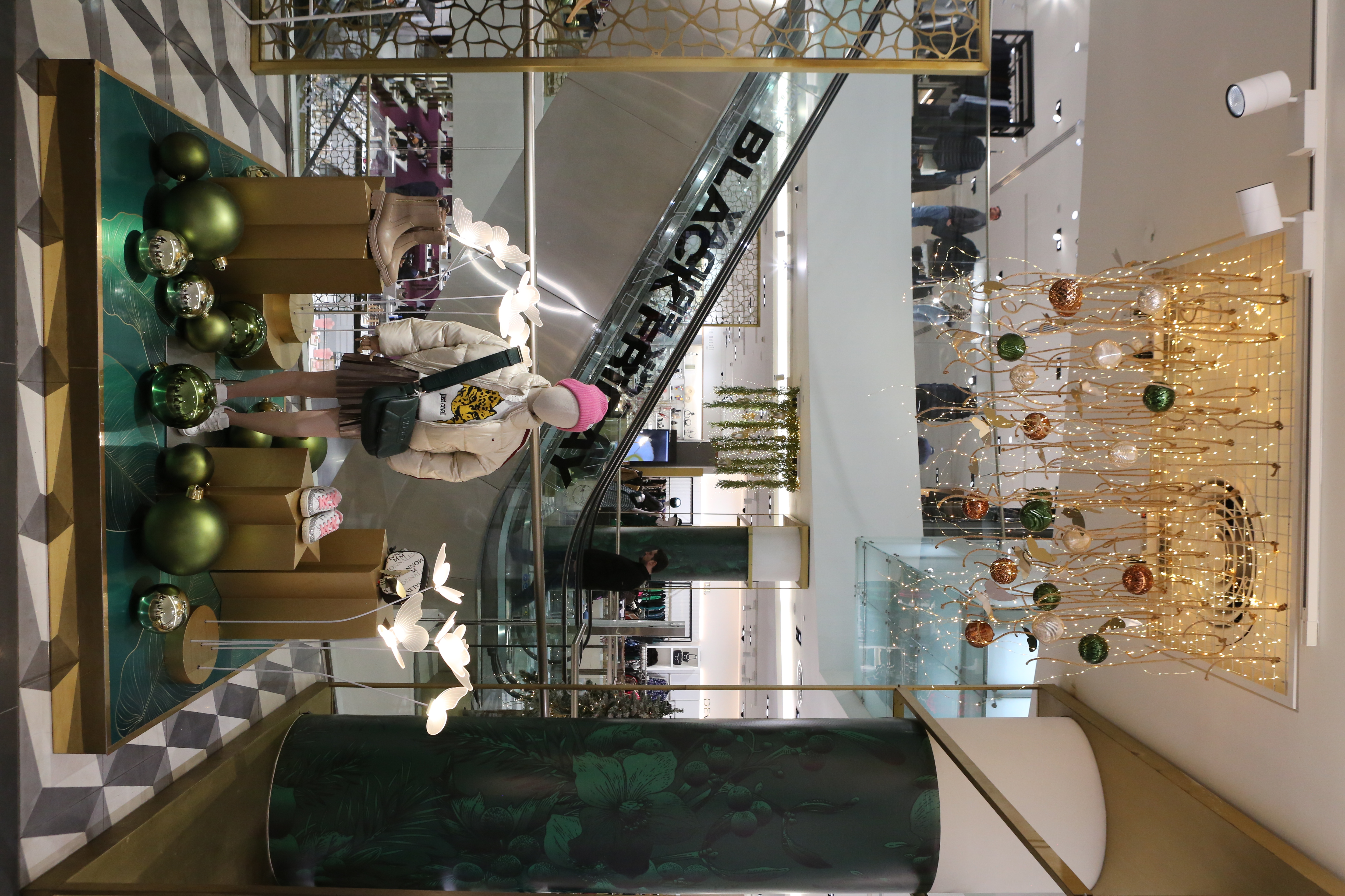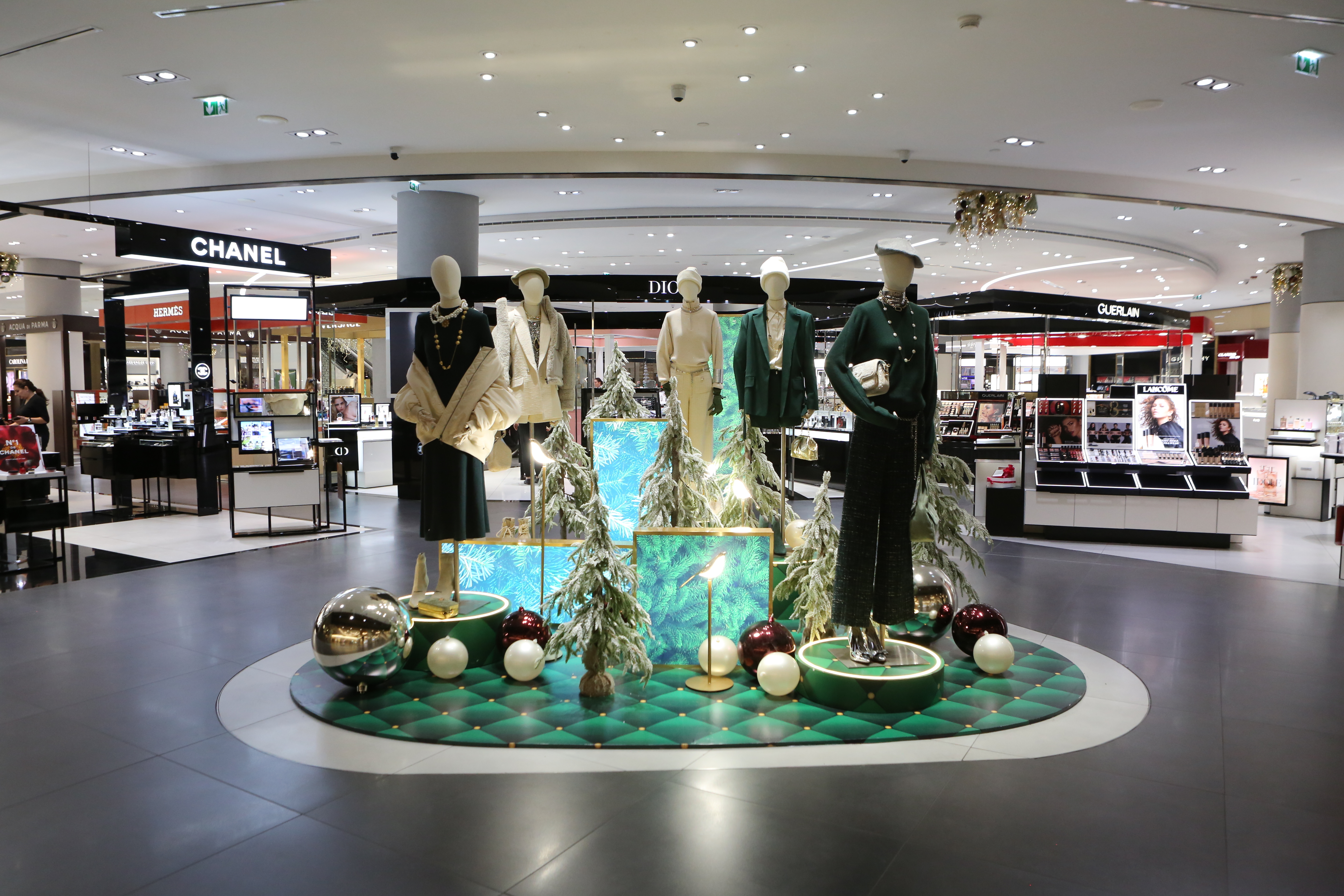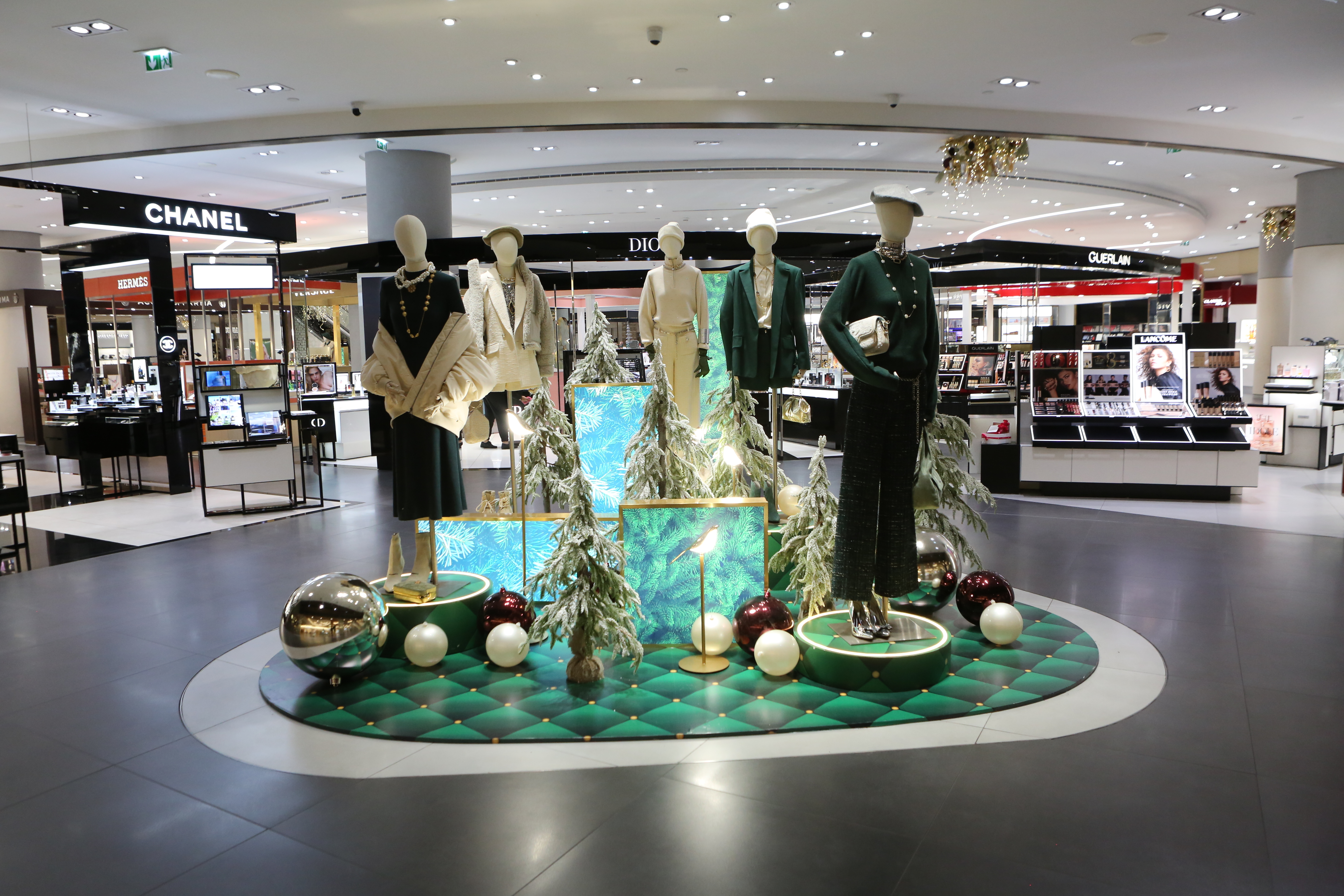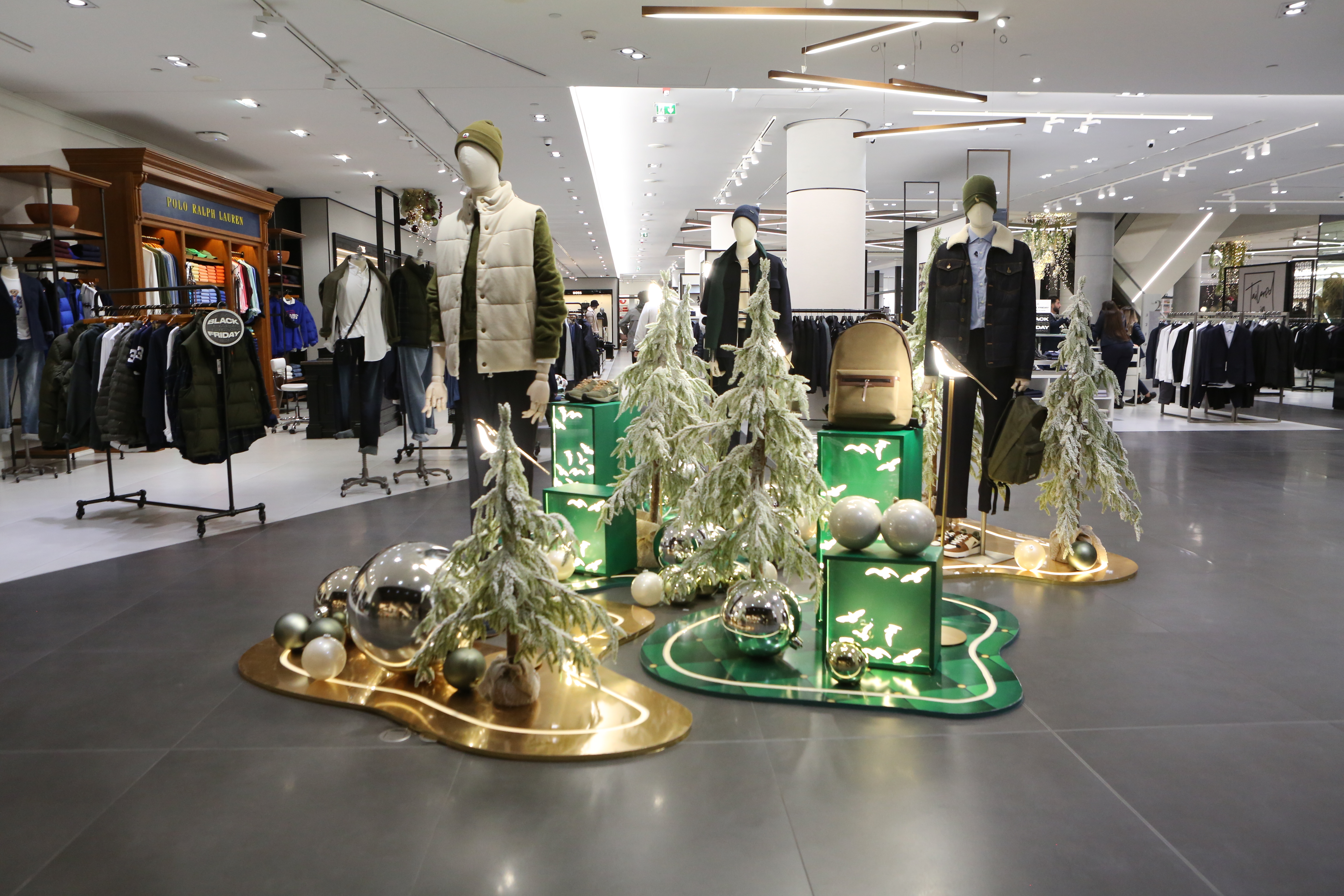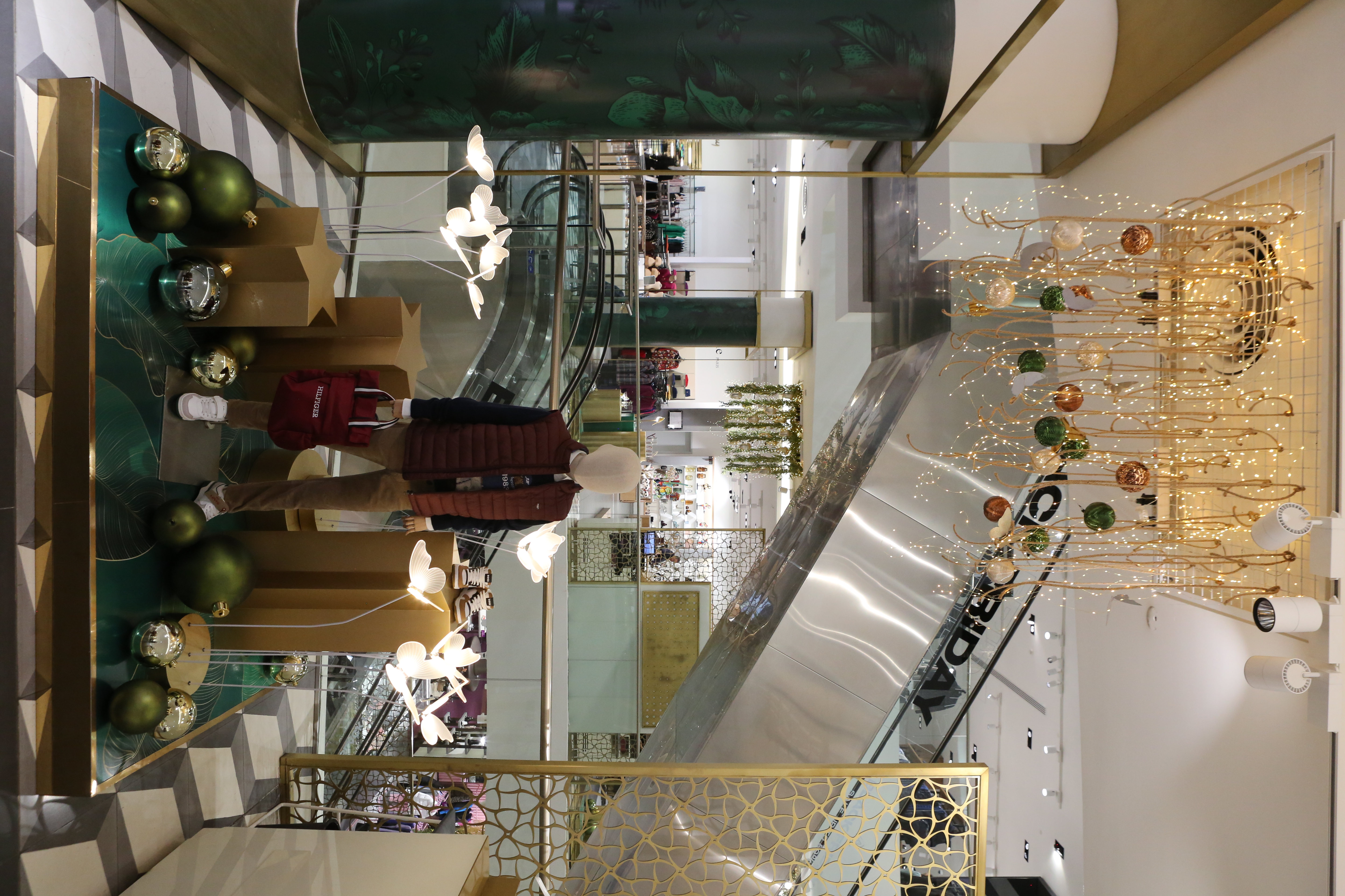 ABC Lebanon Holiday Fashion In-Store. Forest element props to create a fairytale botanical Christmas mood by focusing on the green color and themes of "Enchanted Christmas Forest" and "Rebirth in Nature".