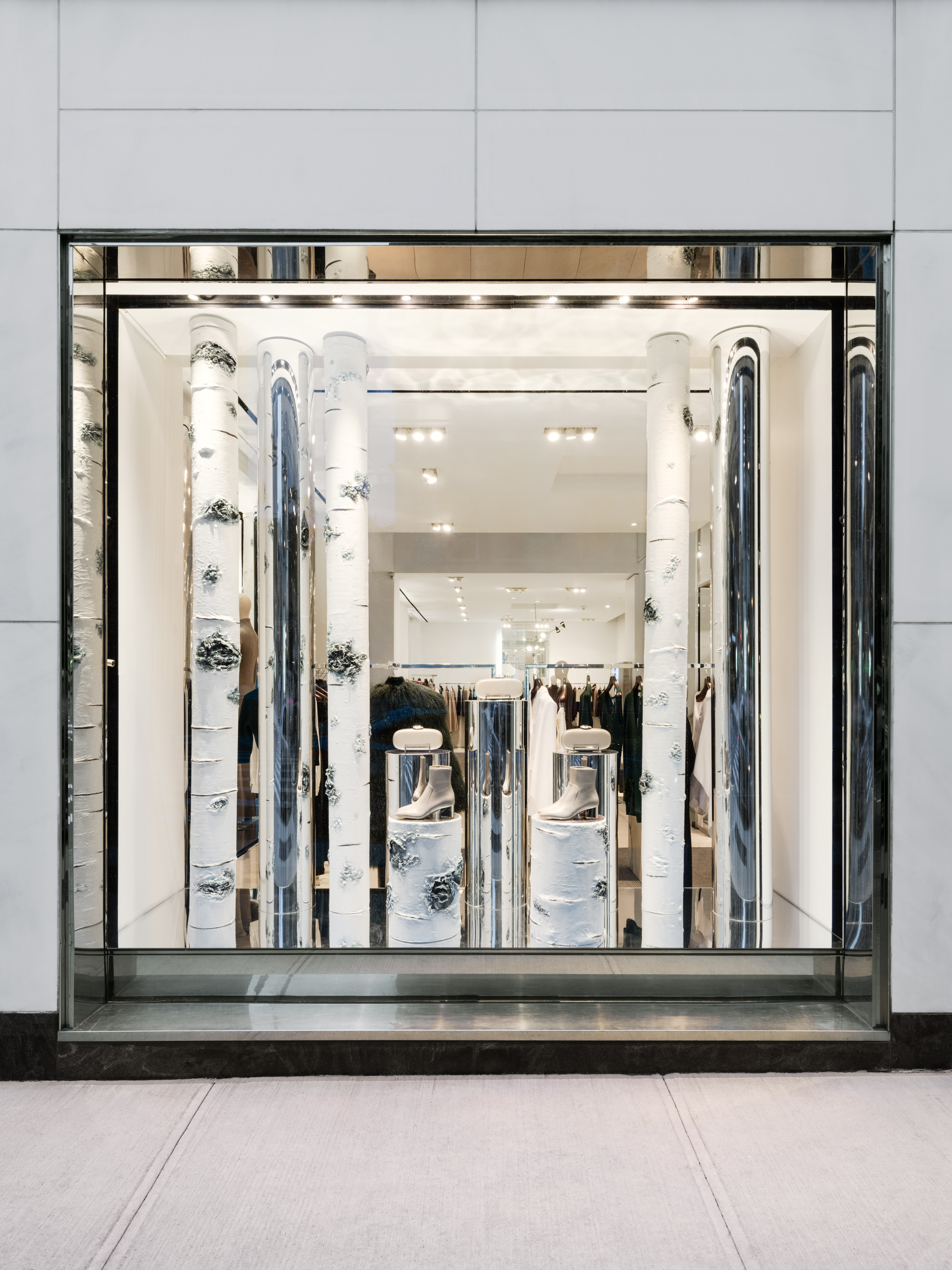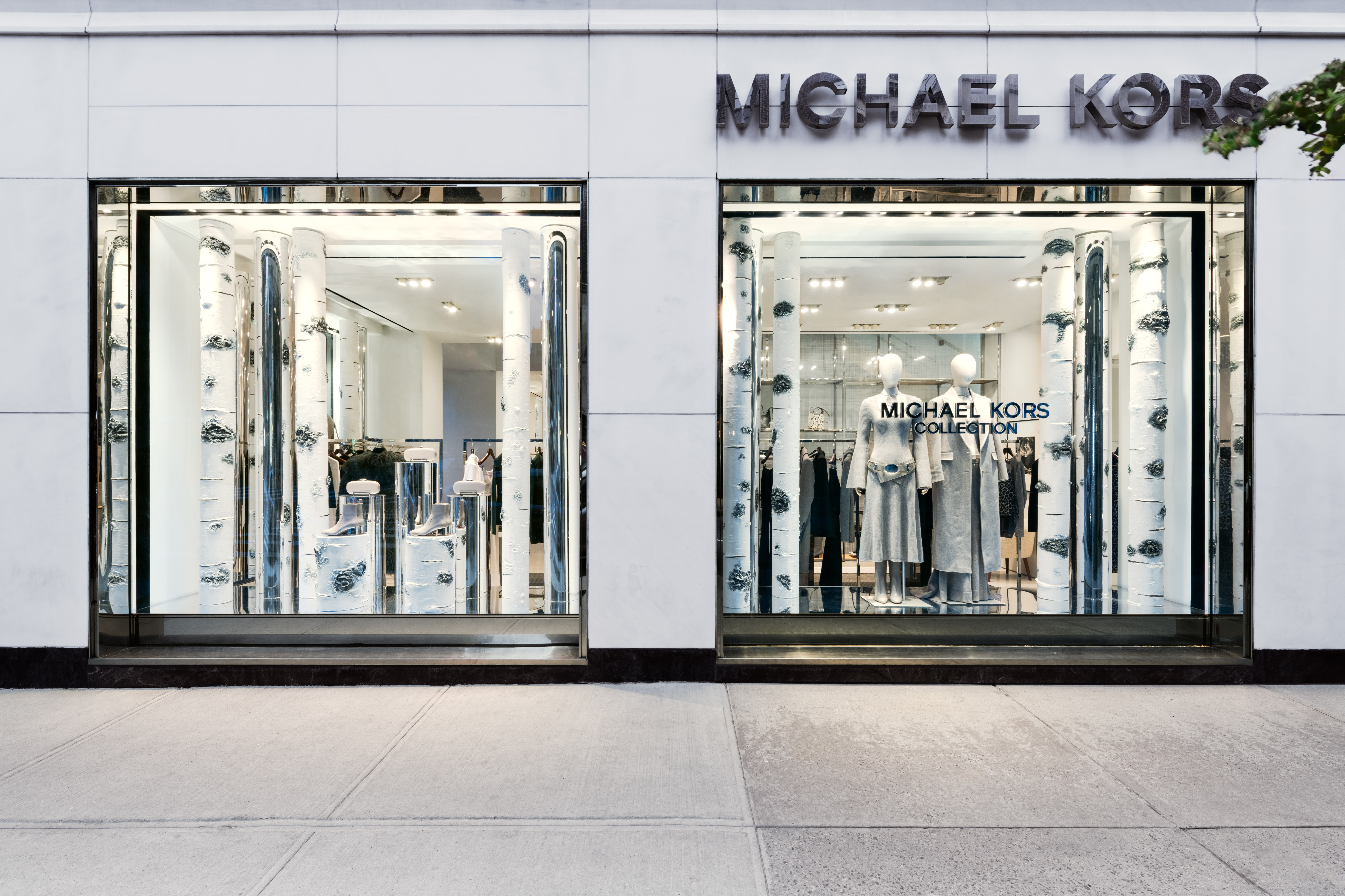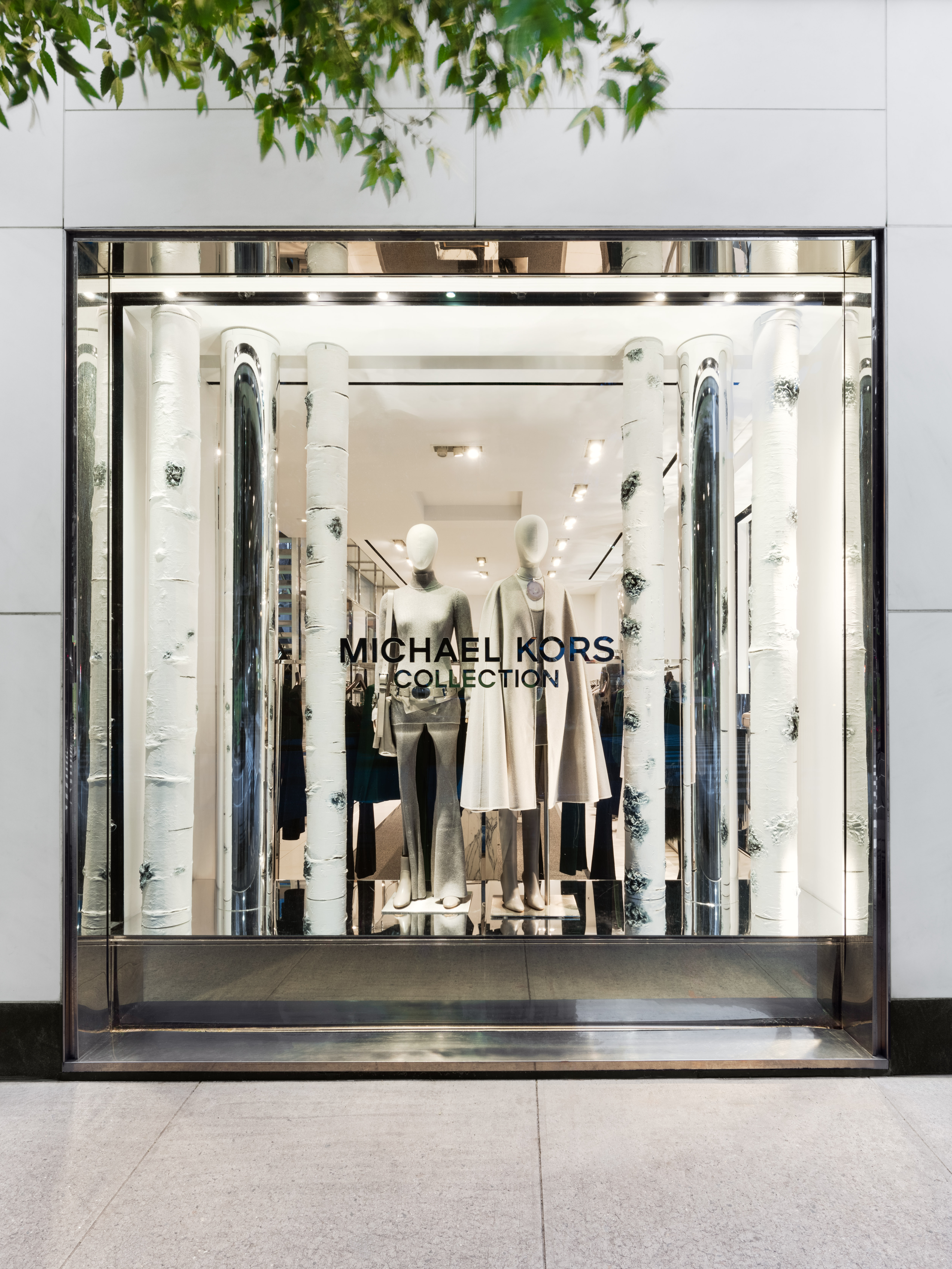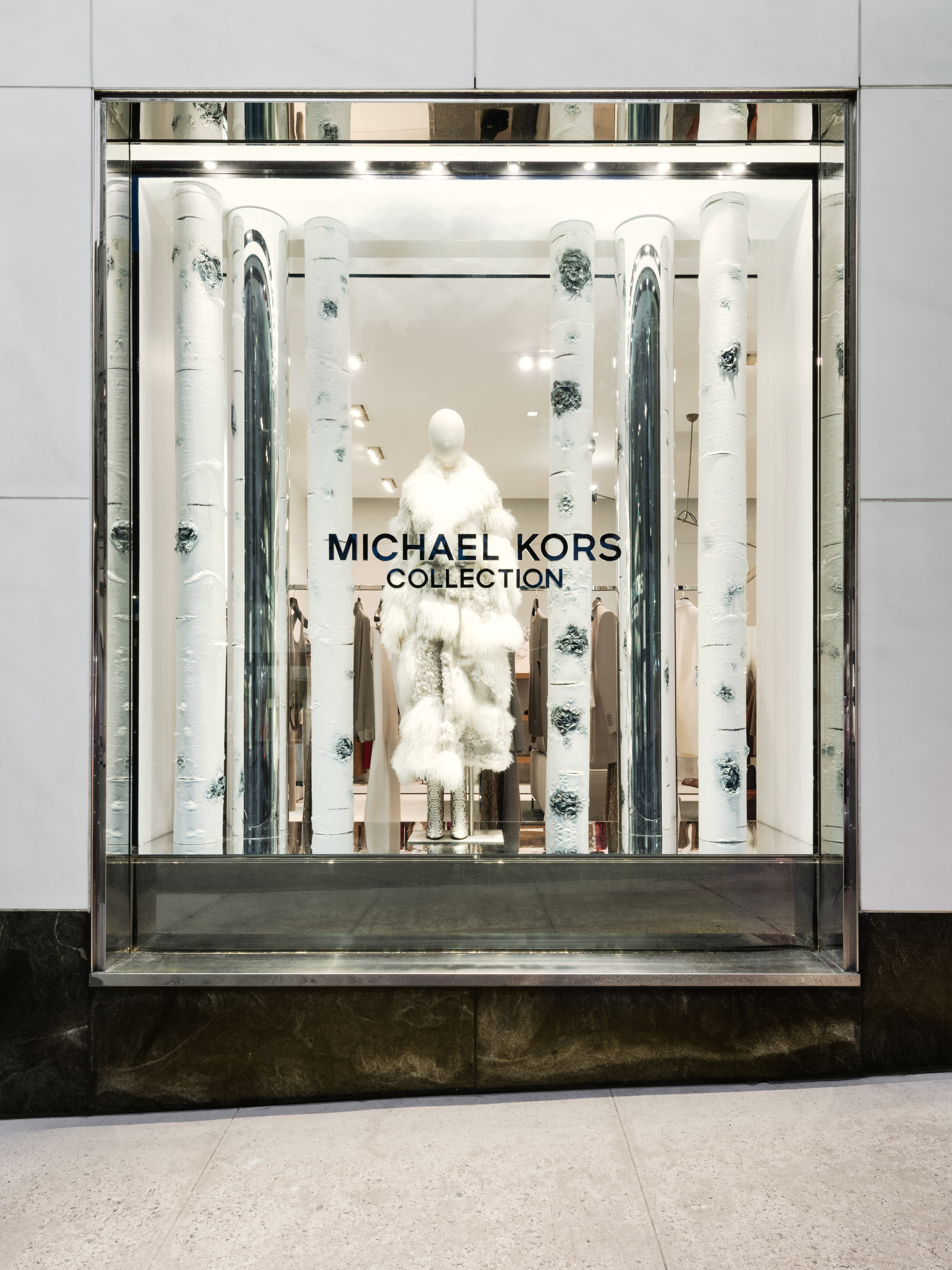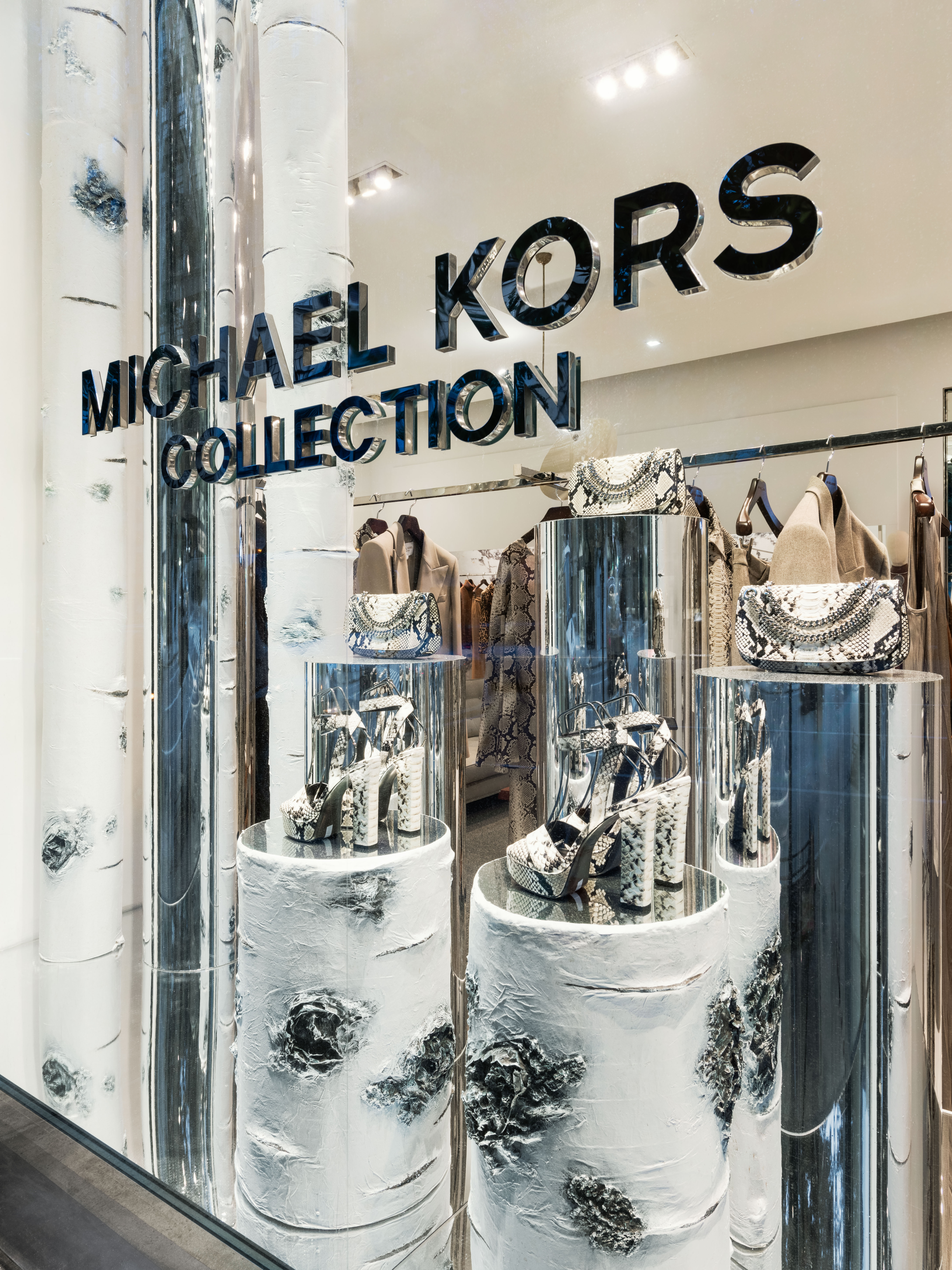 NODDING TO ELEMENTS AND TEXTURES FROM THE MICHAEL KORS COLLECTION FALL 2023 RUNWAY SHOW; BIRTCH, CHOME AND LIGHT TO COMPLIMENT THE SOFTNESS OF THE COLLECTION.