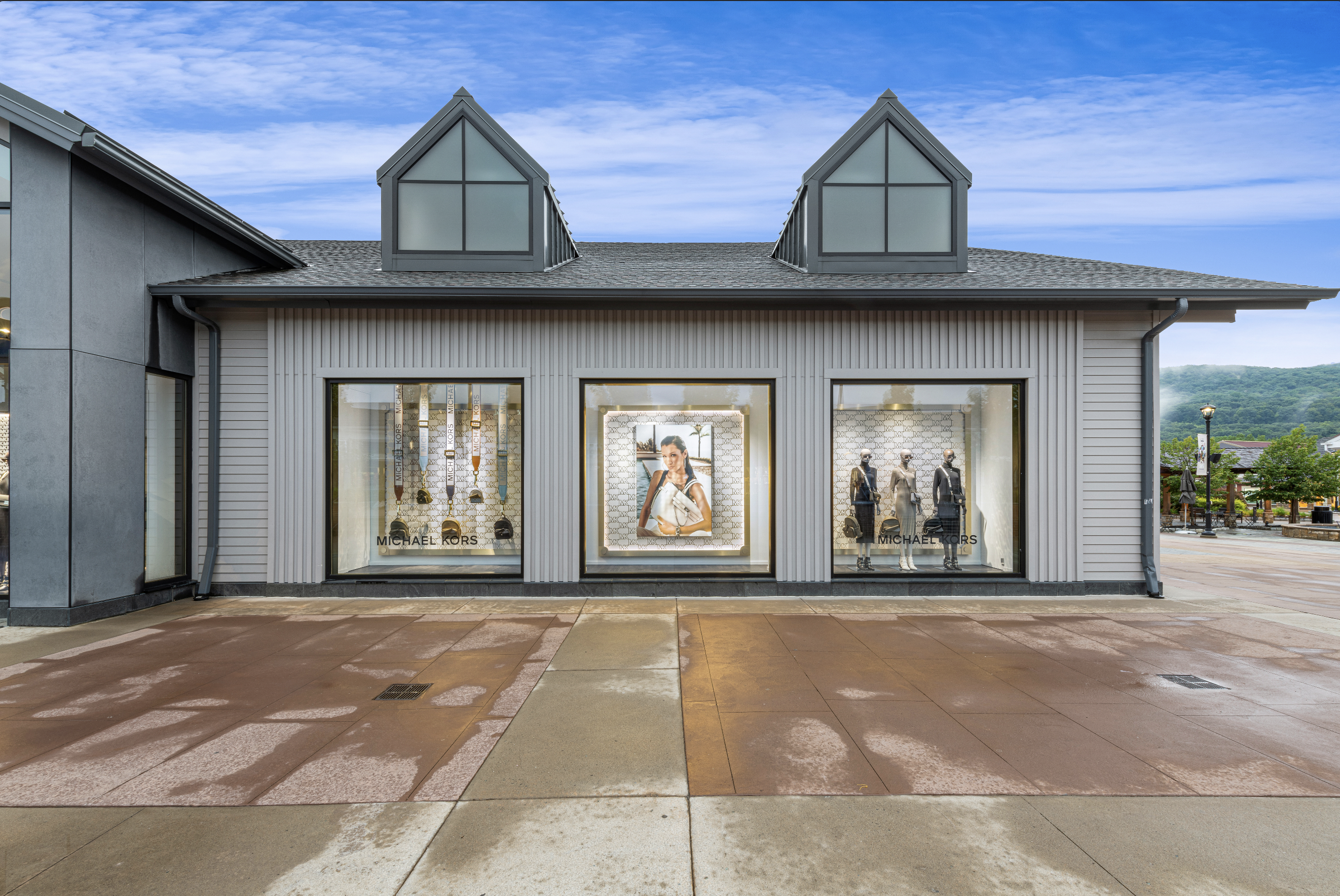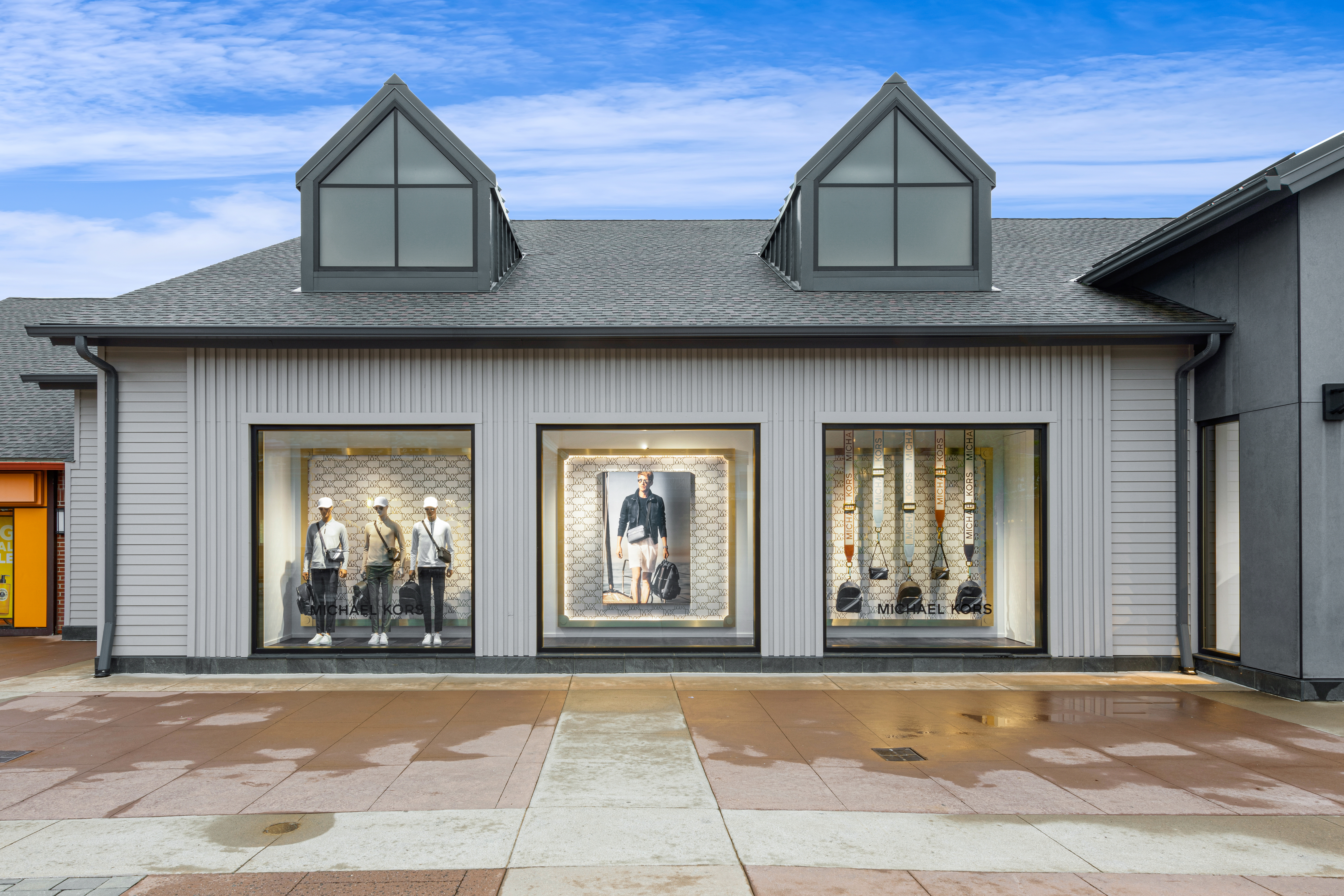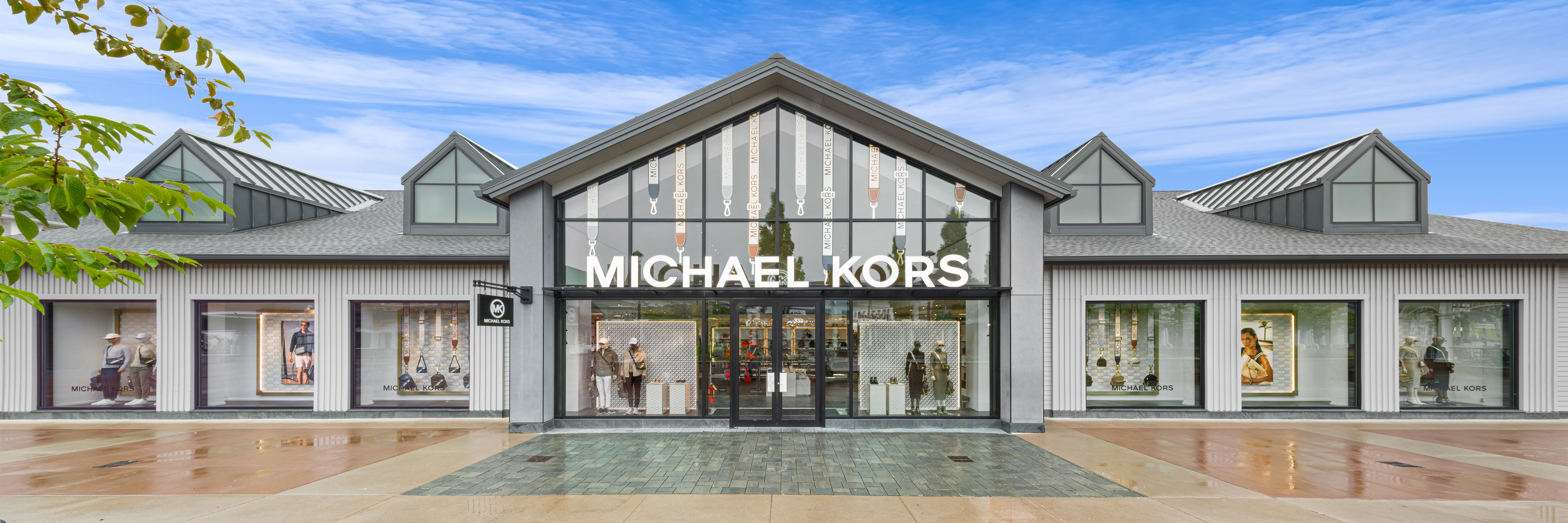 CAPITALIZING ON BRAND HERITAGE, OUTLET FALL 2023 WINDOWS EXPLORED THE EXPANSION OF HARDWARE AND LOGO TO CREATE PLAYFUL MEANS TO DISPLAY PRODUCT. OVERSIZED DIMENSIONAL AND VINYL STRAPS SCATTERED THROUGHOUT WINDOWS WERE COMPLIMENTED BY VANILLA AND GOLD DETAILS.