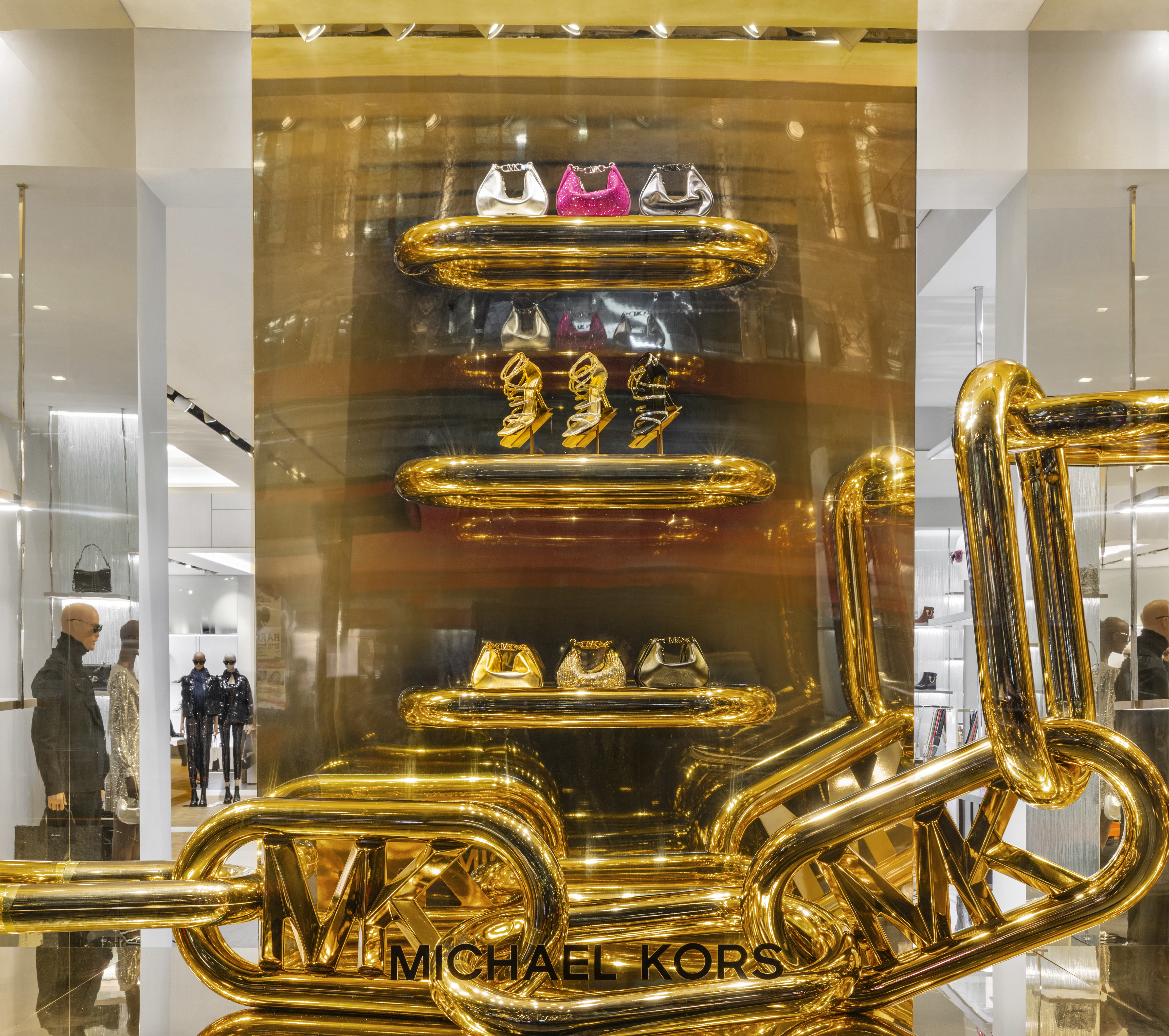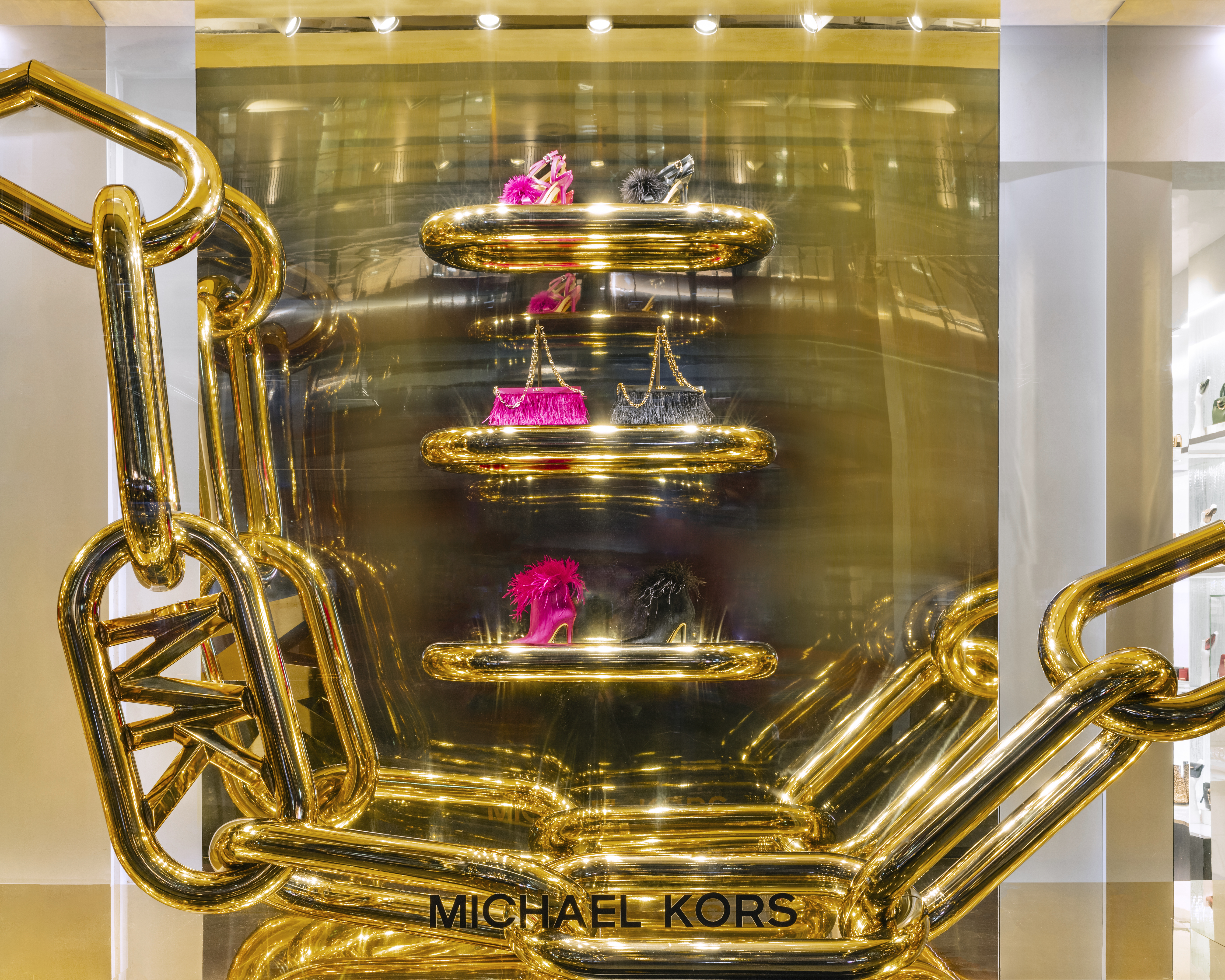 THE WINDOWS FEATURED LINKED CHAINS DRAPED THROUGH THE SPACE CREATING RUNWAY TABLES AND DYNAMIC INTERIORS.