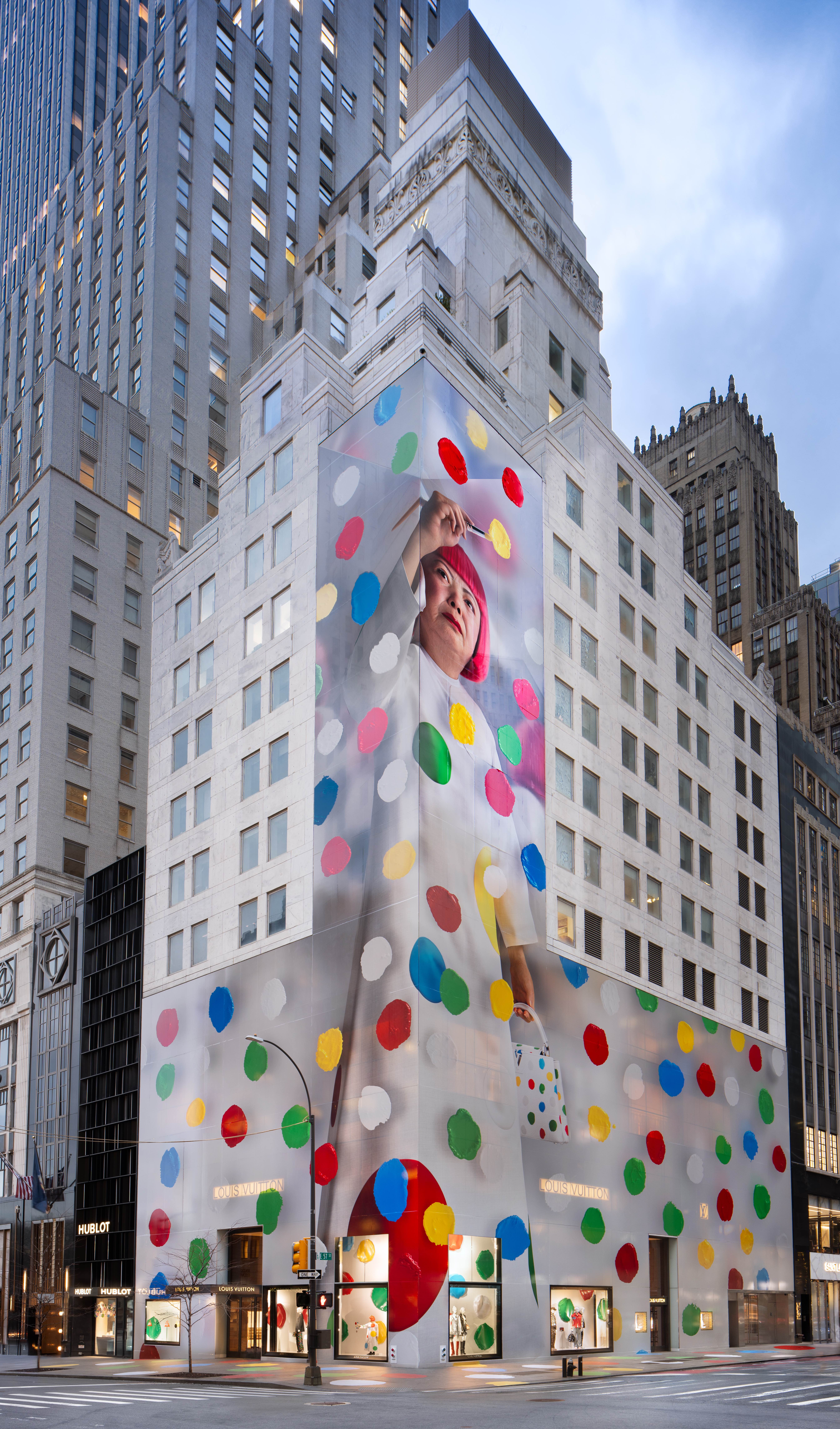 Louis Vuitton collaboration with artist Yayoi Kusama 5th Avenue store facade