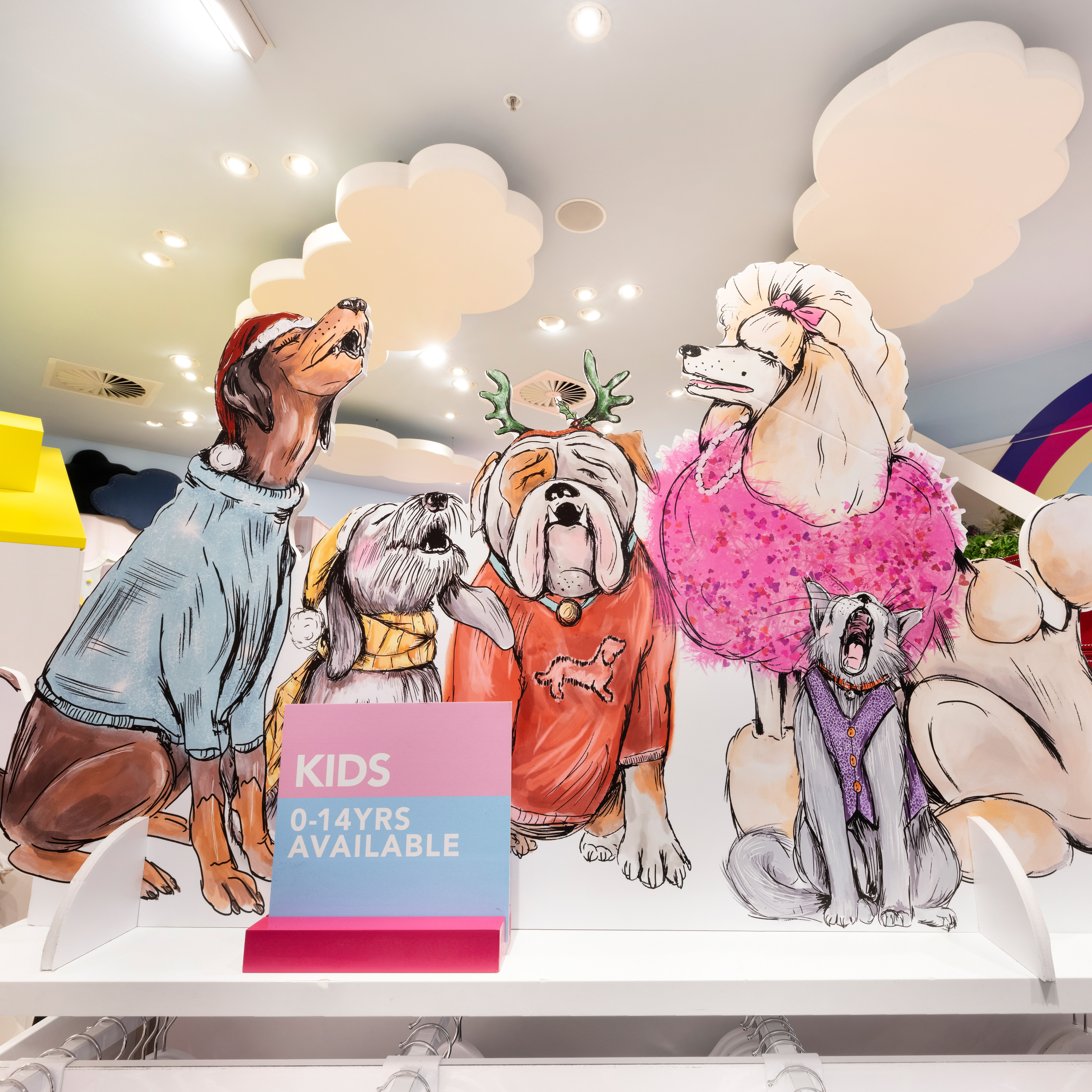 Our talented illustration team designed a whimsical Christmas village filled with storytelling, featuring The Hotel Grand Alexander, a Puppychino Cafe, and carol-singing pets. Hand-drawn magic turned into reality, adorning 150 windows across Australia and New Zealand.