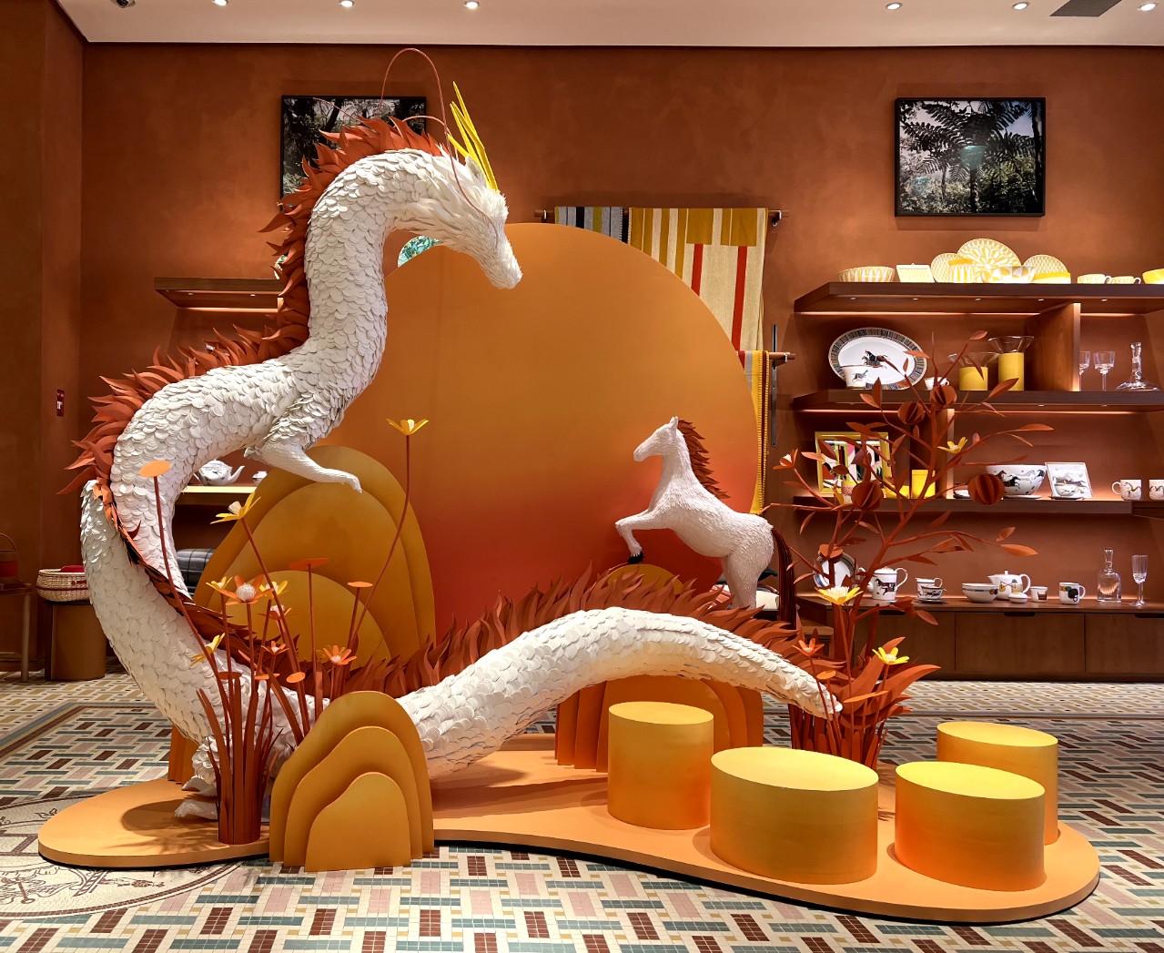 Fly into the new year with warmest wishes. Concept: A Friendly Encounterby AGNES & ANTHONY We produced and installed this pop-up in-store the Hermès in Hochiminh City, Vietnam. Material: Paper, MDF wooden & color spray paint.