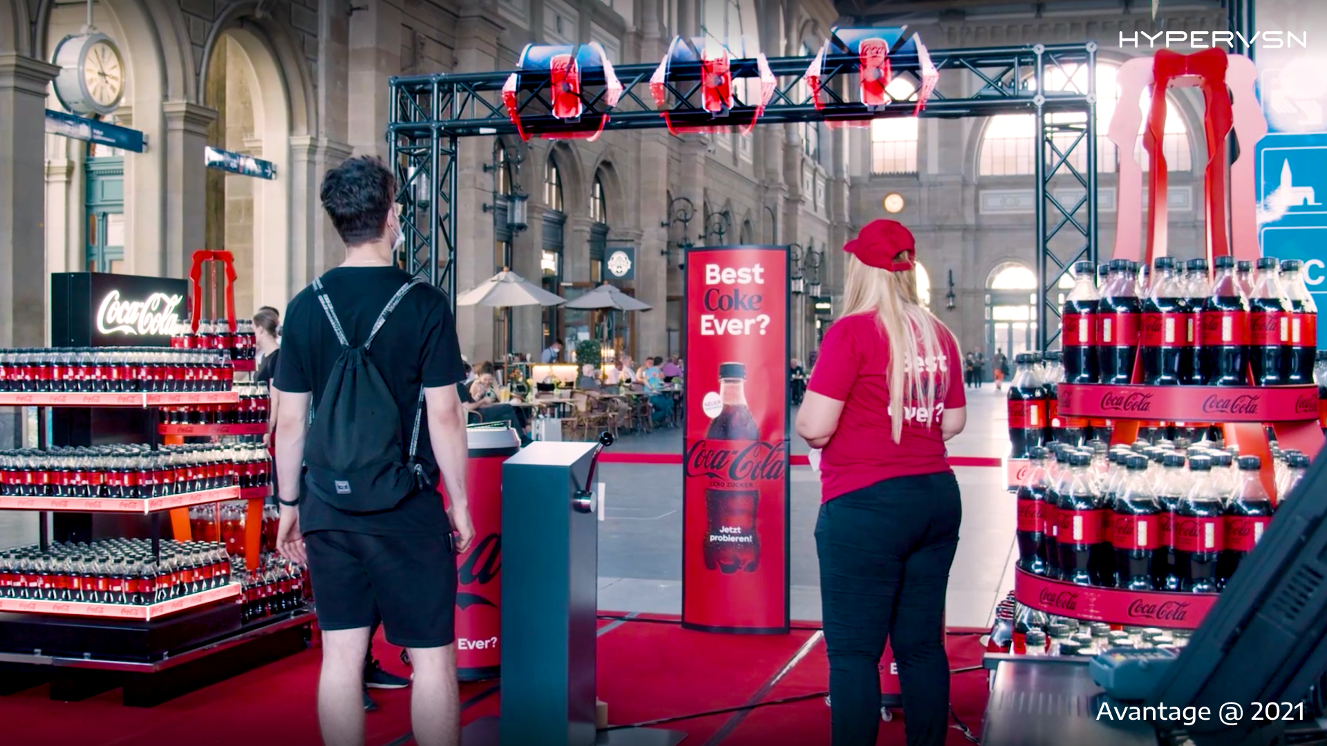Coca Cola took their brand awareness to new and improved heights with the help of HYPERVSN. Installed at several locations around Zürich, HYPERVSN Slots and Solo devices amazed passersby, and engaged them with over 17,500 slot machine plays to win various Coca Cola prizes.