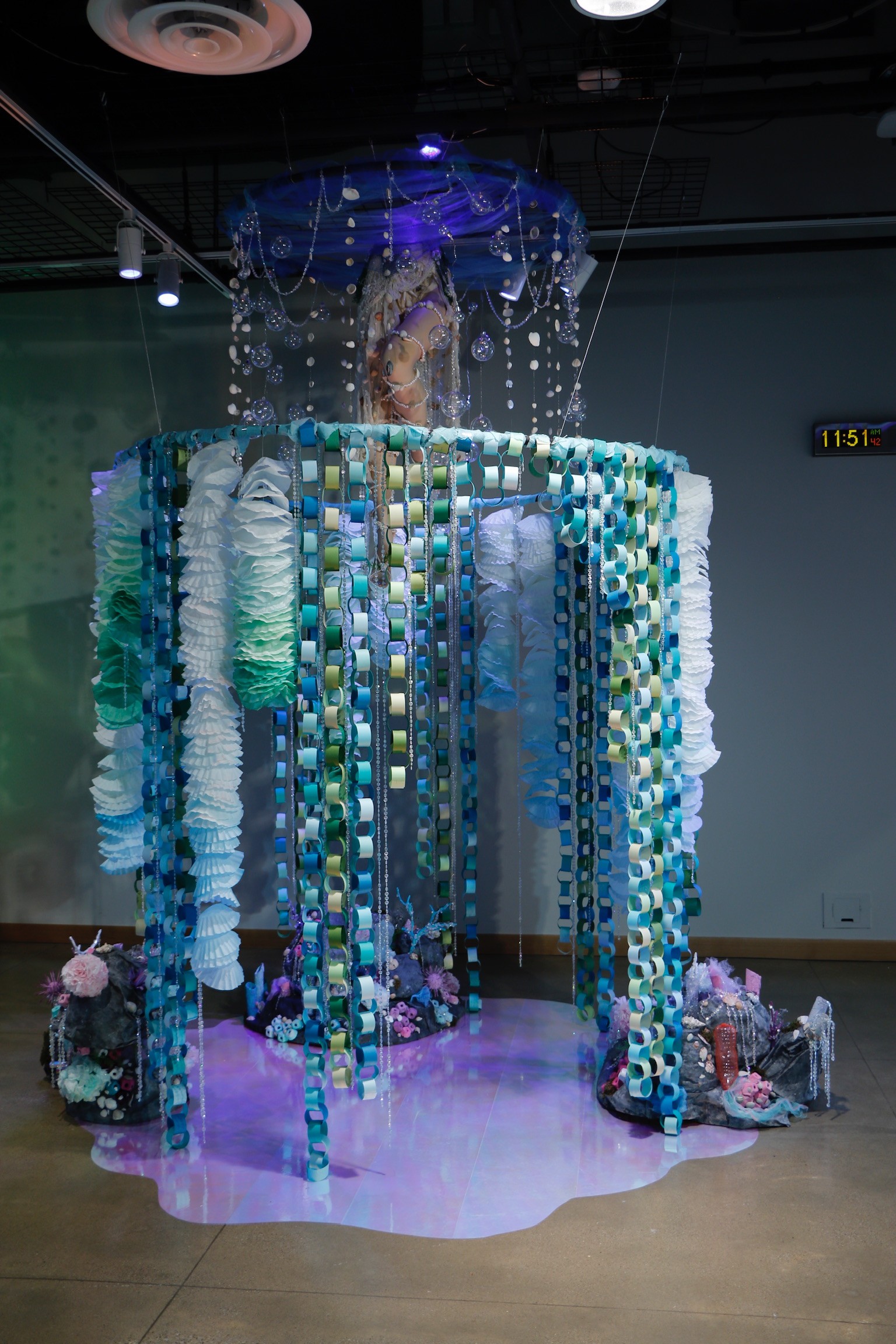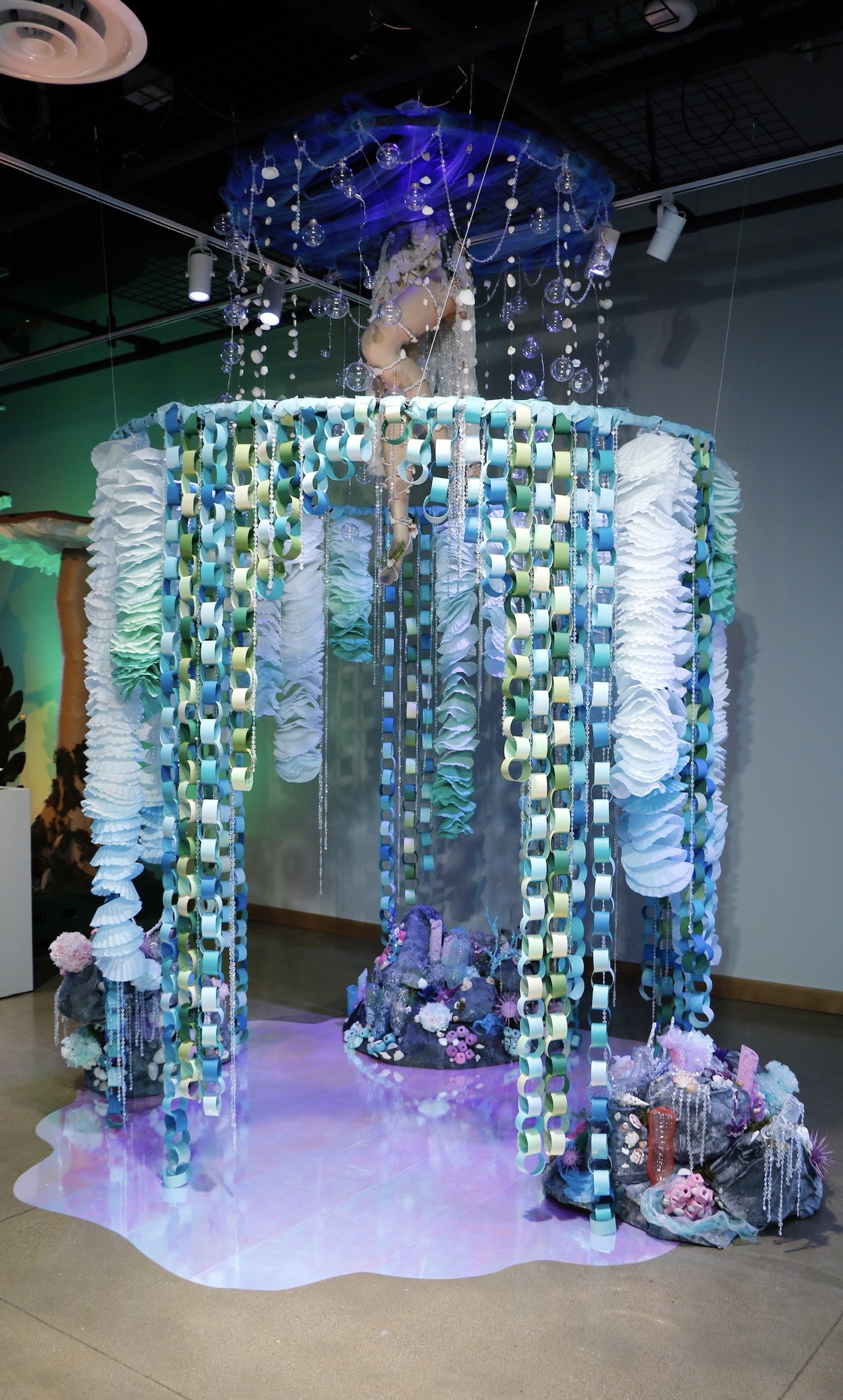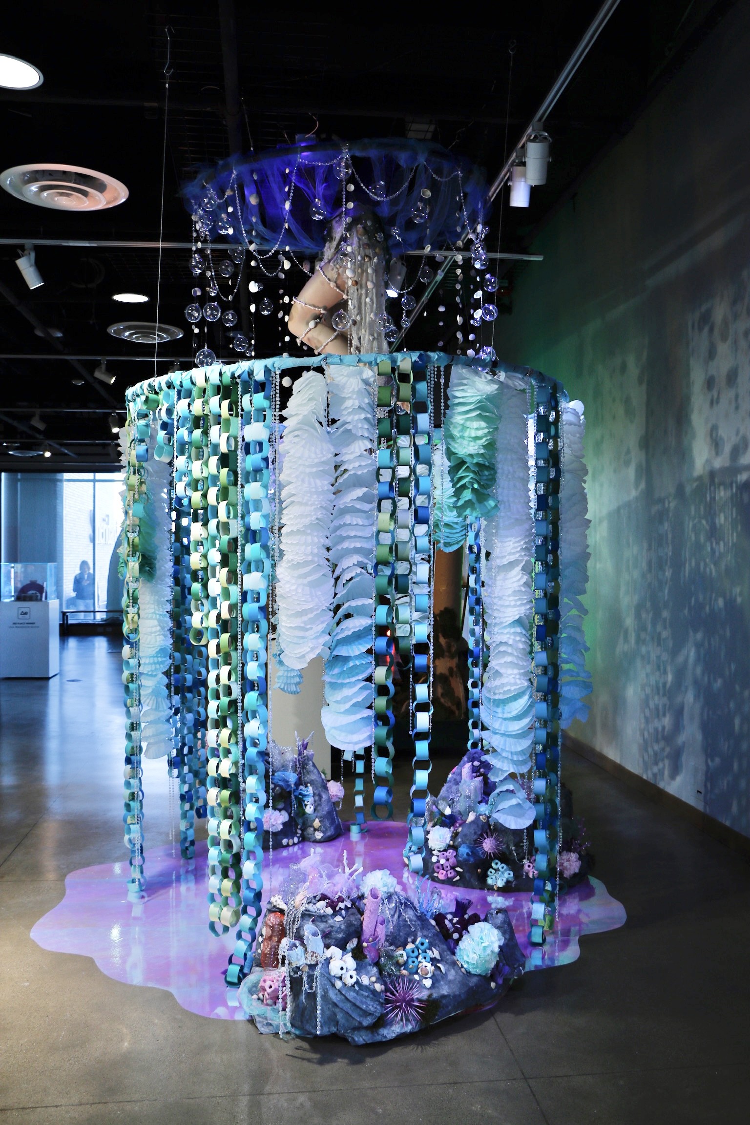 This vignette transports viewers into the mesmerizing depths of an underwater world. Immerse yourself in a sensory journey where the beauty of aquatic life unfolds through a surreal experience. In the midst of this installation, encounter a vision of ethereal beauty.